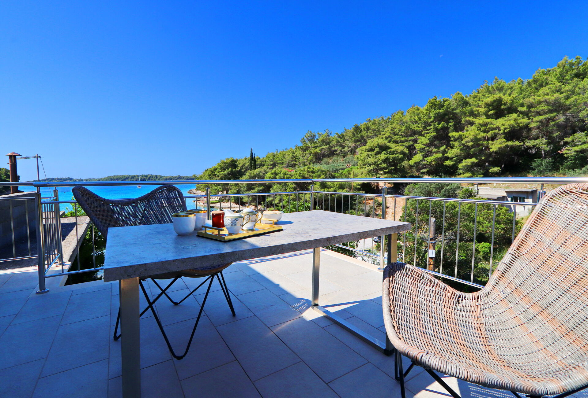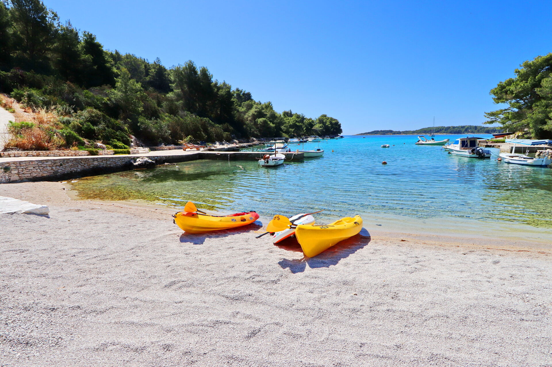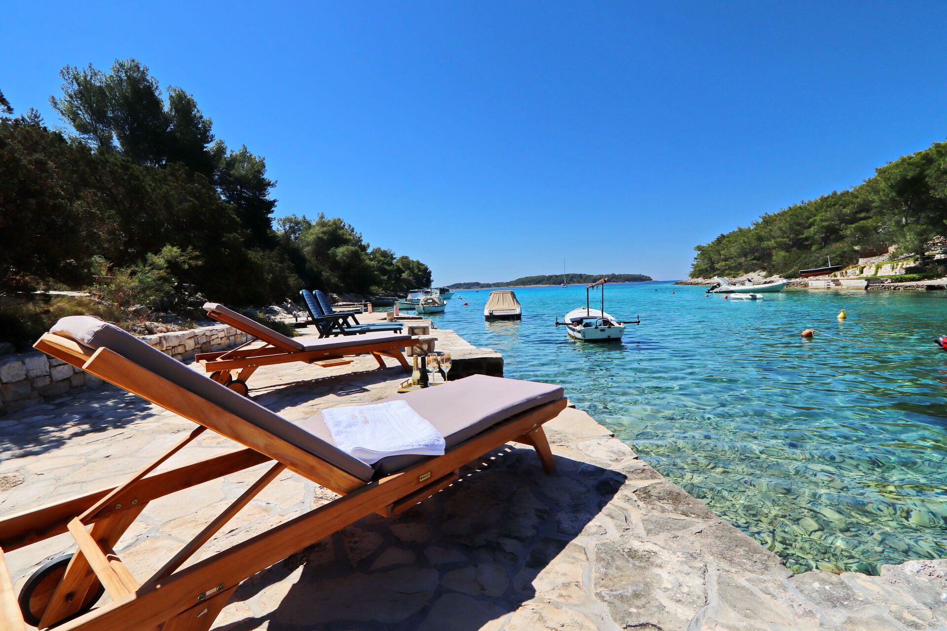 Villa Emerald is perfect for people who love water sports and nature. You can do various activities like kayaking and snorkeling in the enchanting bay, or take long walks in the spacious pine grove by the house.