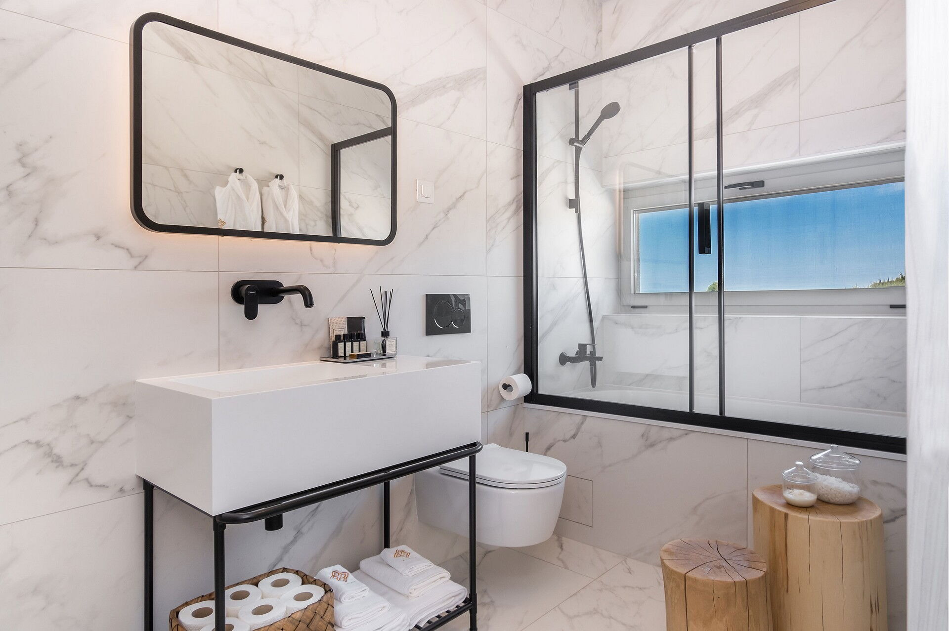 This incredible villa rental is part of a 6-villa complex, divided into 2 groups of 3. The small hamlet has a tennis court, which is available by reservation without an additional fee.