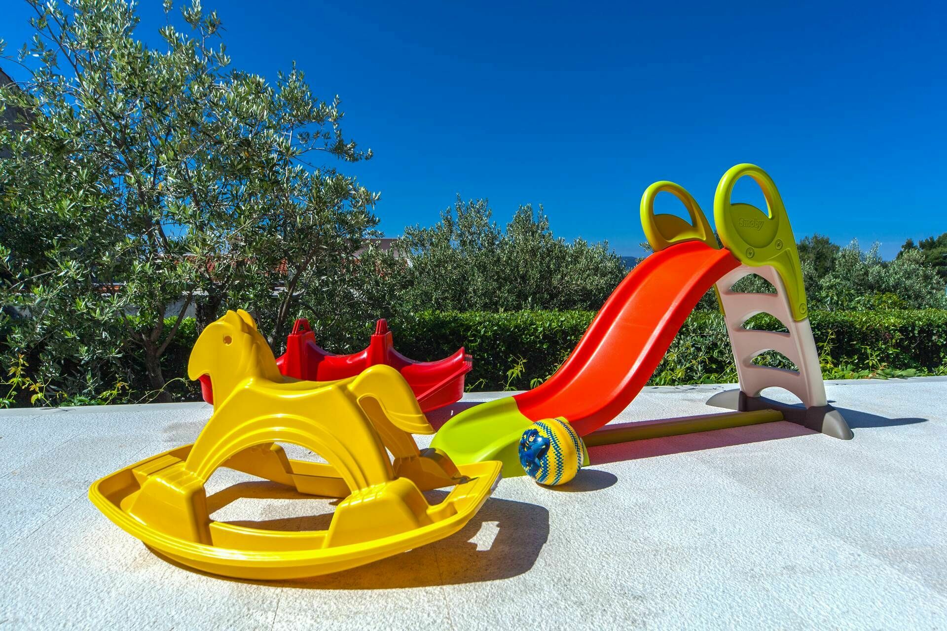 Outside, guests can relax and cool off by the splendid pool, as an alternative to the beach nearby. The villa offers an outdoor dining area for savoring al fresco meals and drinks at sunset with family and friends. Children will delight in the garden toys (slide, rocker, etc.).