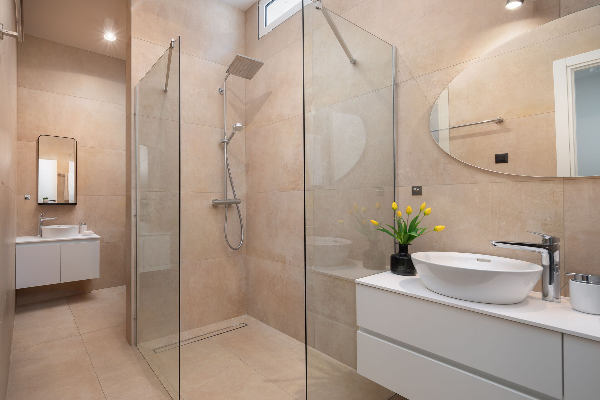 The ground floor gym, the villa’s convenient location and its close proximity to the sea (300 m), add to the villa’s prestige.