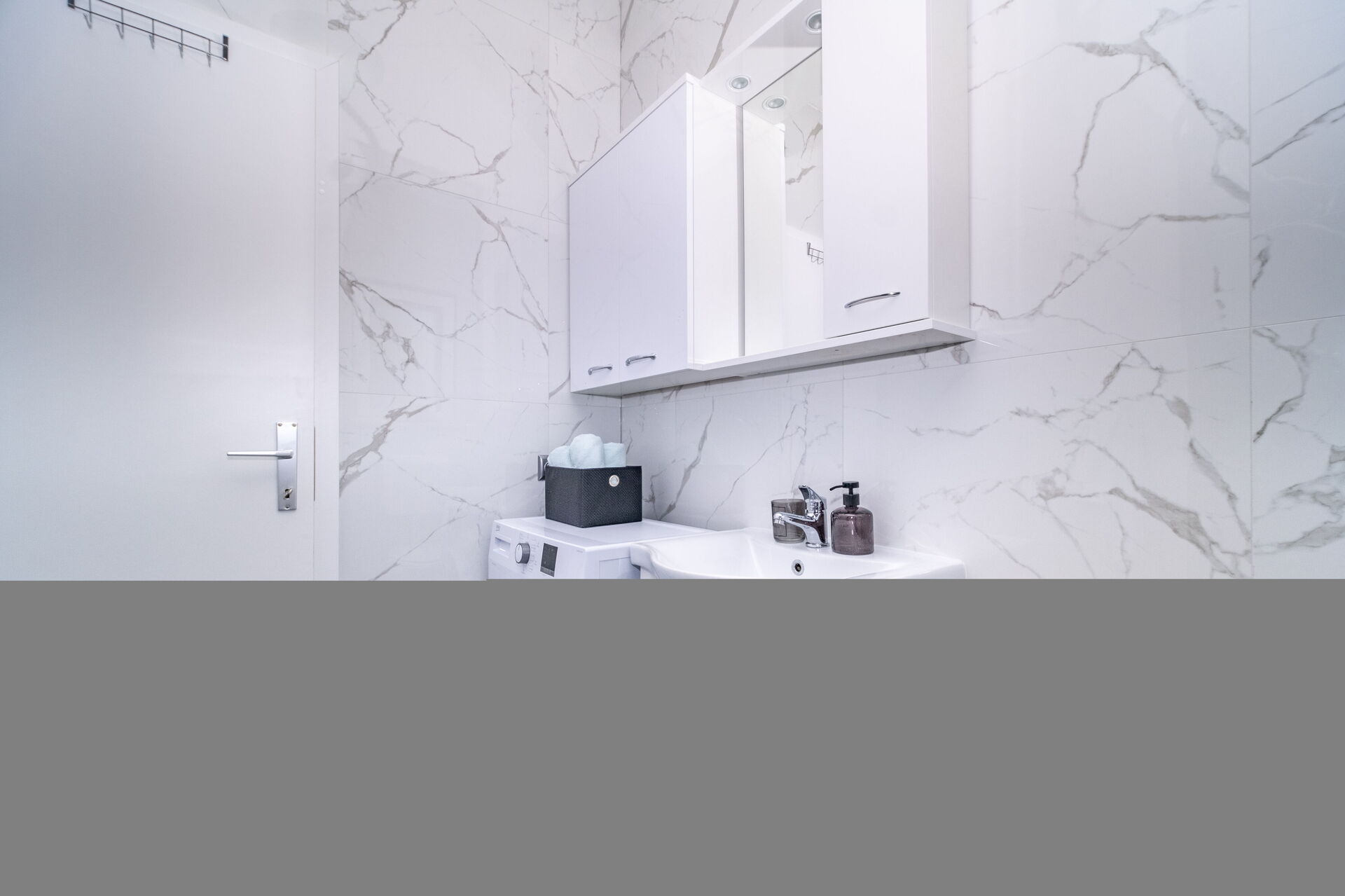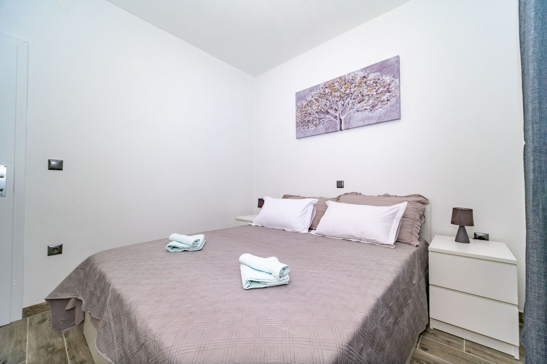 This modern villa rental has 2 double bedrooms and an extra bed in the living room (included in the price), to comfortably accommodate up to 5 people.