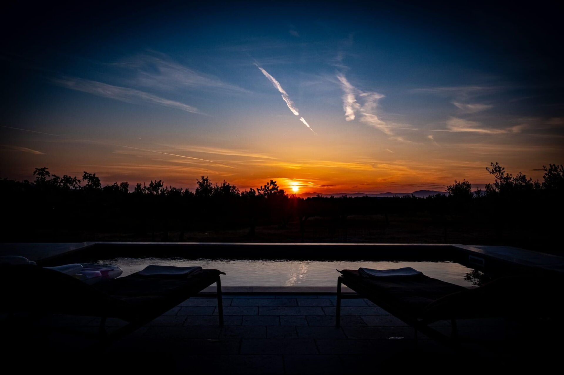 Part of the garden is paved and has a large pergola with a dining area and outdoor kitchen with barbecue. At the end of it there is a beautiful private pool. It’s an enchanting place to watch the sunset with the sea in the distance.