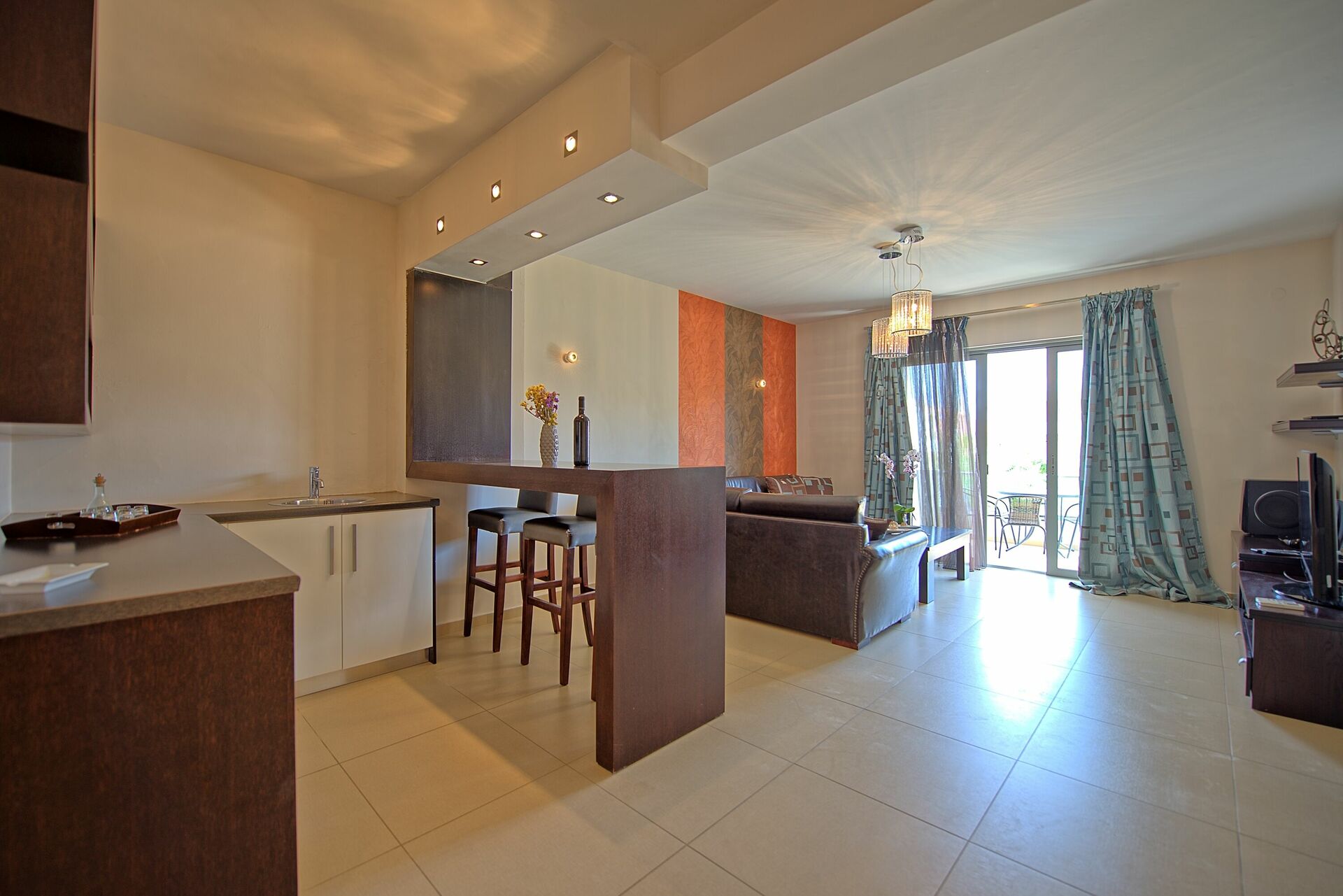 Distances: sea 100 meters away, Agia Marina (shops of all kinds) 100 meters, Cabana Mare Beach Club 300 meters, Chania 11 km, airport 30 km away.