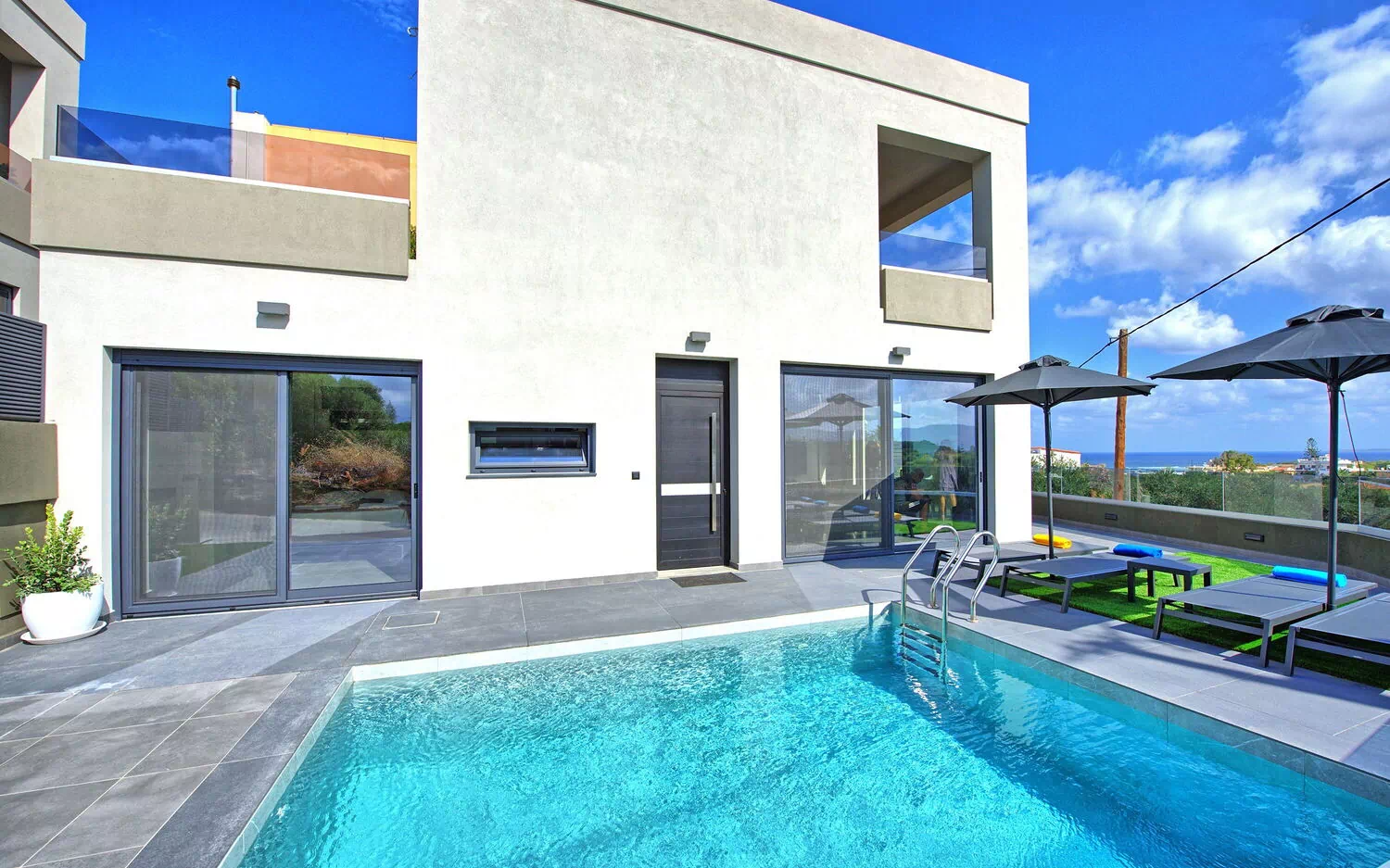 Thanks to 2 double bedrooms and the common area, Villa Popi can sleep up to 4/5 people and it is perfect as a base to discover Crete. On the outside each villa has a well-maintained outdoor area equipped to dine outdoor and with a private swimming pool.