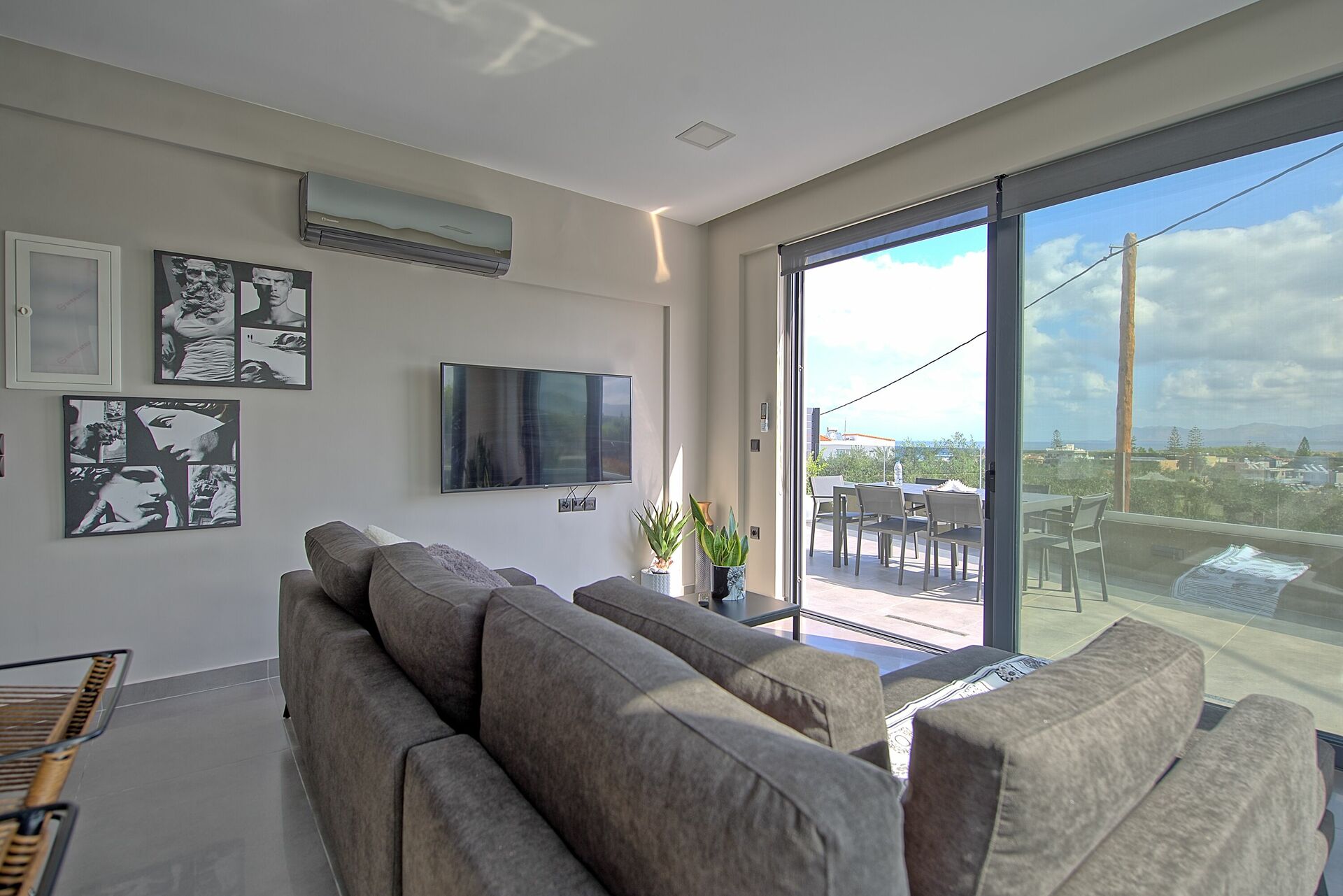 Très belle villa, bien placée proche de la mer et de La Canée. Moderne, bien équipée et décorée, piscine parfaite et place de parking dans la villa. Vue dégagée avec la mer au loin. Une fois les cigales endormies on entend un peu la route mais pas trop gênant. Kostas et Maria très gentils et serviables, accueil parfait. Je recommande !