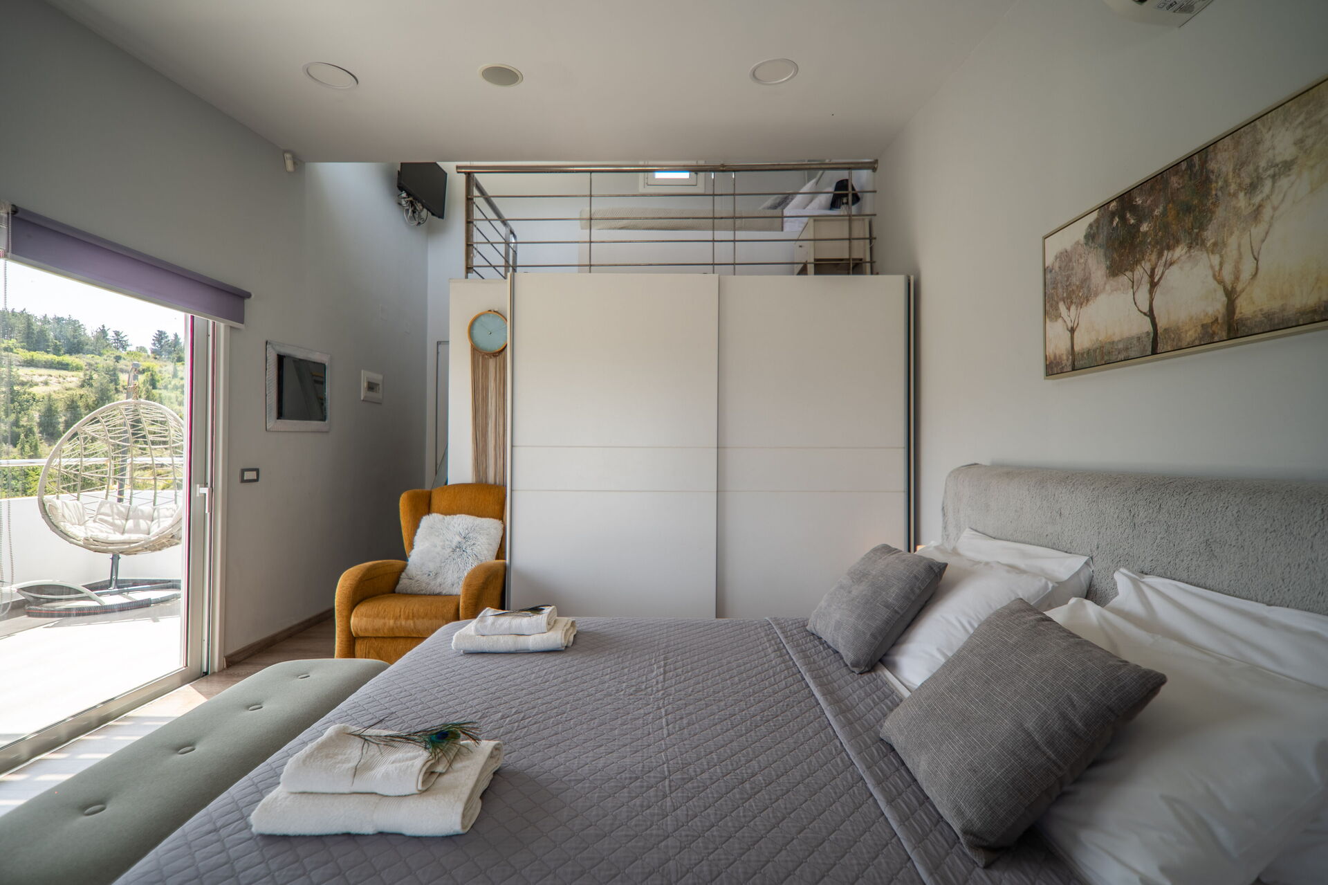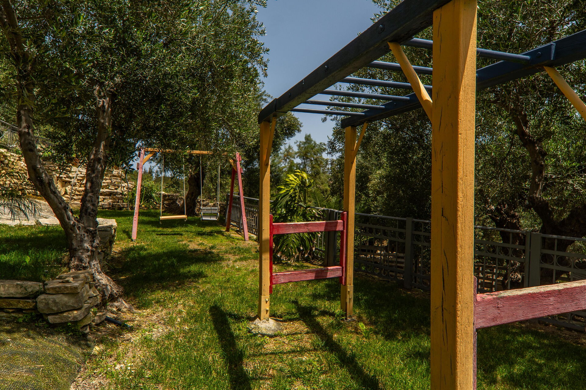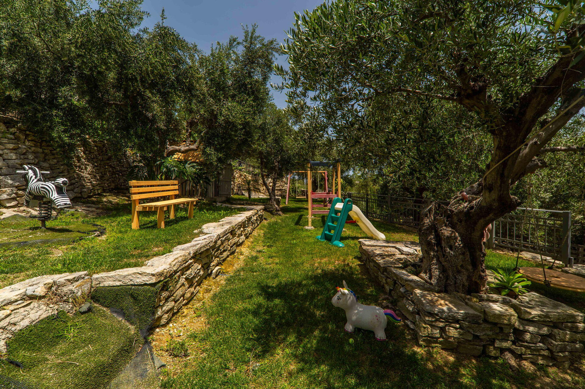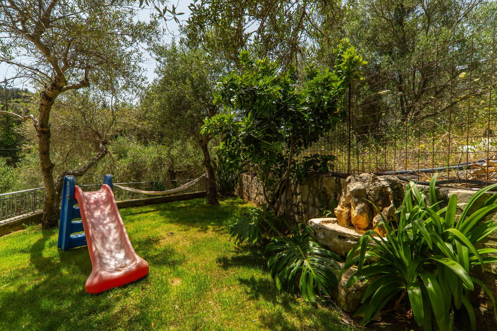 It offers a gorgeous garden, with plenty of trees, plants and flowers , all of them perfectly kept. What impressed us the most were the great number of lovely spots to relax: the 2 hammocks, at least 3 hanging chairs, sunloungers, 3 tables and chairs to sit and eat outside... one in the main garden, one on the first floor terrace, one at the Bbq: you will be spoiled for choices! We used to have breakfast on the terrace on the first floor, to enjoy the lovely view of the hills, and the sea in the distance in early morning, while we prefered the one in the garden, in front of the enlighted pool for dinner! For children a real playground has been created: swings of every kind , slide, a cute wood house, a climbing arch....and the 2 pools!!! Indoor, the property is not less attractive: the master bedroom is dreamy, with a gorgeous view and access to the jacuzzi! The other 2 bedrooms are lovely and both have access also on the garden. Every room is provided with smart tv and Ac. Also the kitchen area is just fabolous: you will find everything you may need: Oven, dishwasher, many tools to cook... and eveything is very convenient: you can access the first floor also from an external staircase for example, there is a nice area to hang clothes after using the washing maschine, the villa is equpped with an alarm system, and the outdoor automatic light system works perfectly. But what makes this property so special, are of course the owners and their welcome.