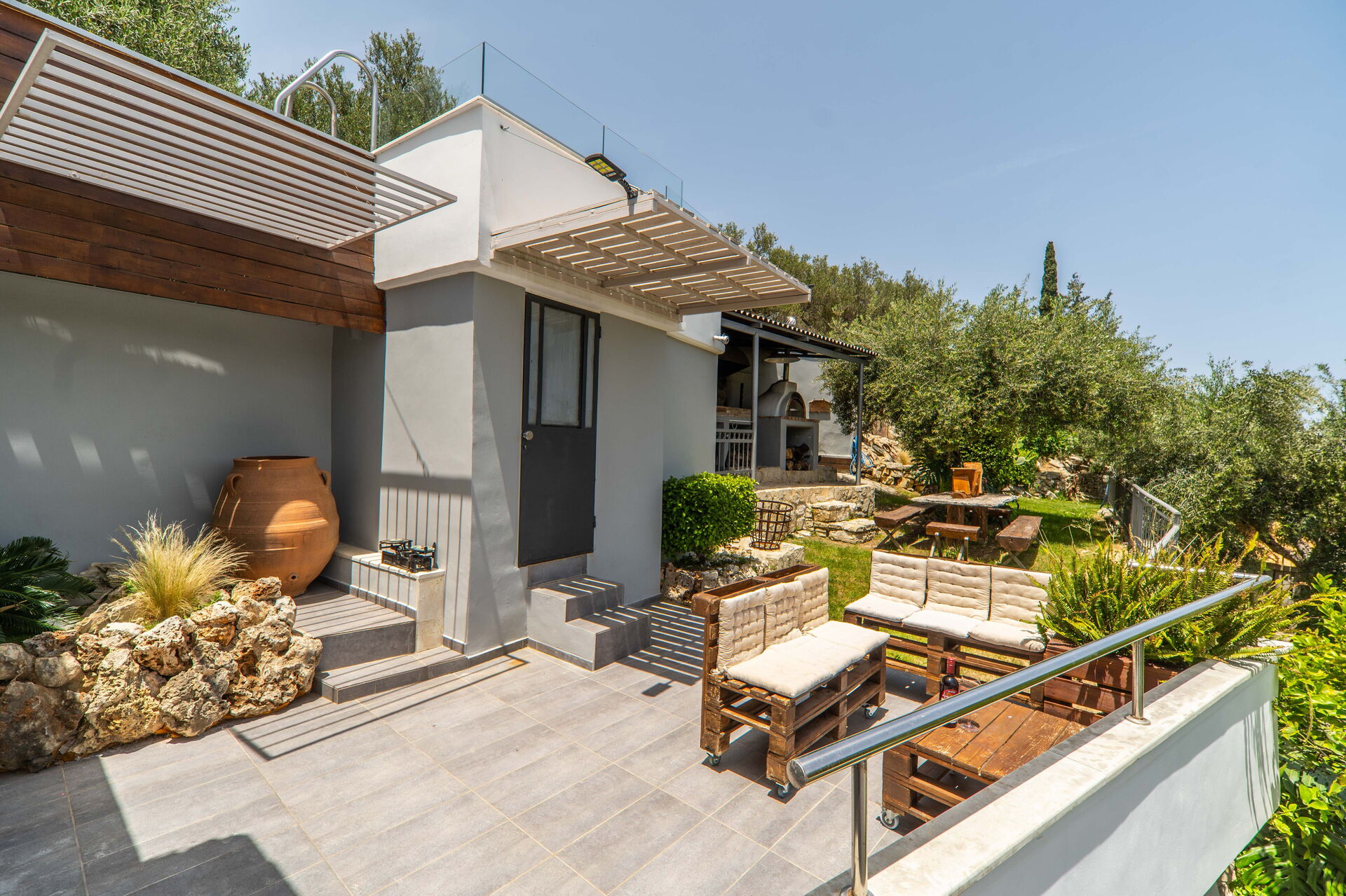 - big equipped area with bbq, wood oven, table and chairs to dine outdoor