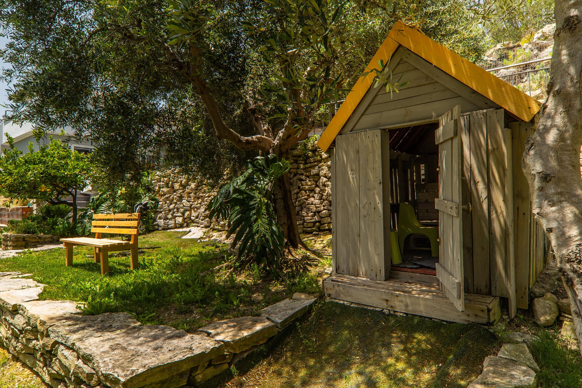 - children playground (slide, swing, wooden house)
