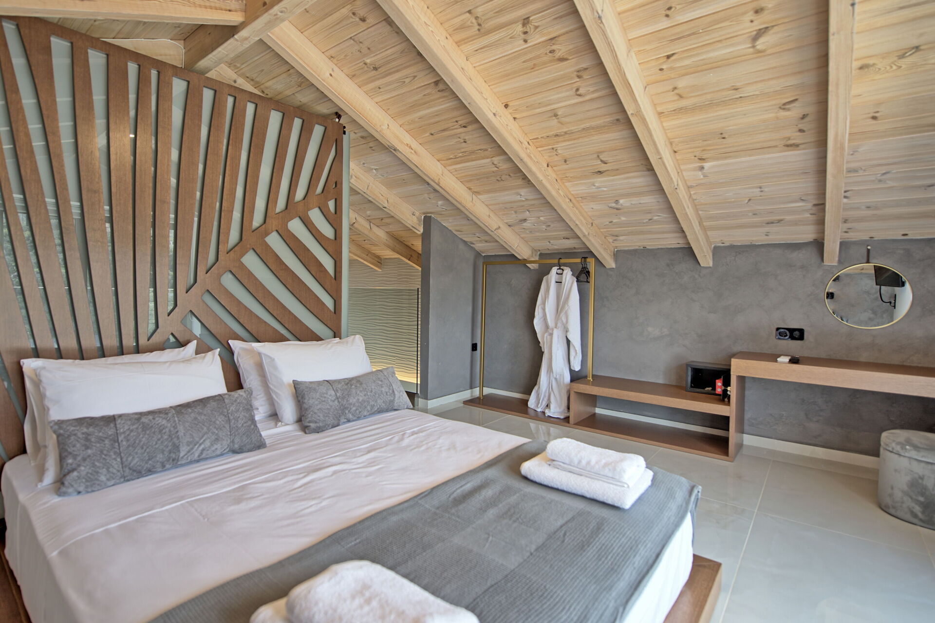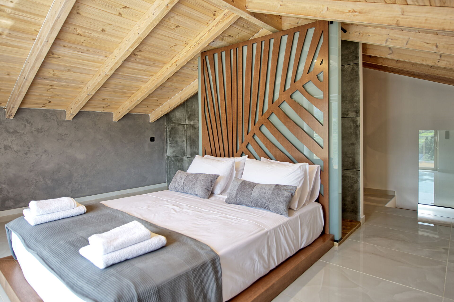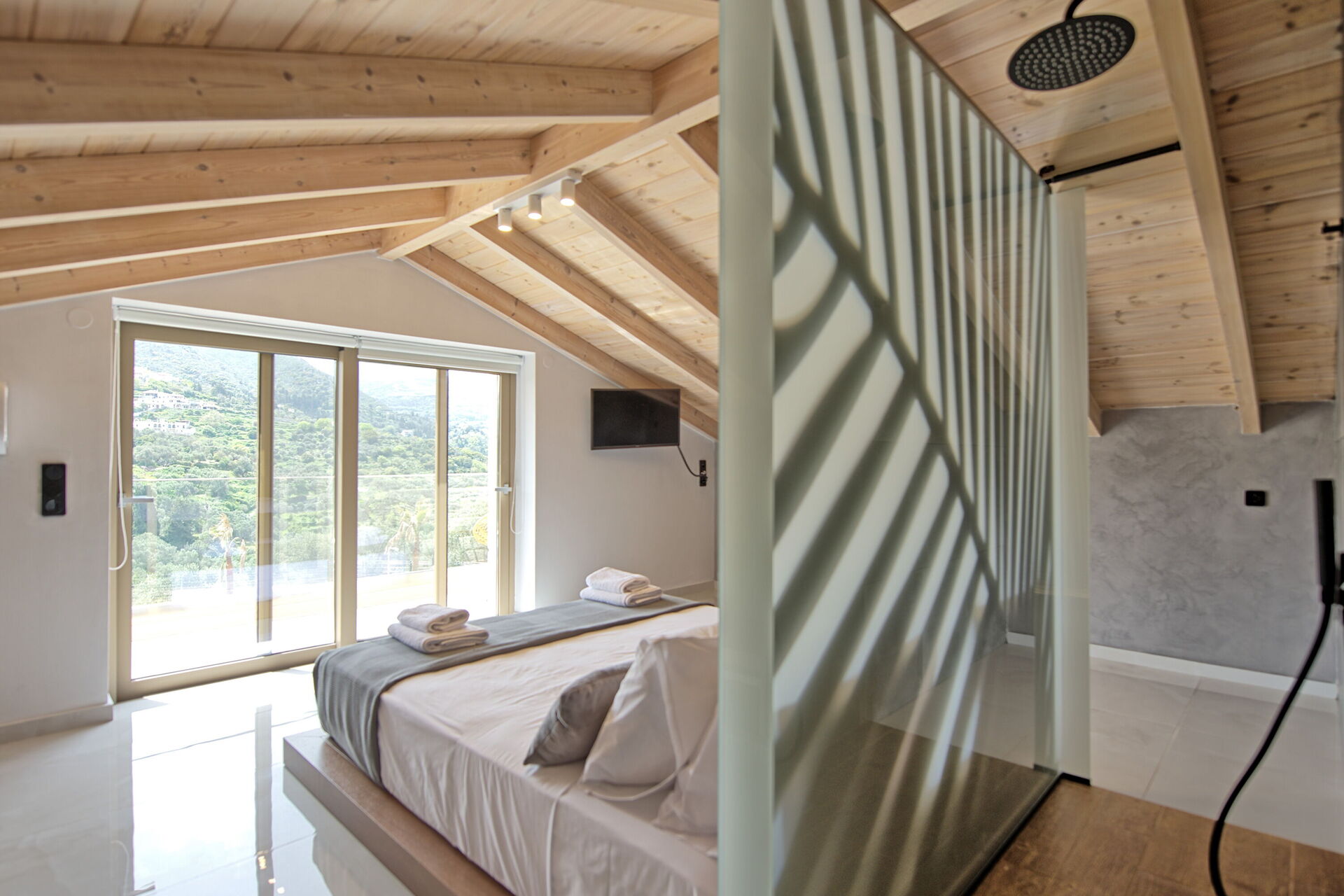 The villa is part of the Silentium complex, a scenic group of 3 independent villas, each with its own pool. In addition to Villa Silentium Evilia, there are Villa Silentium Ionia and Villa Silentium Olia (both which are part of our catalogue): the three villas can be rented all together to accommodate a family reunion or a large group of friends.