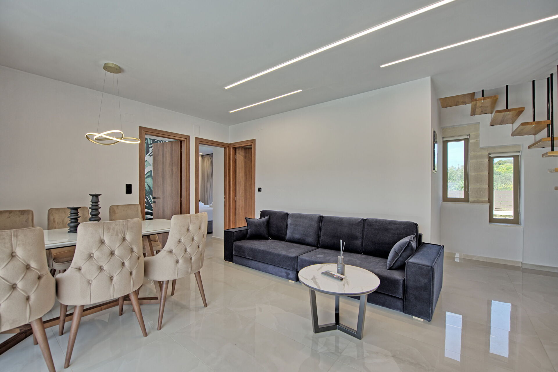The villa is brand new and very welcoming, with bright, comfortable interiors and modern furnishings. With two levels, 3 double bedrooms, and 2 single sofa beds, villa Silentium Evilia can accommodate up to 6/8 people and is perfect for a vacation with family or friends.