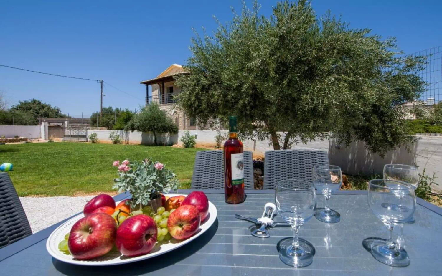 Distances: Kounoupidiana (shops of all kinds) 5 km, Kalatas (beach) 5 km, Chania airport 3 km, Stavros (beach) 8 km, Seitan Limania (beach) 10 km, Chania (shops, old Venetian harbor) 12 km, Suda (harbor) 14 km, Rethimno 67 km.