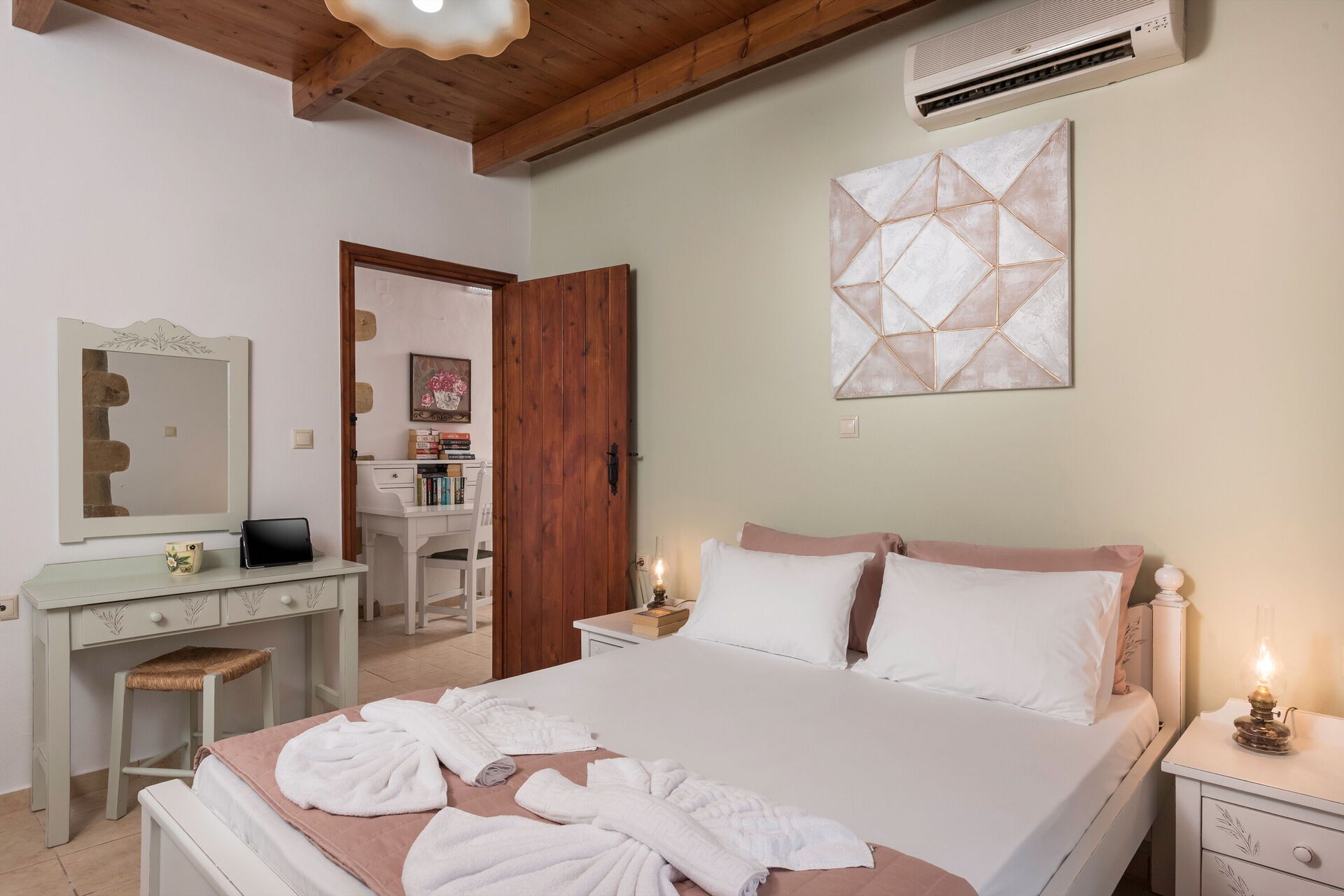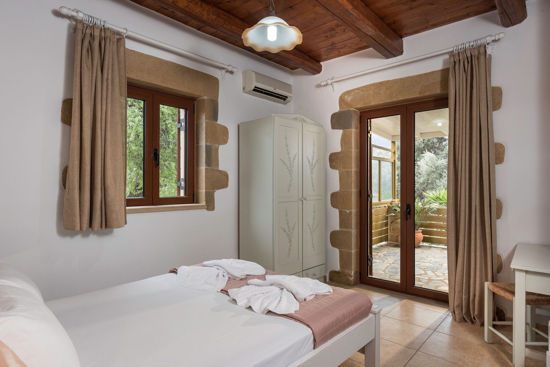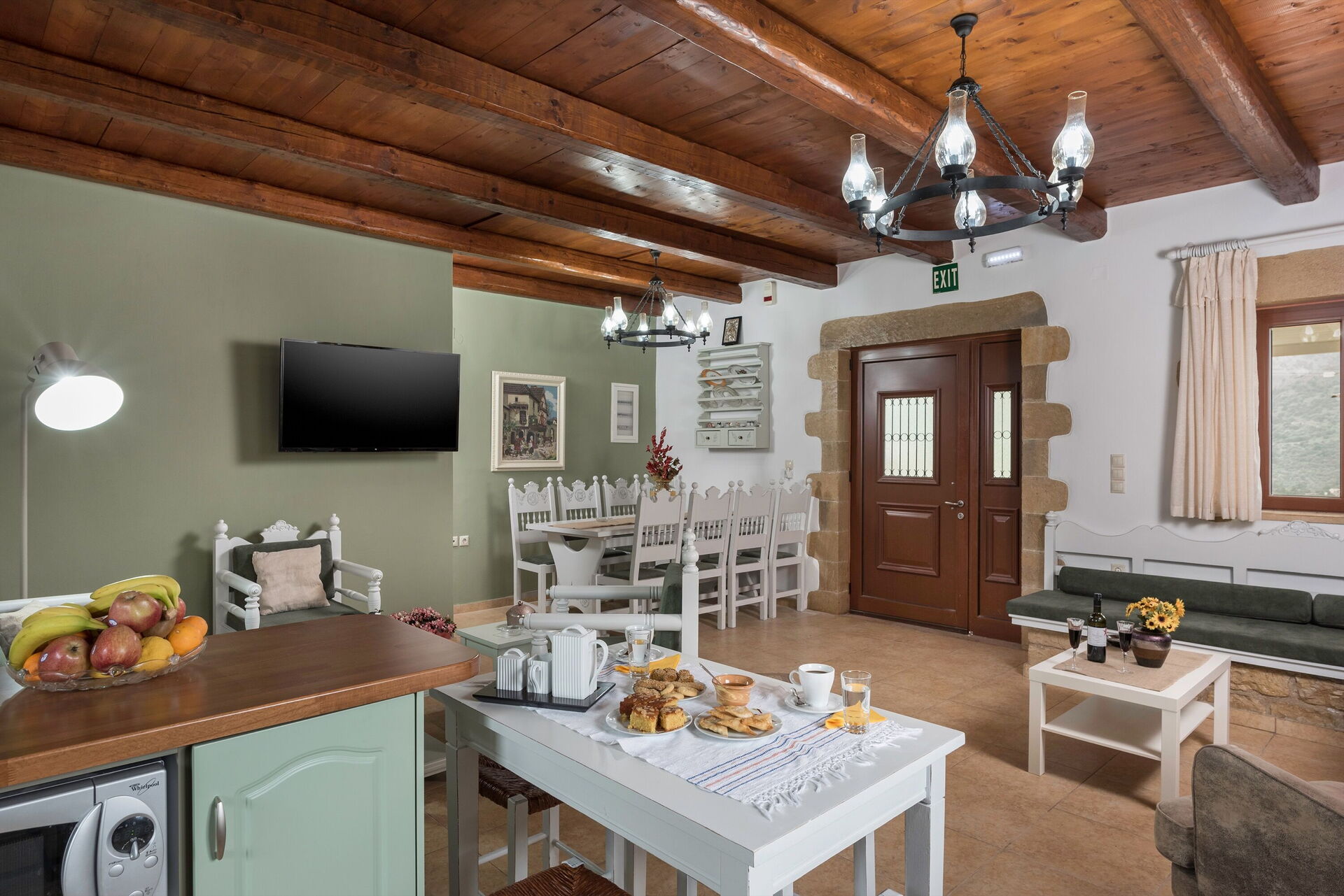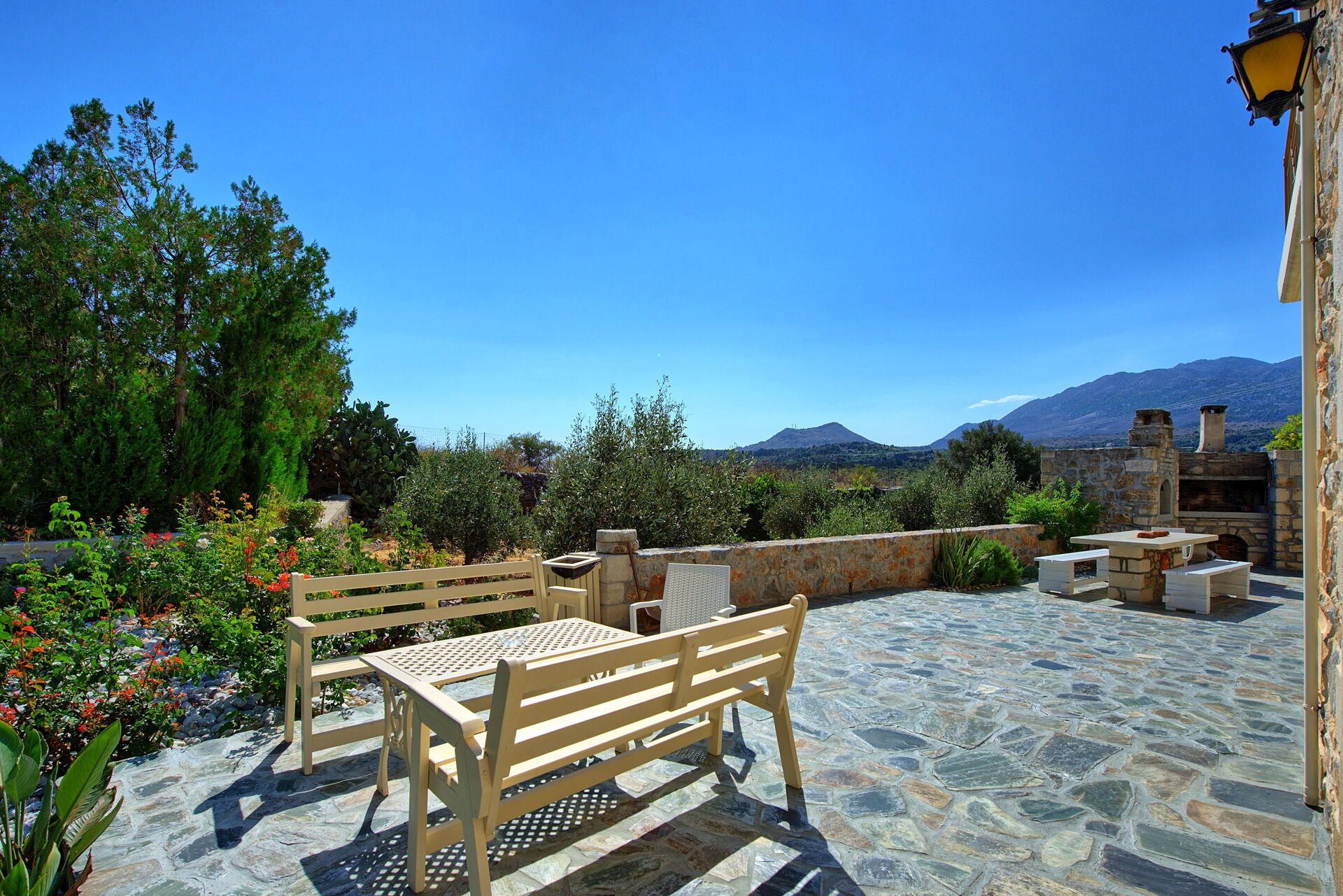 Distances: Vrisses (shops of all kinds) 3 km, Georgioupolis (sea) 8km, Vamos 10km, Rethymno 30km, Chania 33km, airport 47 km, Heraklion 114 km, Agios Nikolaos 173 km.