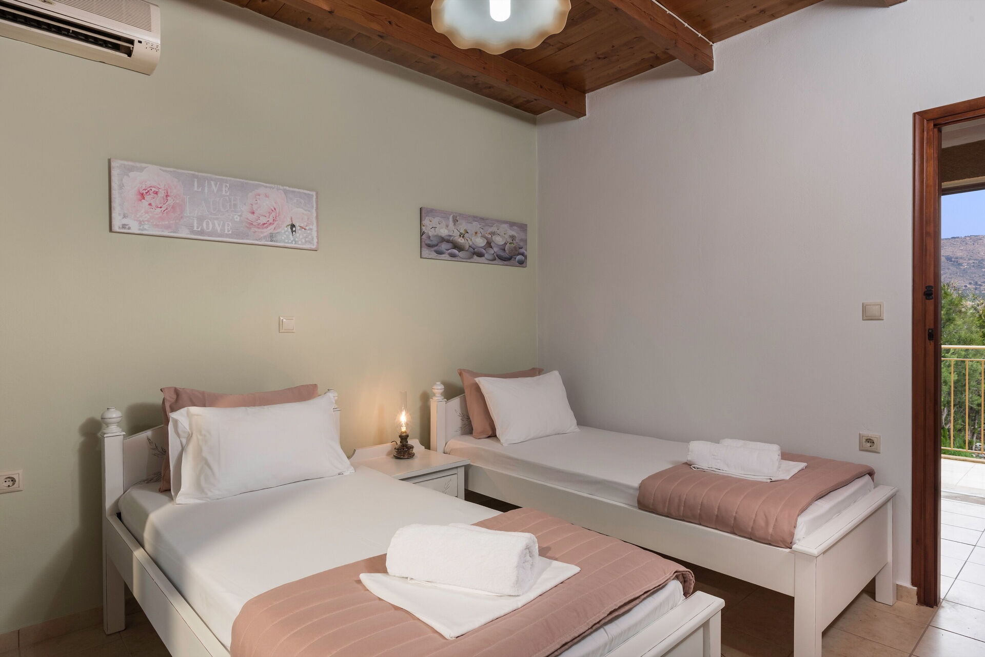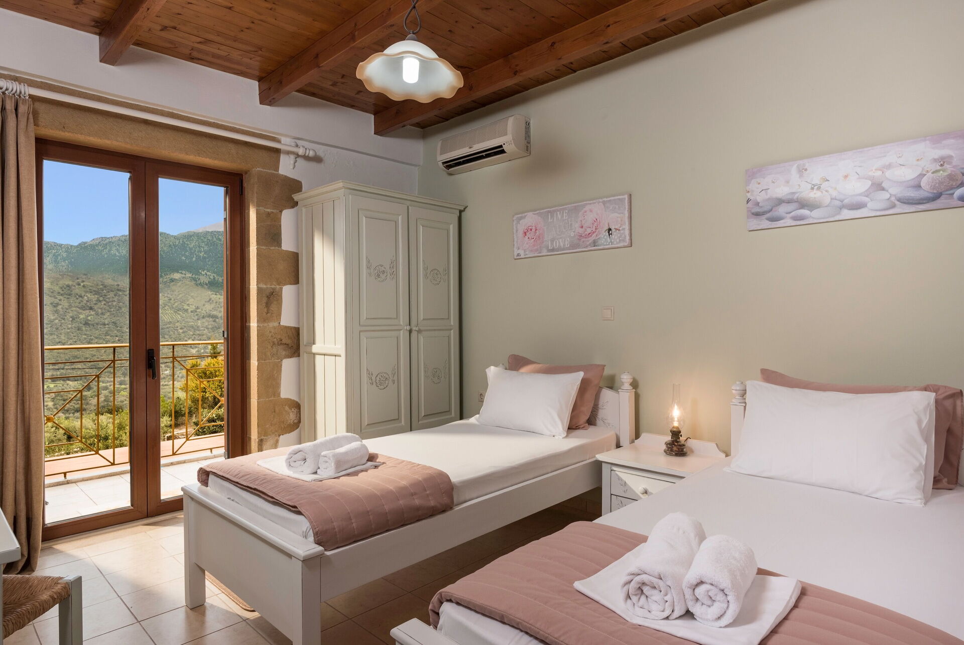 There is access to a balcony from the double bedroom, and from one of the bedrooms with 2 single beds.