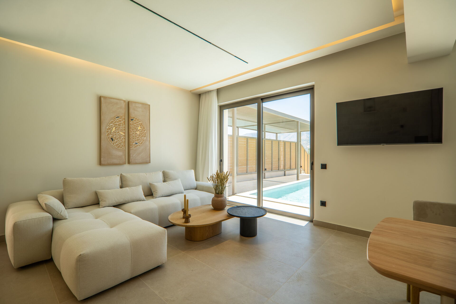 Each villa offers 3 bedrooms, 3 bathrooms, a lovely living area with a kitchen, air conditioning in all of the rooms, and a fantastic outdoor space with its own private pool.