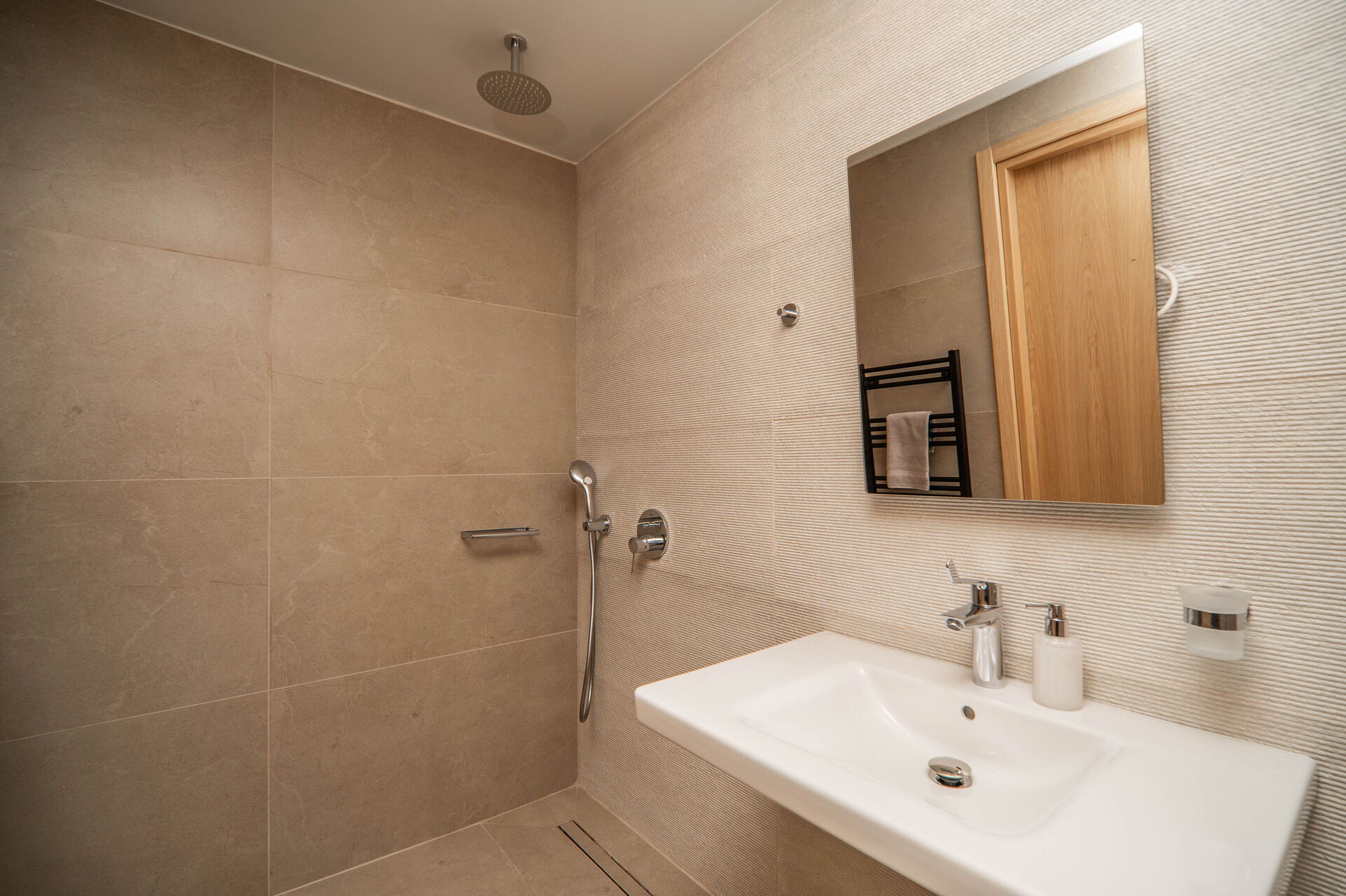 First floor: 2 double bedrooms, each with a private bathroom with shower.