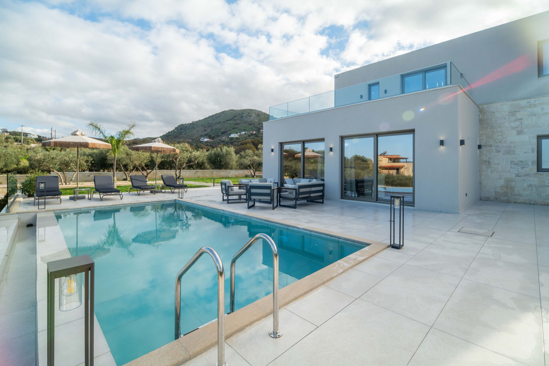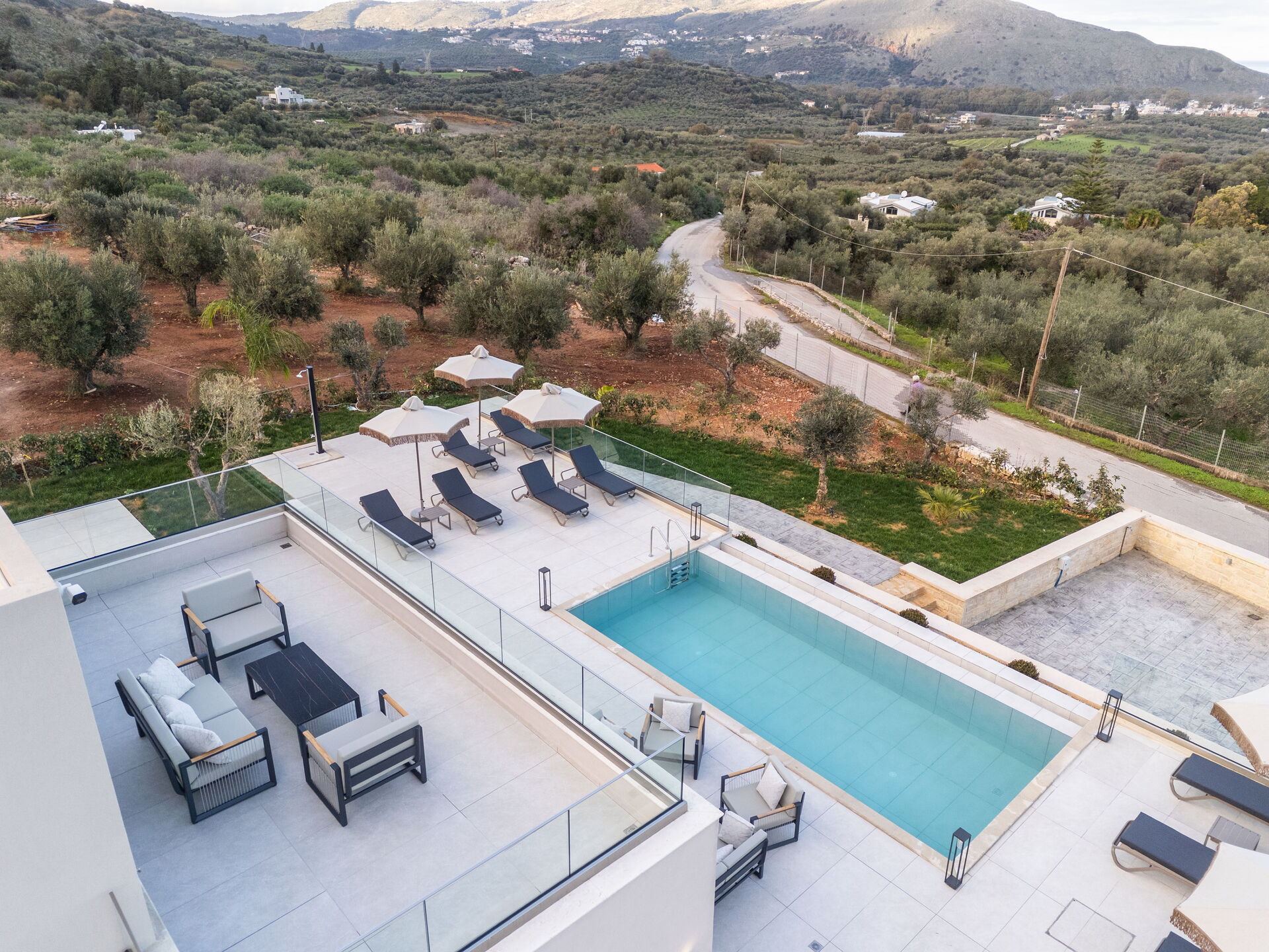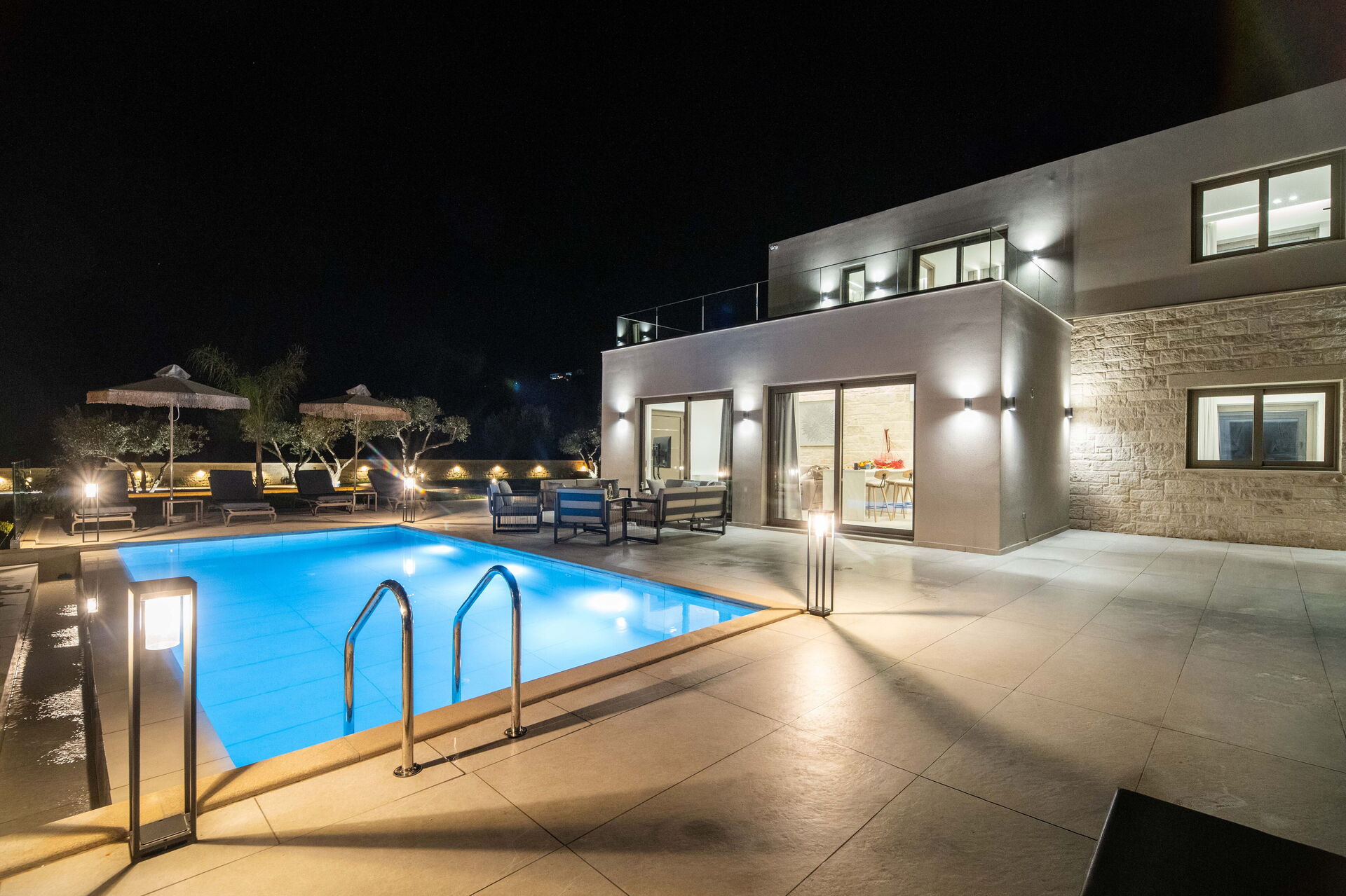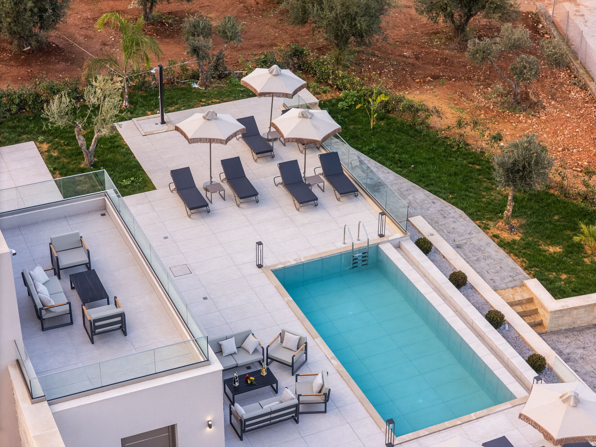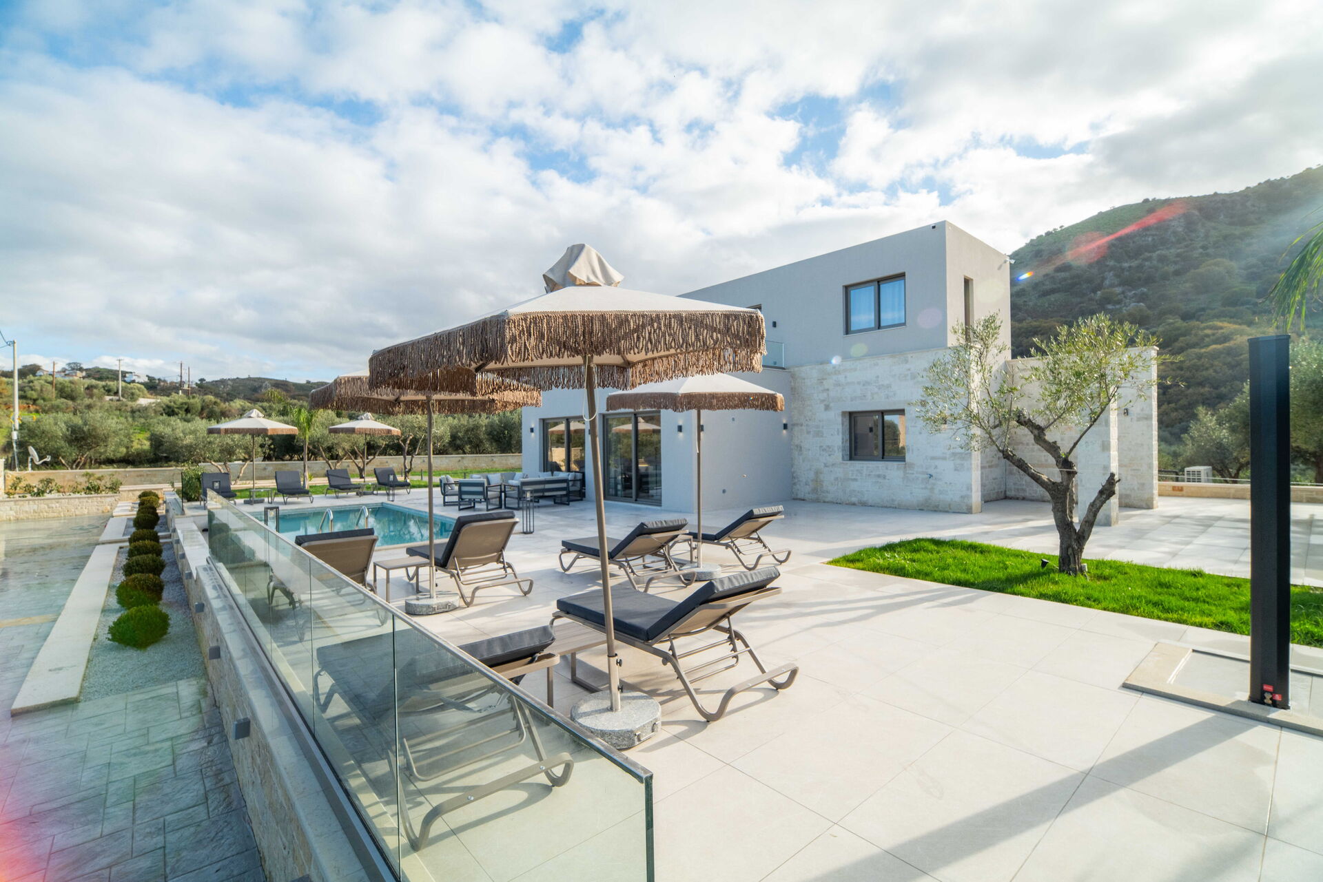 Construction of the villa was finished in January 2026, and everything in Villa Vasilissa is brand new: a scenic pool with panoramic views of the sea and Cretan countryside awaits you for refreshing swims on hot summer days. Inside, the villa has 3 floors and a total of 5 bedrooms: two on the first floor, two on the ground floor, and one on a lower floor, which is just as comfortable and well equipped. An indoor dining area offers beautiful views of the pool, countryside, and the sea. There is also an outdoor area furnished for al fresco dining.