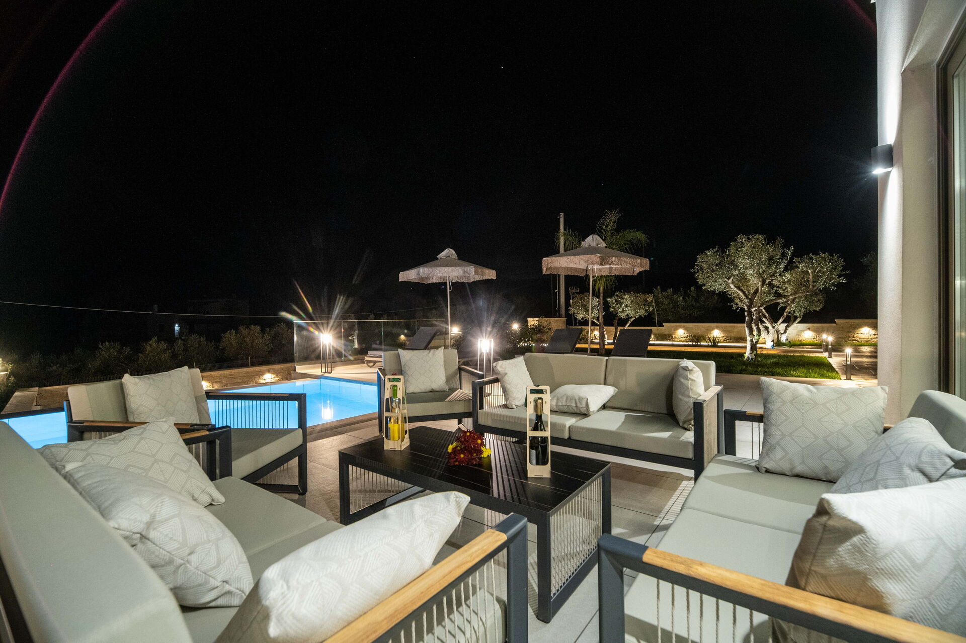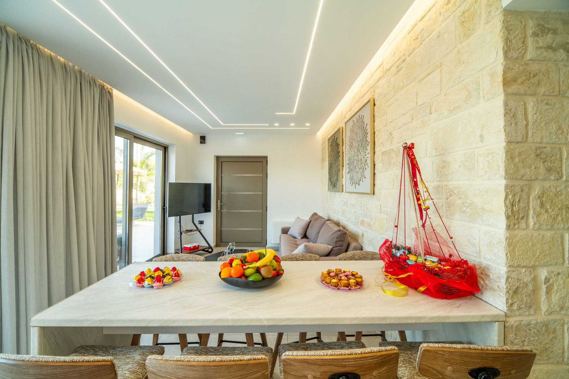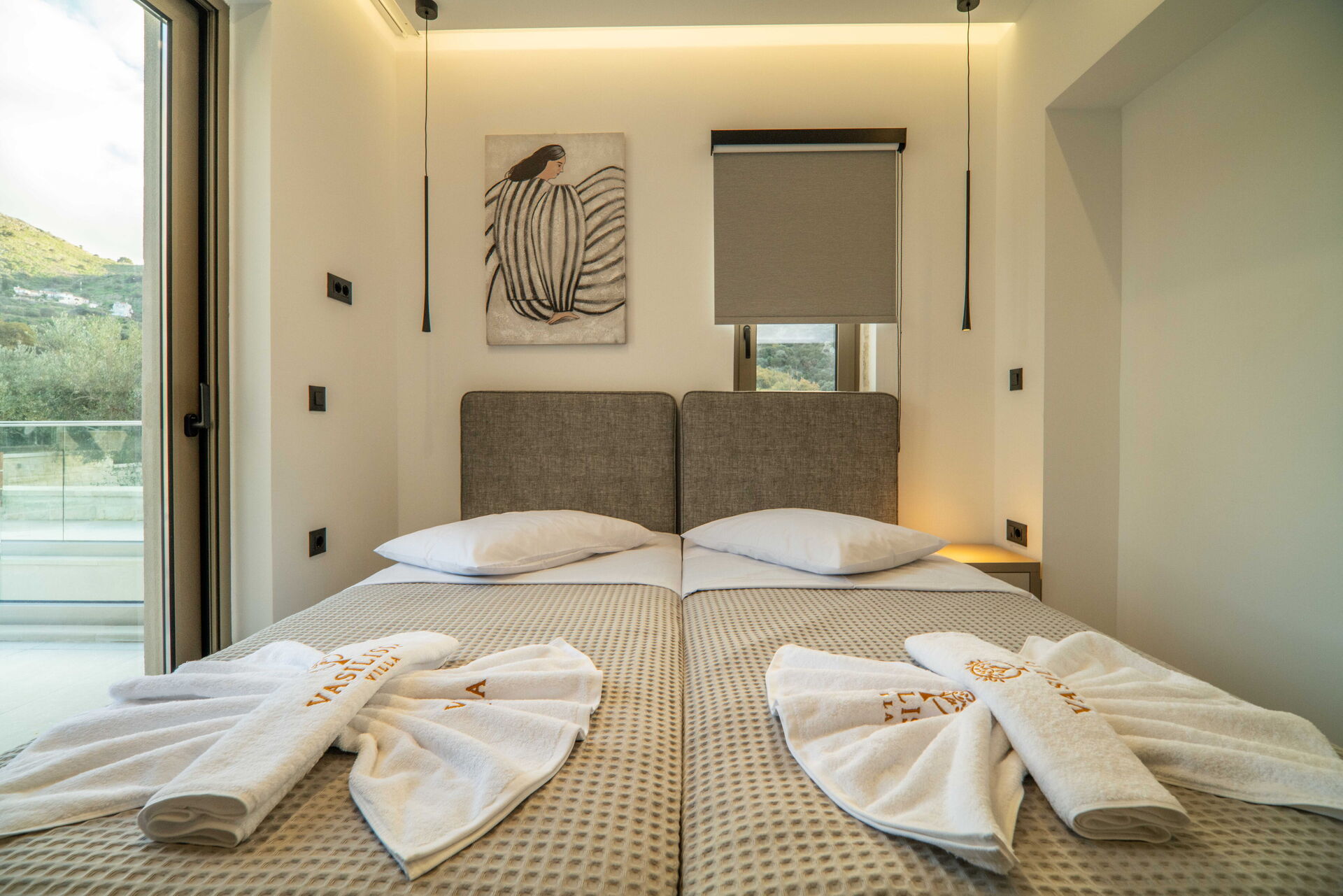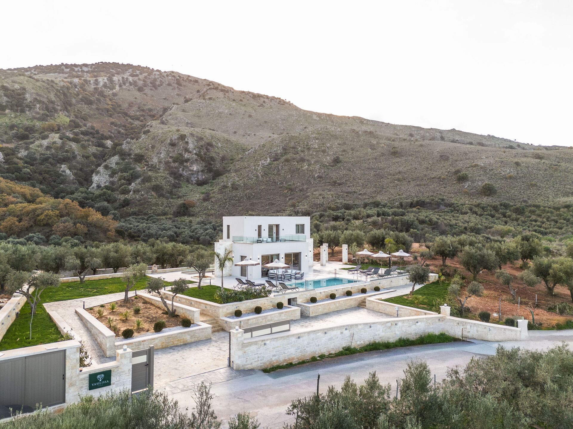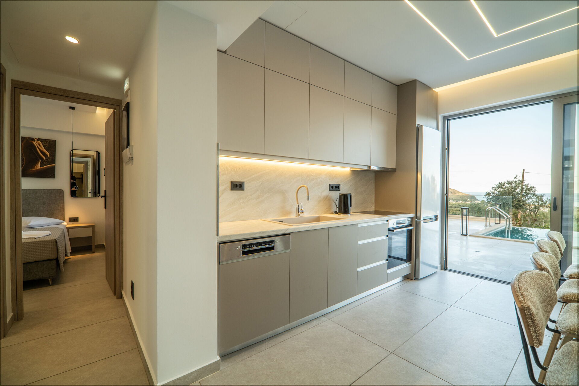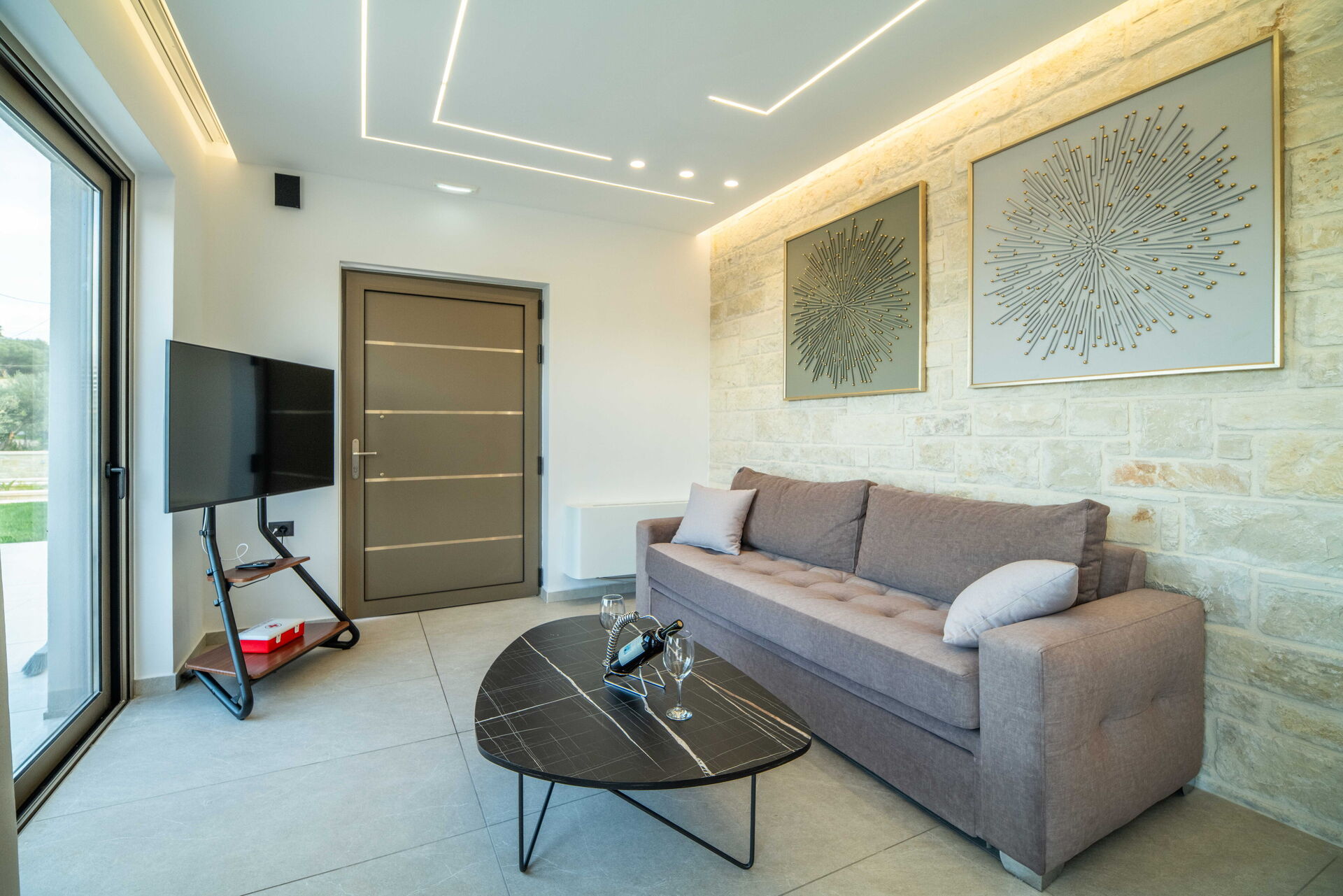 Construction of the villa was finished in January 2026, and everything in Villa Vasilissa is brand new: a scenic pool with panoramic views of the sea and Cretan countryside awaits you for refreshing swims on hot summer days. Inside, the villa has 3 floors and a total of 5 bedrooms: two on the first floor, two on the ground floor, and one on a lower floor, which is just as comfortable and well equipped. An indoor dining area offers beautiful views of the pool, countryside, and the sea. There is also an outdoor area furnished for al fresco dining.
