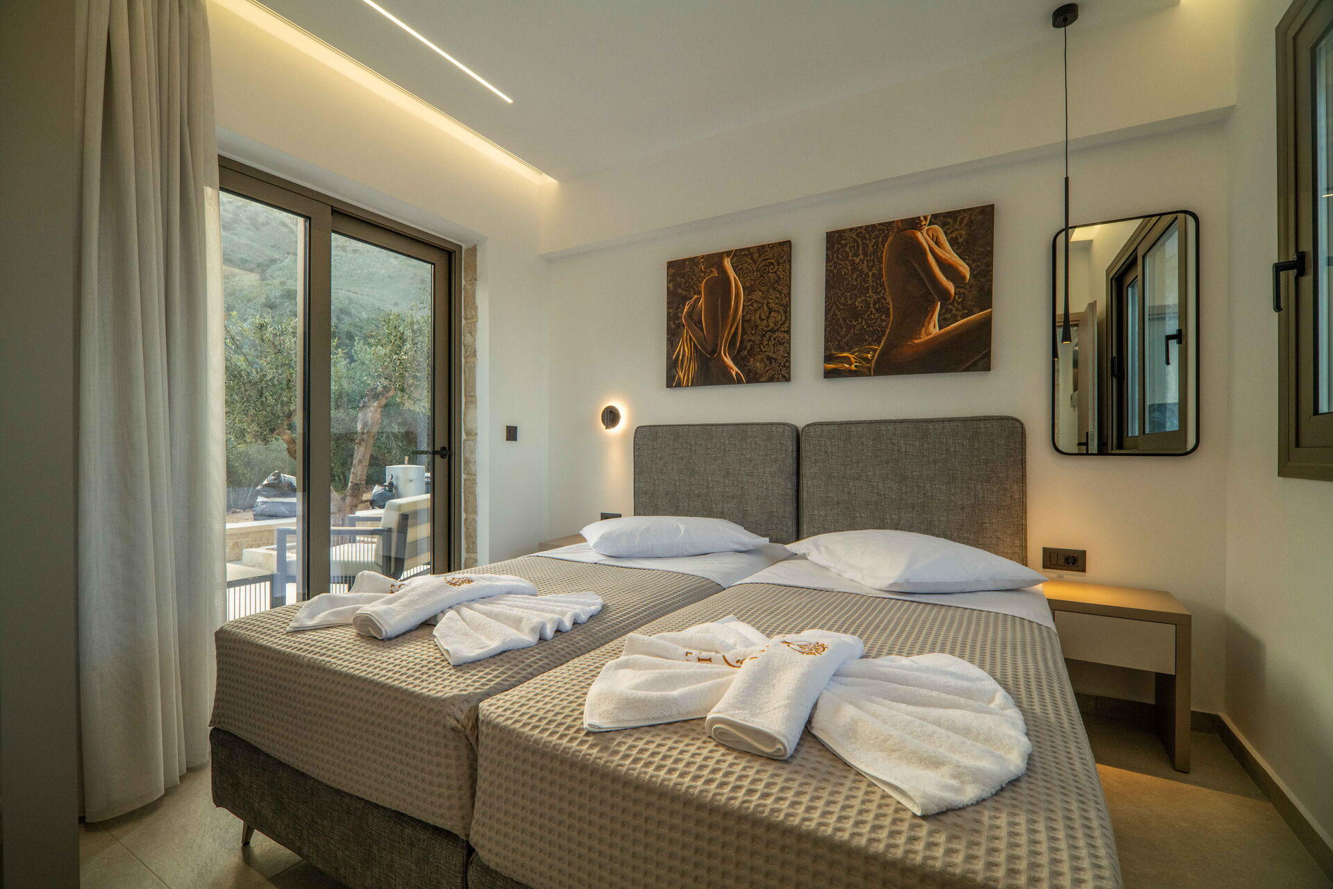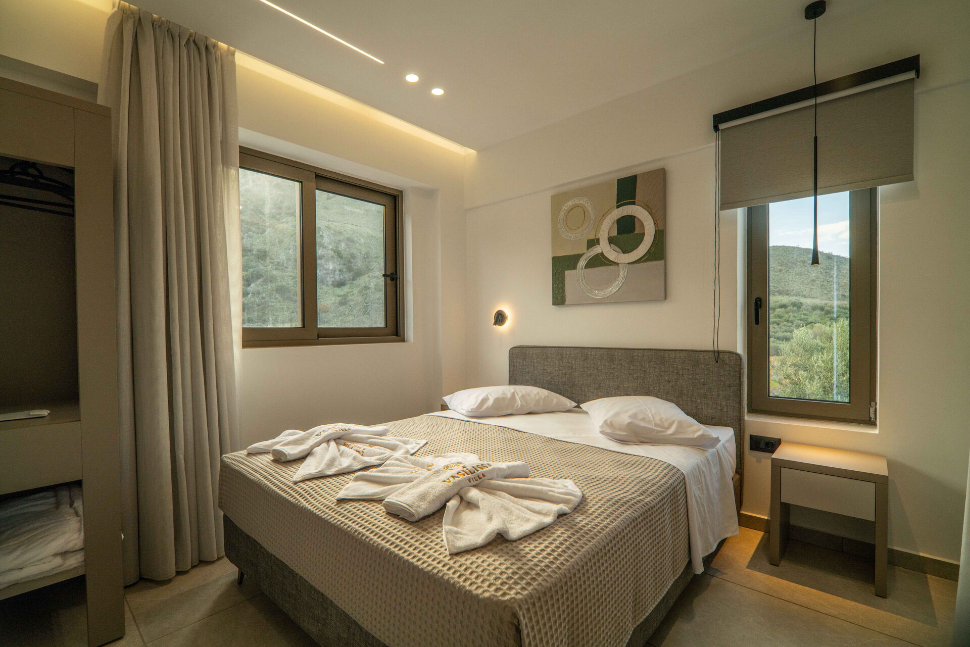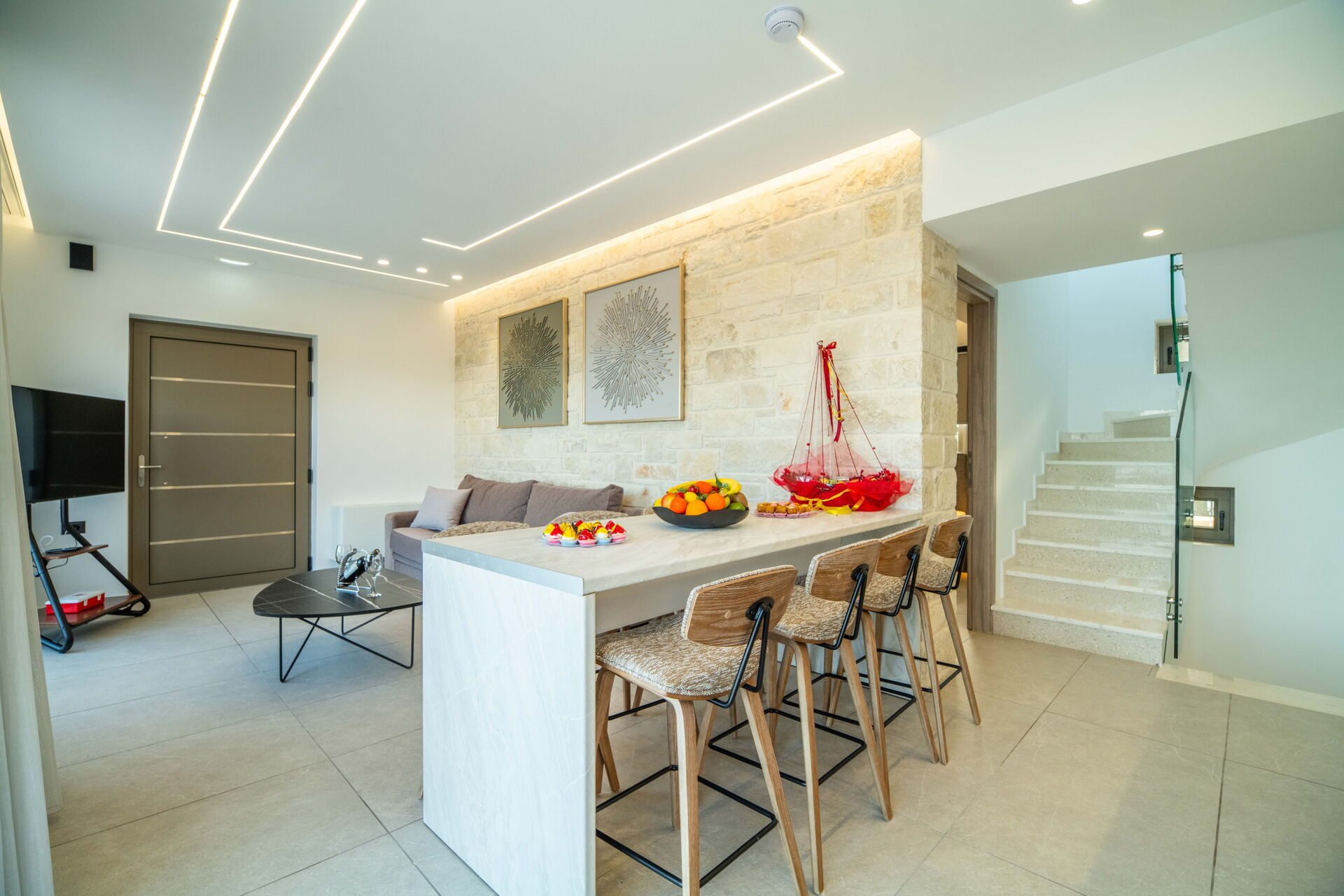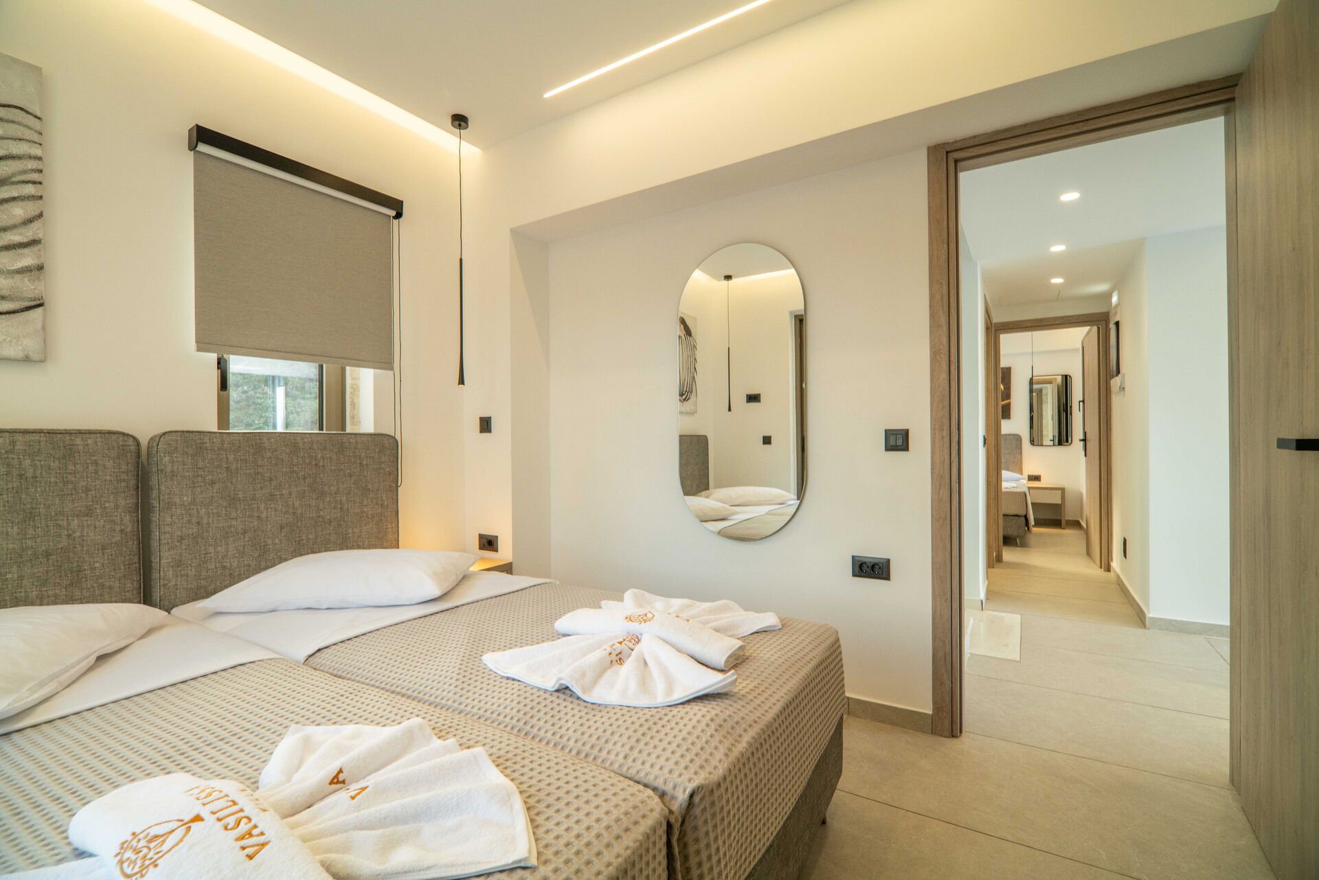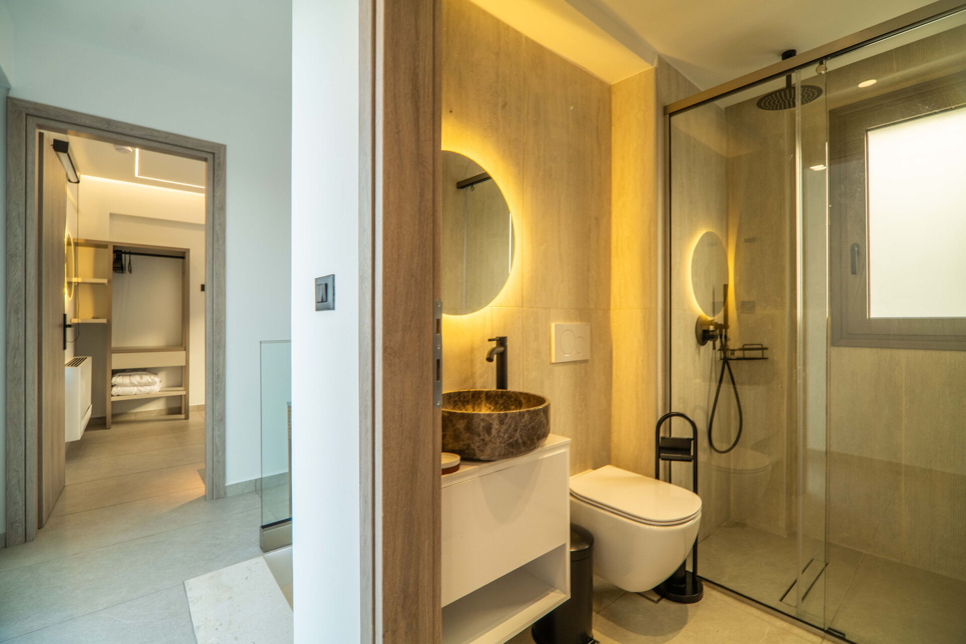 Construction of the villa was finished in January 2026, and everything in Villa Vasilissa is brand new: a scenic pool with panoramic views of the sea and Cretan countryside awaits you for refreshing swims on hot summer days. Inside, the villa has 3 floors and a total of 5 bedrooms: two on the first floor, two on the ground floor, and one on a lower floor, which is just as comfortable and well equipped. An indoor dining area offers beautiful views of the pool, countryside, and the sea. There is also an outdoor area furnished for al fresco dining.