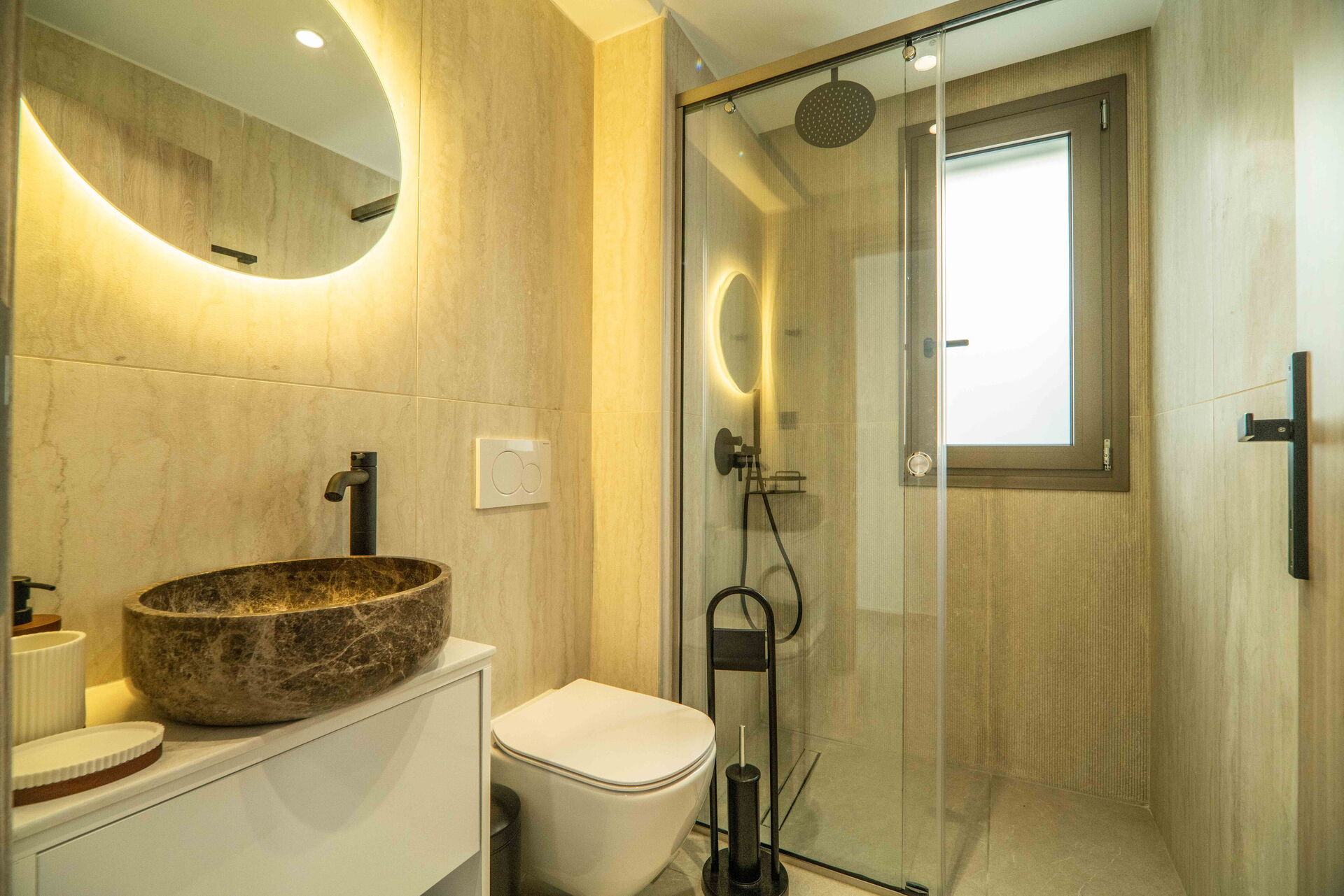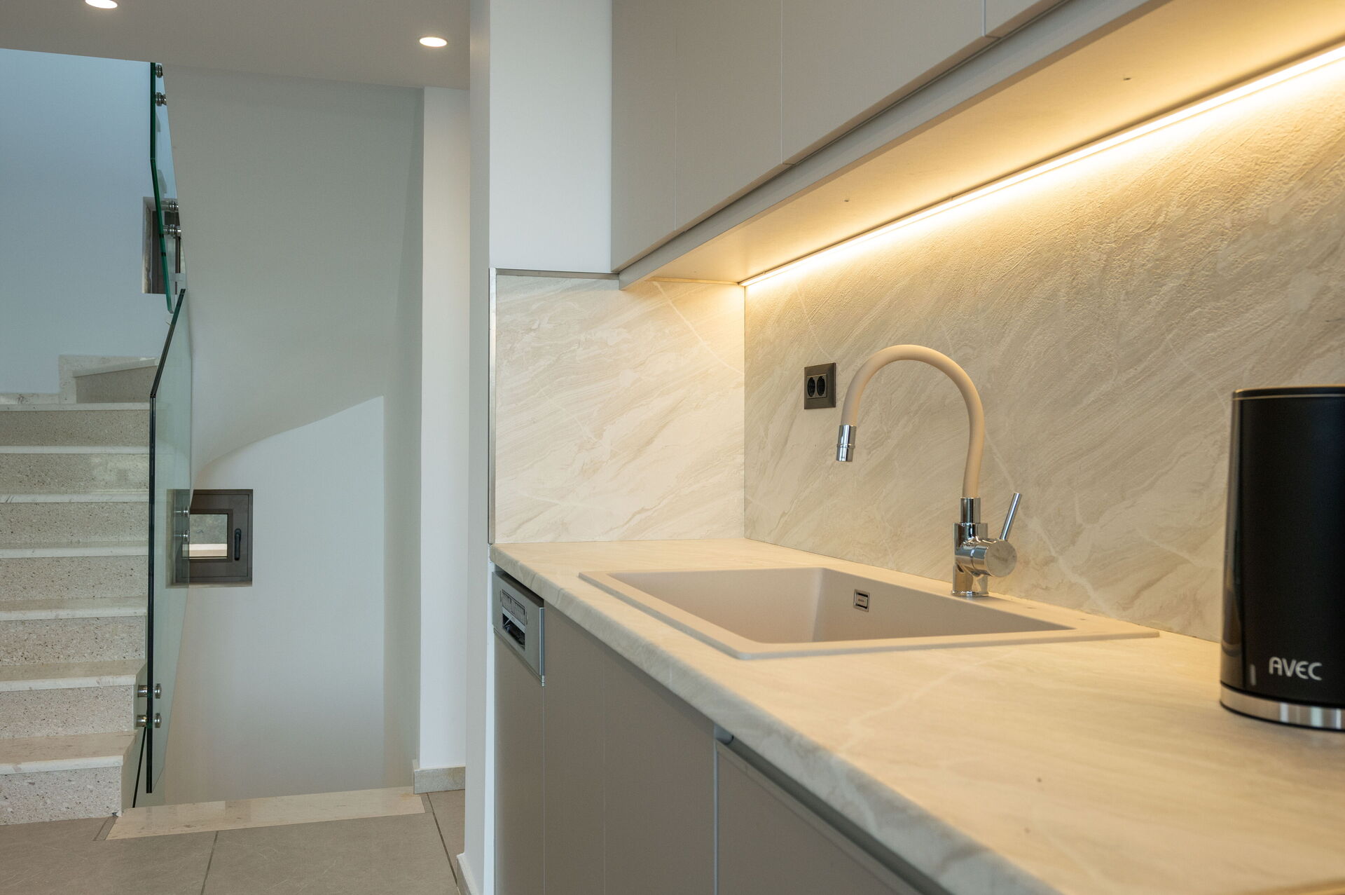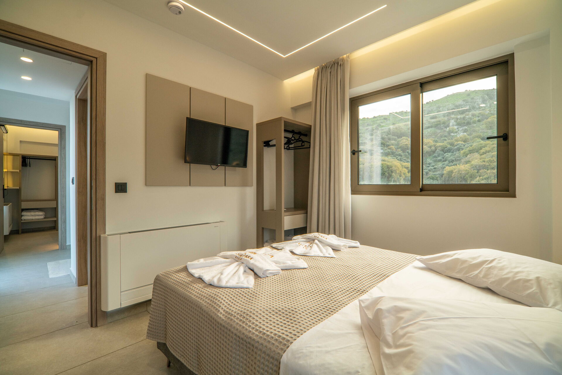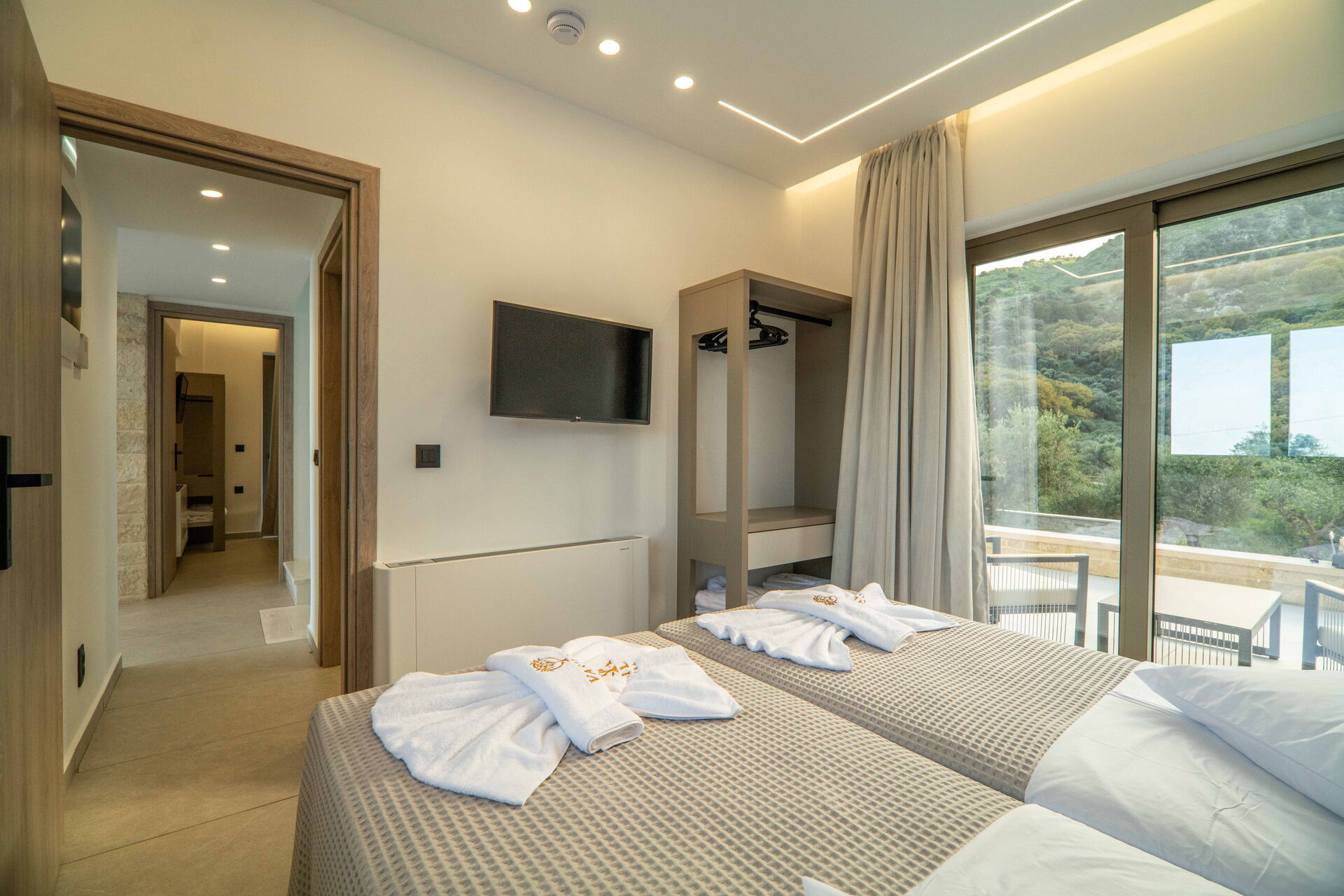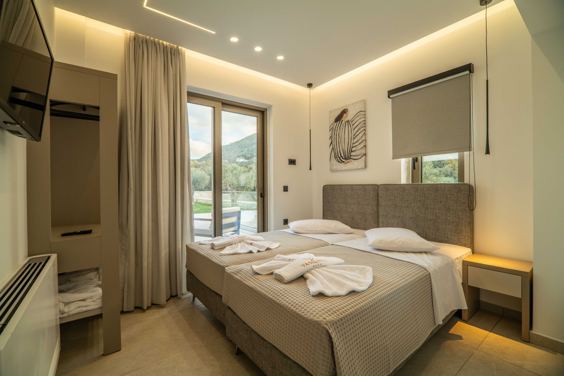 Construction of the villa was finished in January 2026, and everything in Villa Vasilissa is brand new: a scenic pool with panoramic views of the sea and Cretan countryside awaits you for refreshing swims on hot summer days. Inside, the villa has 3 floors and a total of 5 bedrooms: two on the first floor, two on the ground floor, and one on a lower floor, which is just as comfortable and well equipped. An indoor dining area offers beautiful views of the pool, countryside, and the sea. There is also an outdoor area furnished for al fresco dining.