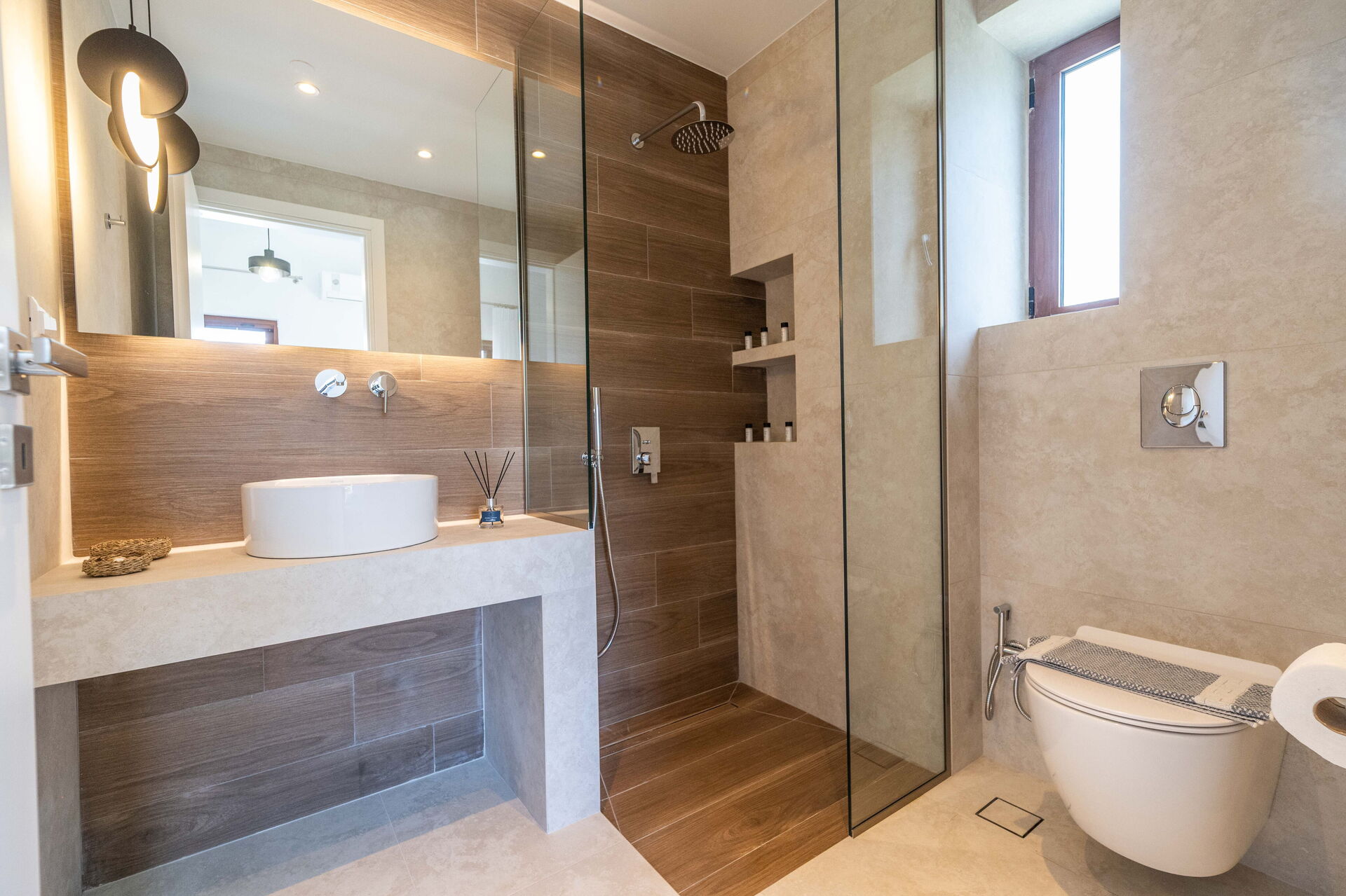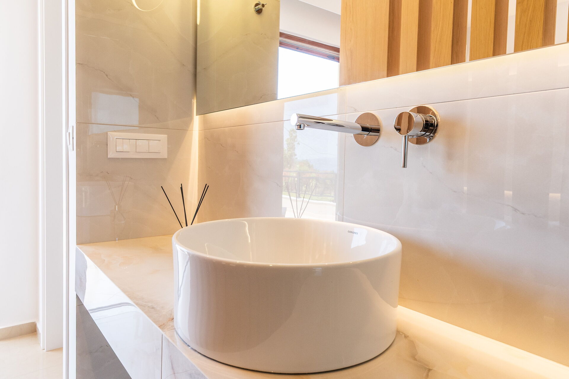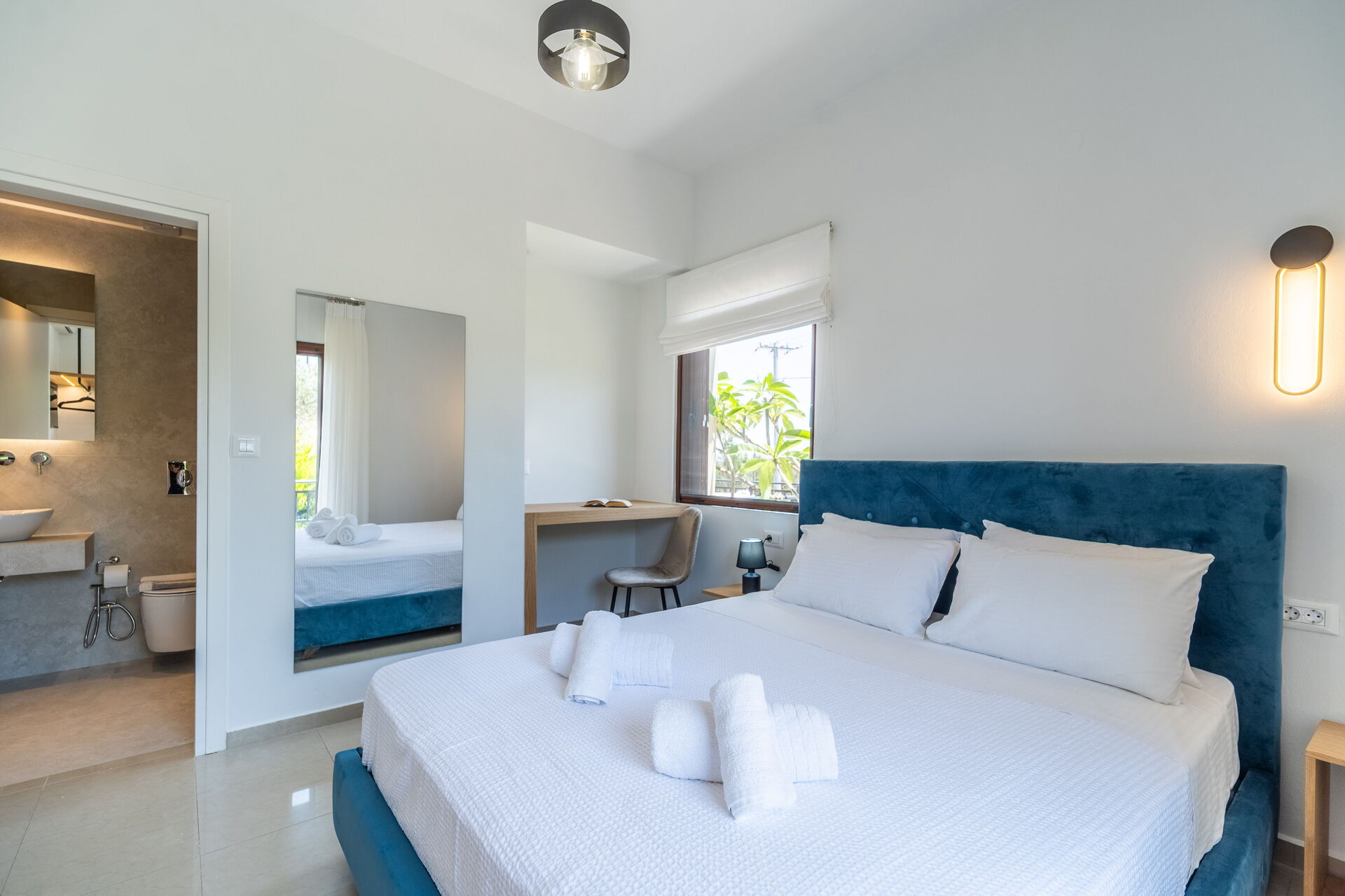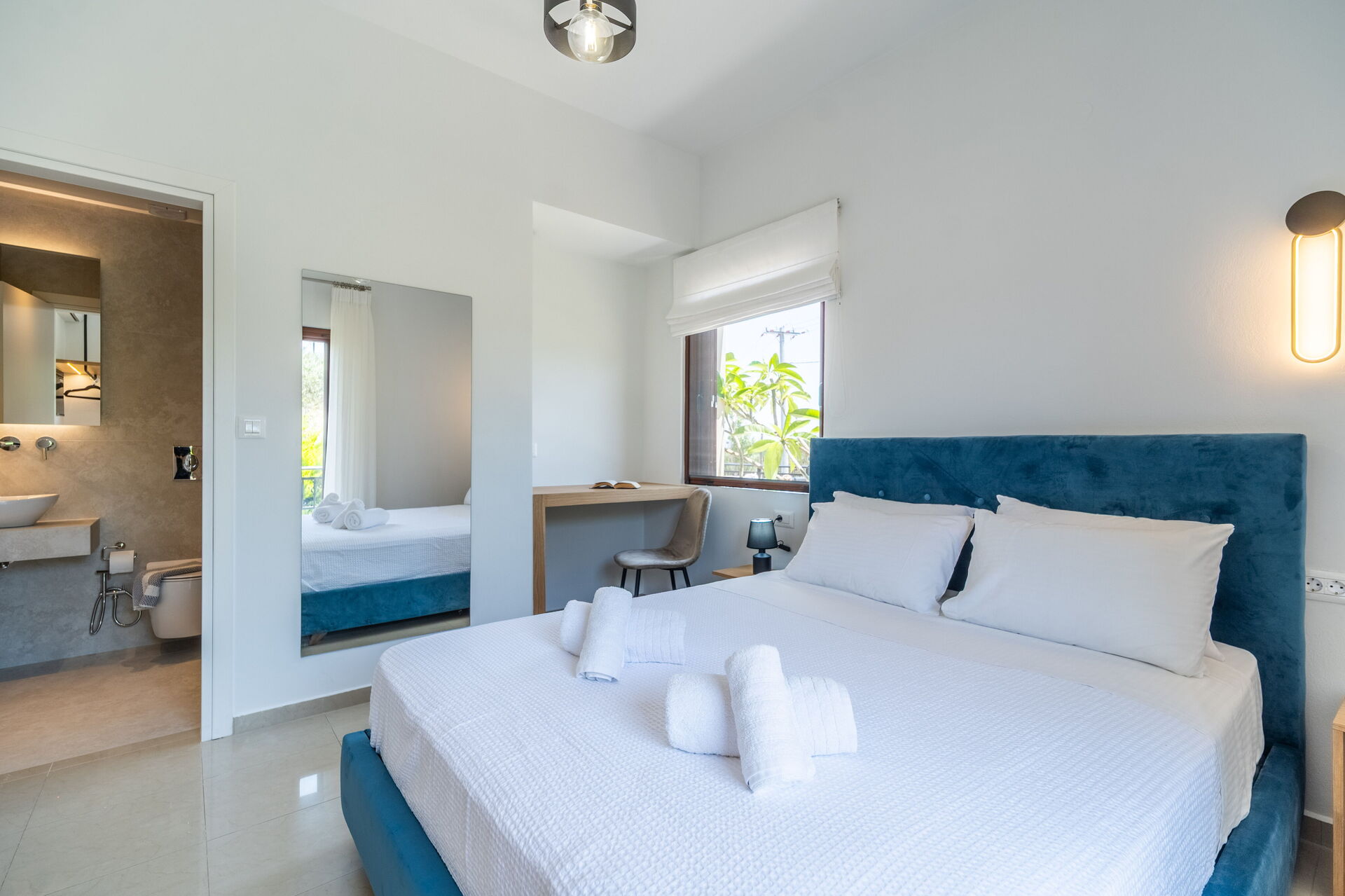 Villa Aetheria is perfect for a family or group of friends. The one-floor villa offers 4 bedrooms and elegant, welcoming, bright interiors to comfortably accommodate up to 8 people.