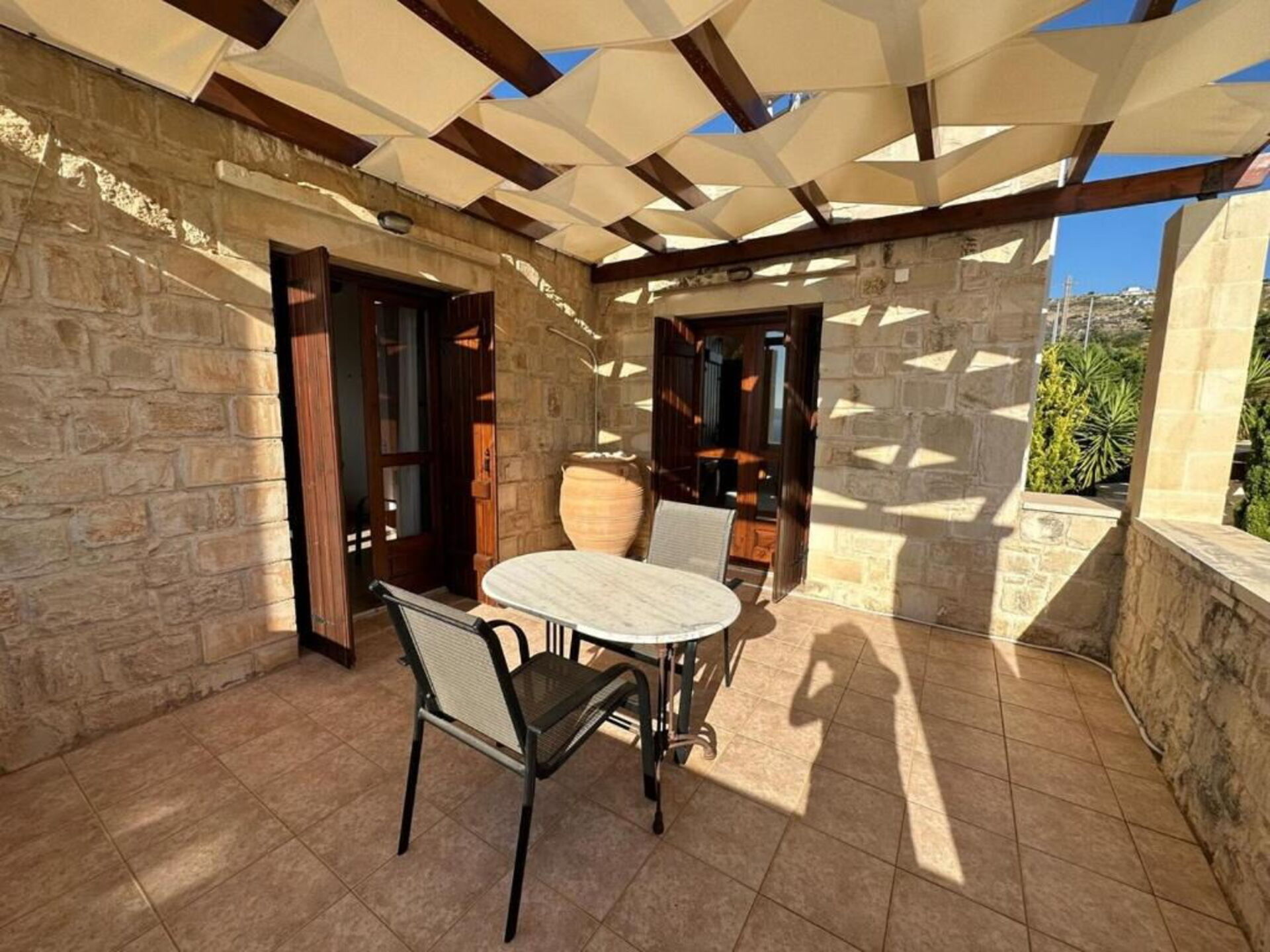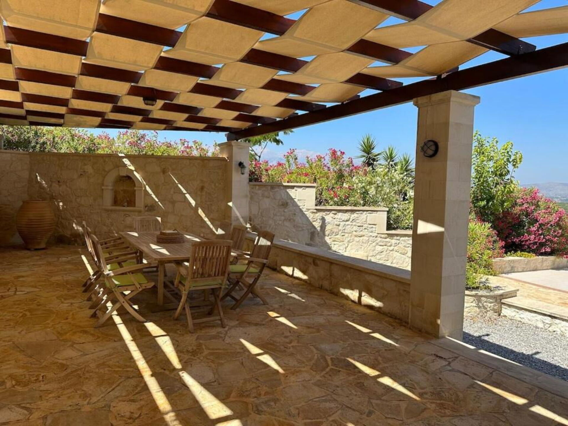 - terrace with pergola and outdoor dining area