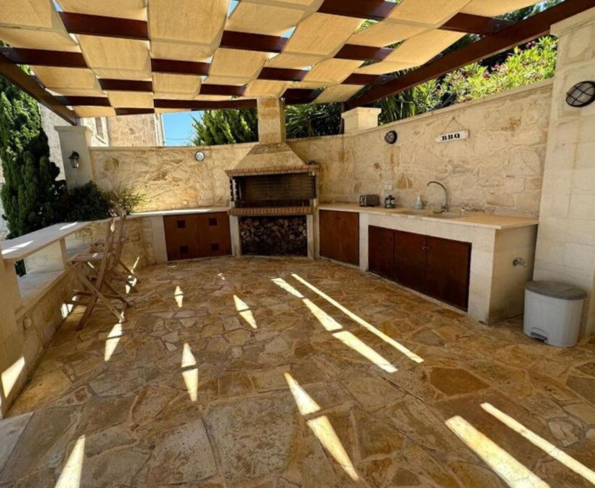 - barbecue area with outdoor kitchen (refrigerator, sink, bar corner, big barbecue)