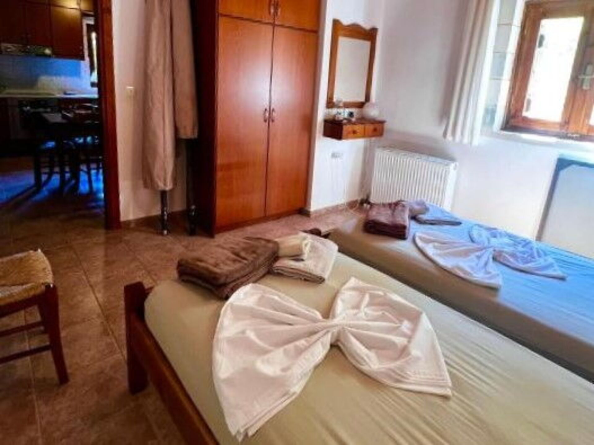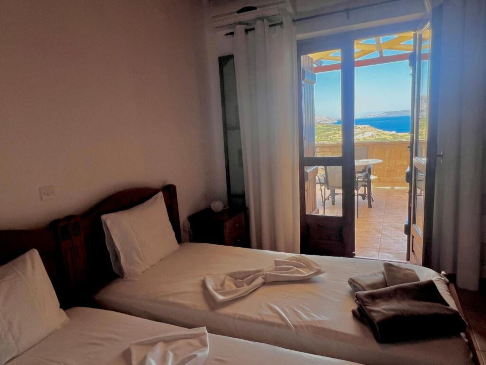 First floor: bedroom with 2 single beds (can joined upon request) with private bathroom with a shower and access to a scenic terrace, bedroom with 2 single beds (can joined upon request), bathroom with shower, access to panoramic terrace.