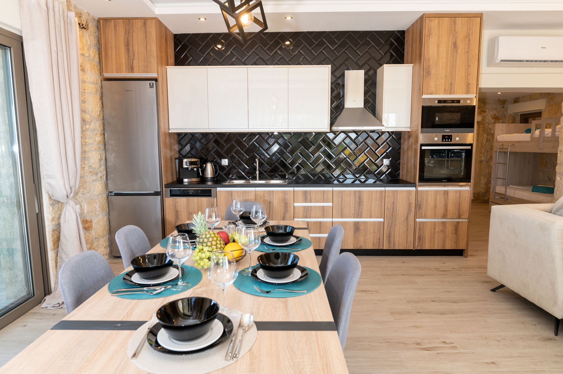 The interiors are comfortable and well-equipped. There is air conditioning in all of the bedrooms and the living area; there is free Wifi internet both inside and outside.