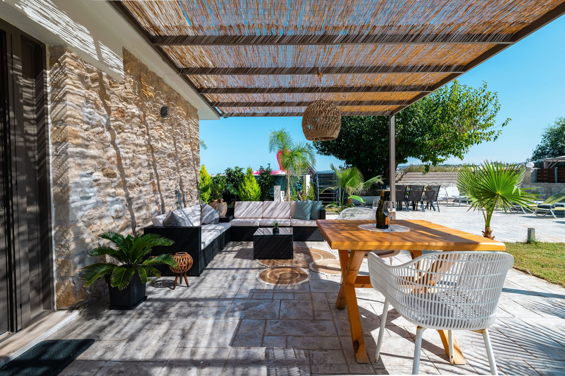 A new pool is being built outside on the grounds, and will be ready in April 2026. It will replace one of the two small pools currently visible online. The new pool will be the perfect place to spend time with family and friends during your vacation in Greece.