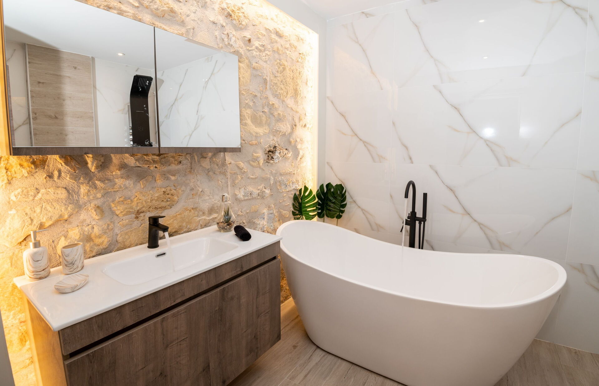 The villa is divided into 2 units, each with its own independent entrance, living room and fully equipped kitchen.