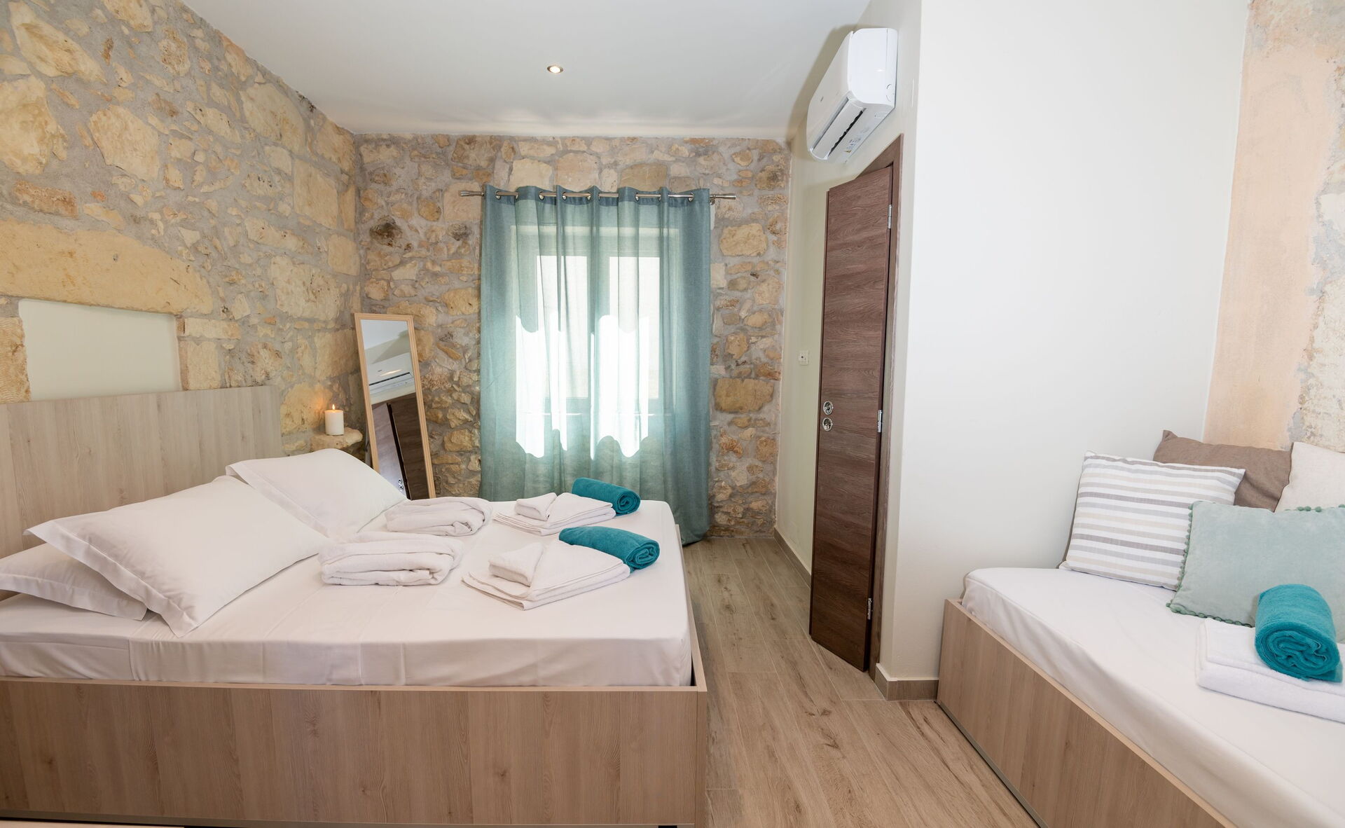 Distances: shops, supermarkets and tavernas about 200 meters away, beach 400 meters away, Lake Kournas 4 km, Georgioupoli 4 km, Rethimno 16 km, Chania 40 km, Chania airport 50 km, Heraklion and Knossos Palace about 95 km away.