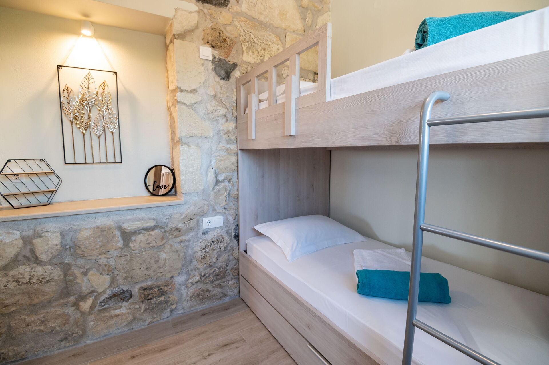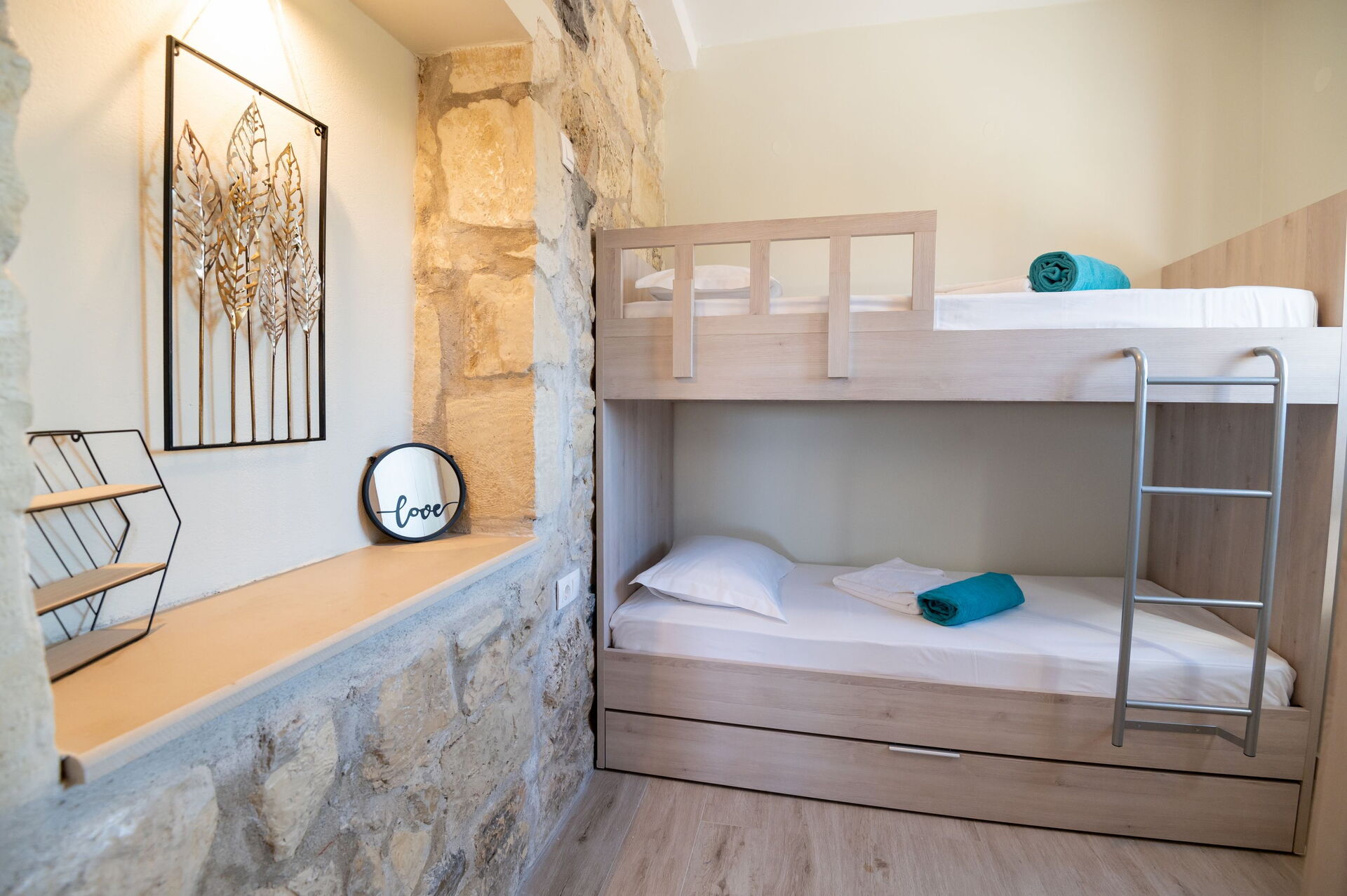 The second unit offers 3 bedrooms (1 is a pass-through room), 1 bathroom + 1 WC; it can accommodate up to 9 people