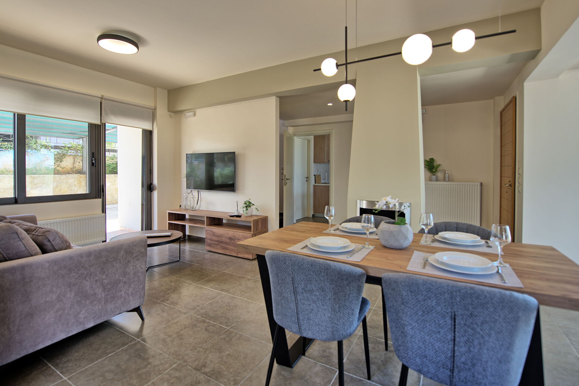 Et fantastisk sted som vi gjerne kommer tilbake til. Det var god plass til fire voksne, med store og fine soverom. God lagringsplass for klær, og veldig komfortable senger. Kjøkkenet var godt utstyrt med alt man trenger av glass, tallerkener, kjeler osv. Stuen var stor og fin, med både spisebord og TV-hjørne. Stort og fint bad, med et lite trekk for badekar fremfor dusjkabinett (personlig preferanse). Uteplassen så helt ny ut, med store basseng, og også en utedusj. Vertinnen Frosso var veldig serviceminded, svarte umiddelbart på alle henvendelser, og hadde en helt fantastisk personlighet. Stedet anbefales på det varmeste