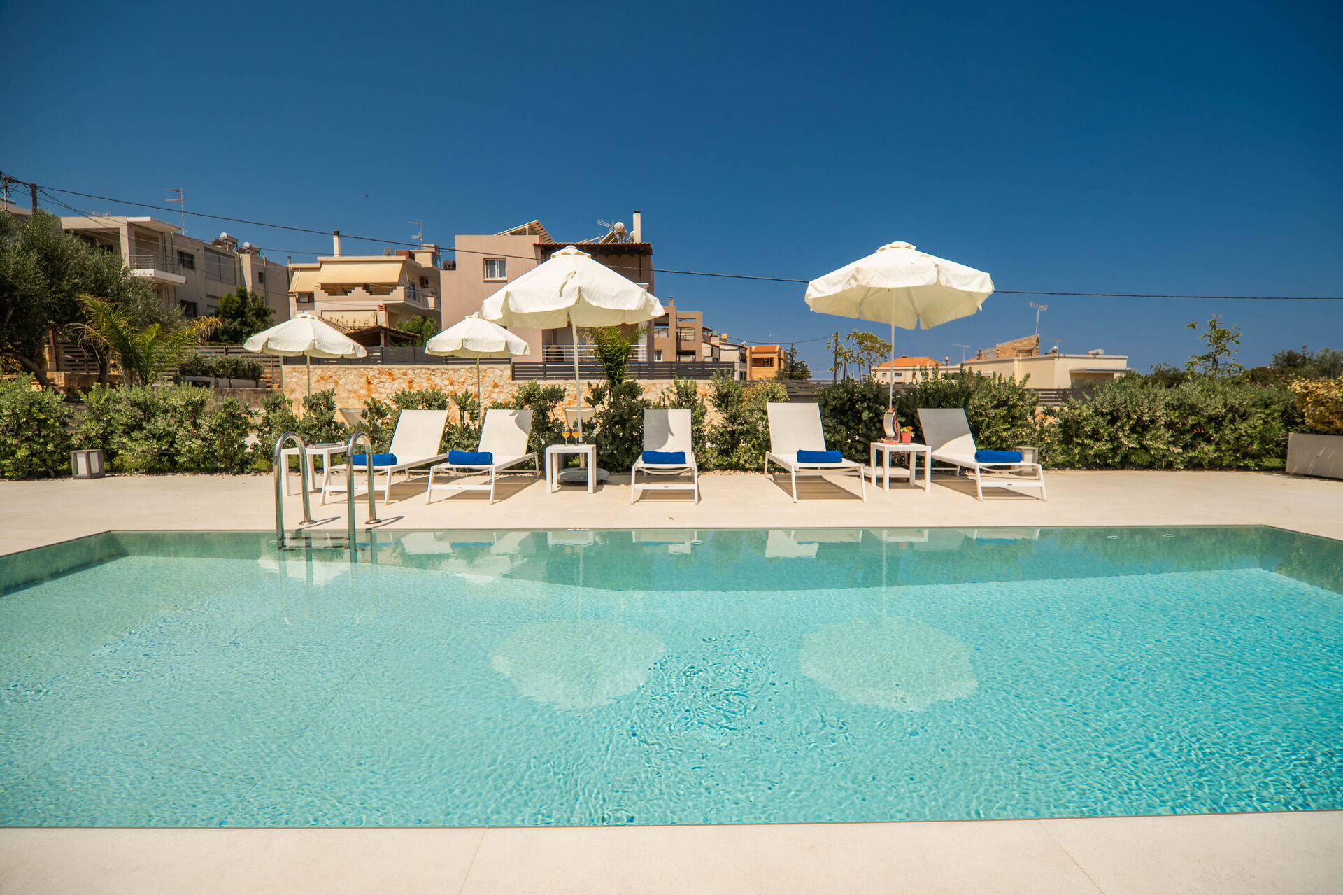 We had a wonderful stay and booked three of the four villas for our family party of 15, which worked out brilliantly. The villas and pool were all excellent, very clean, spacious and well-equipped. There are a few restaurants in the village of Kounoupidiana within walking distance of the property and we hired a car for supermarket runs and to get to Marathi beach. We used the bus service to get into Chania (about 20 minutes journey) and beyond - the bus stop is just up the bank which was really handy and the buses are regular and cheap. Our lovely host, Frosso was extremely helpful and always available to help with local information and booking restaurants and excursions. She was so kind to us and really was a perfect hostess. We would highly recommend a stay at these beautiful villas. Thank you so much Frosso and Posarelli Villas!