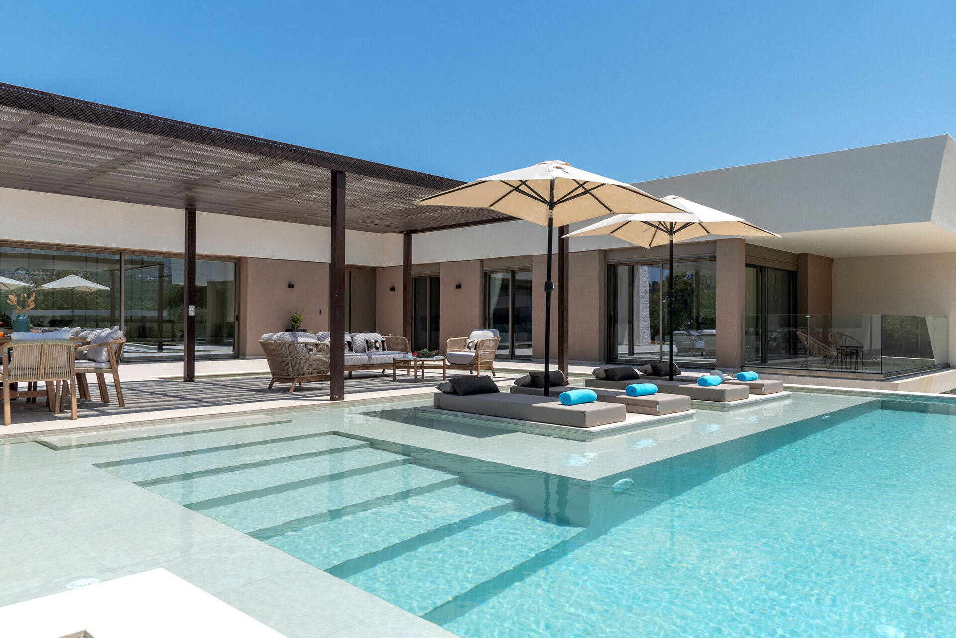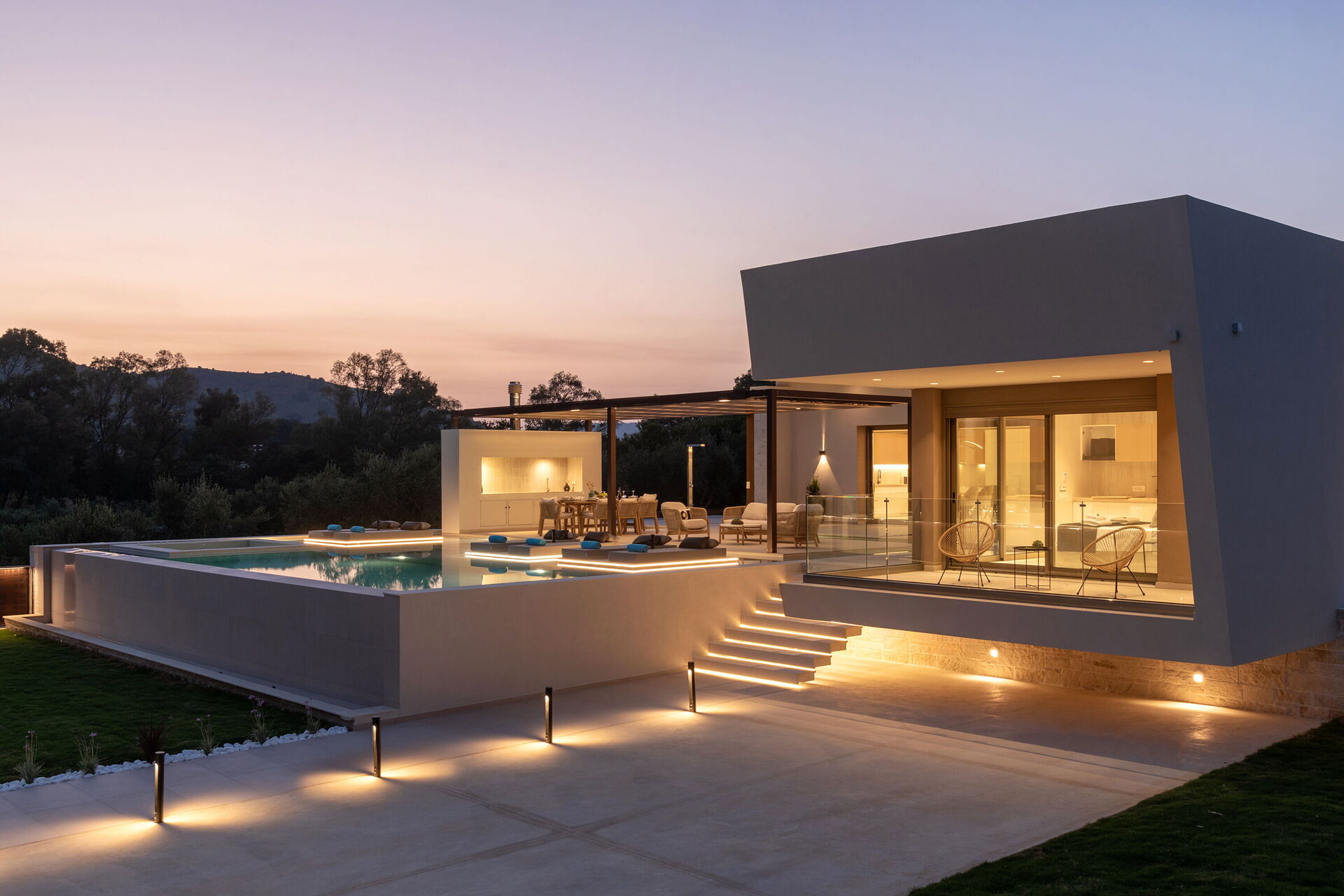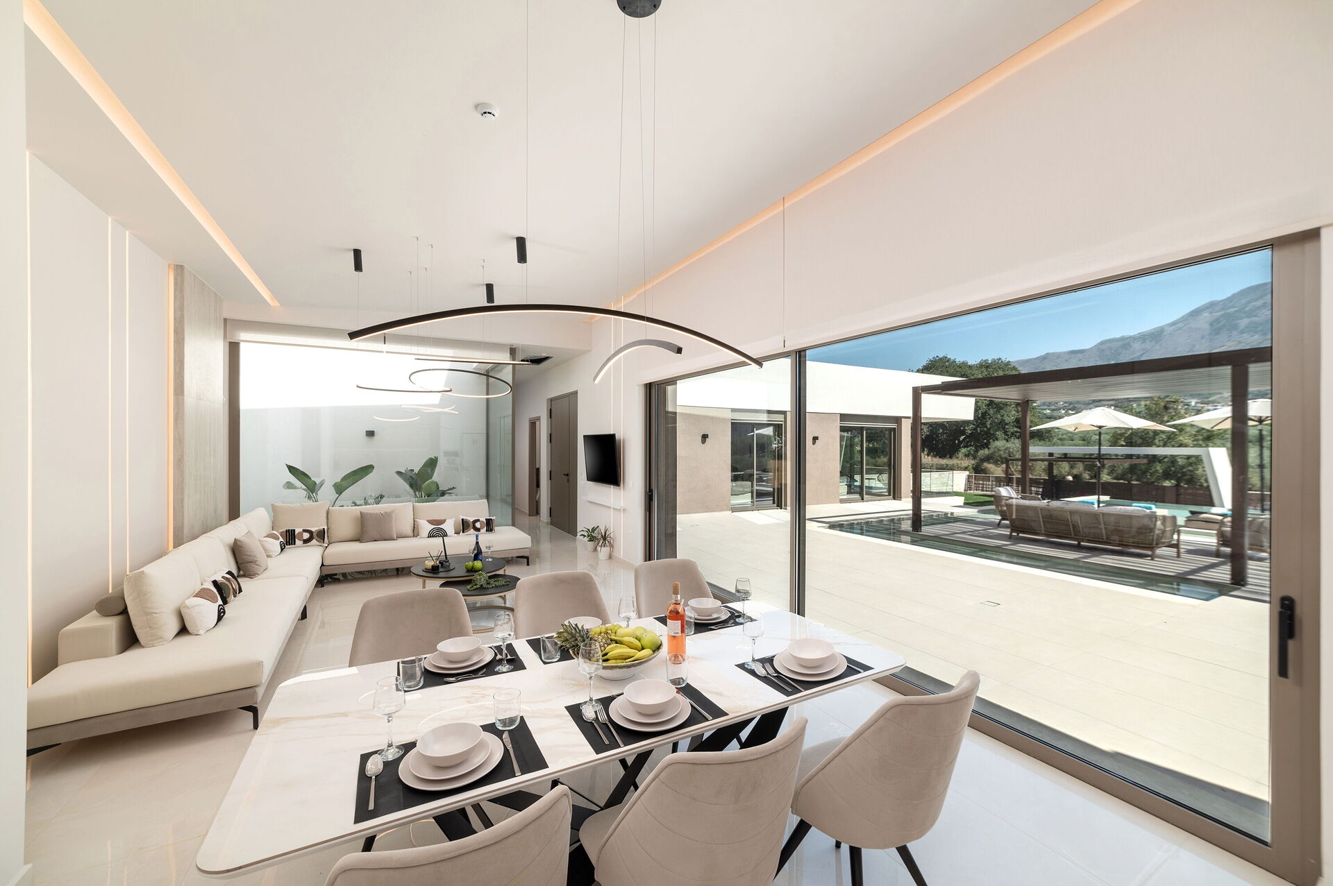 Villa El is a fantastic villa in the renowned Lake Kournas area, just 4 km from the beaches of Crete’s north coast. This ultra modern villa with 4 bedrooms, and a fantastic outdoor area with private pool with heated whirlpool area, is the place for a truly exclusive vacation with friends or family.
