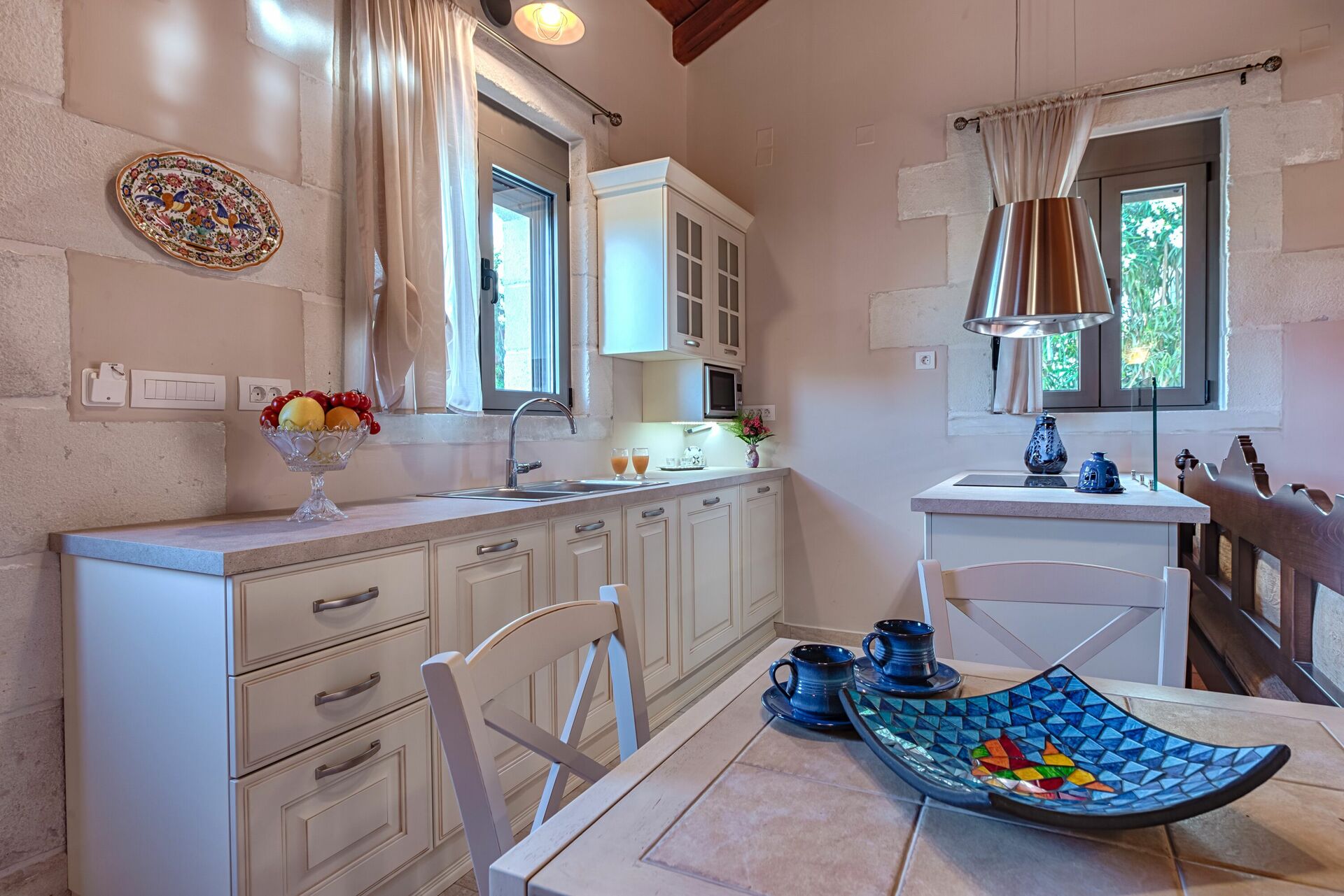 If you are looking for a country house that is close to the sea, this beautiful villa fits the bill: you can enjoy your days in Crete by the pool or at one of Crete’s many beaches.