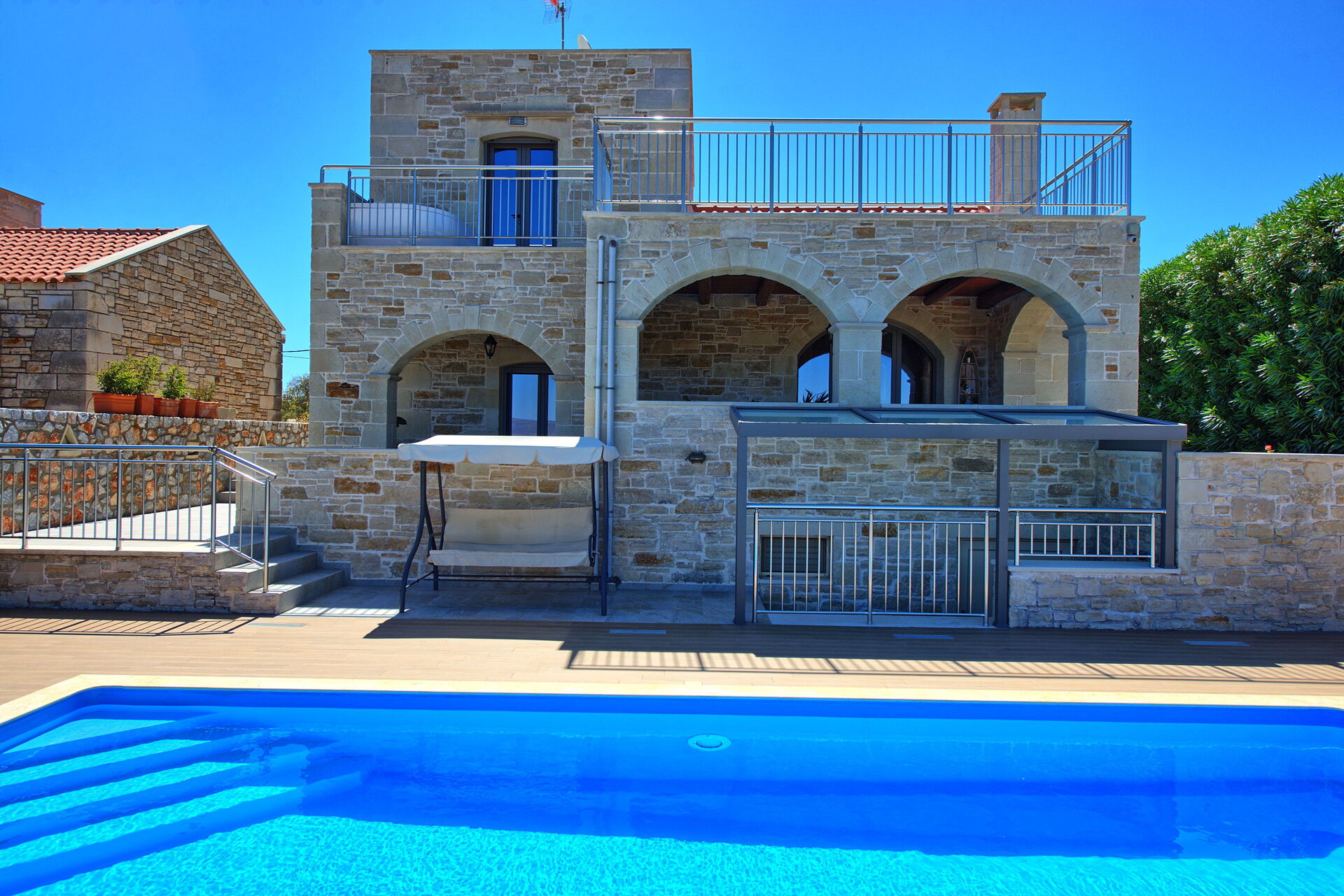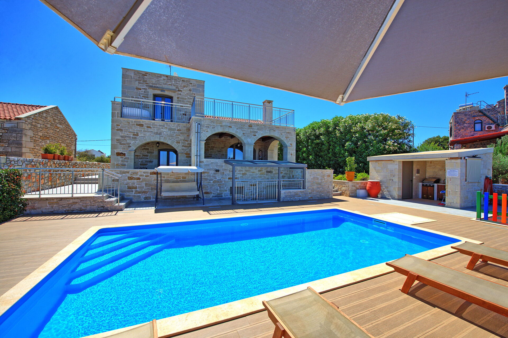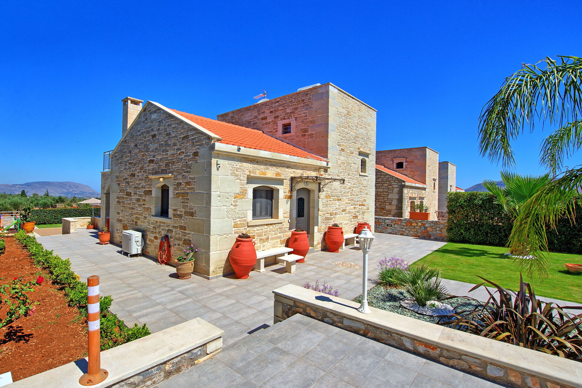 Distances: Litsarda (shops with basic essentials) 450 meters away; Vamos (minimarket, restaurants, bank) 2,2 km; Almyrida (sea, beach and seafront restaurants) 7 km; Georgioupolis (sea, beach and beachfront bars) 9 km; Chania 30 km; airport 38 km away.
