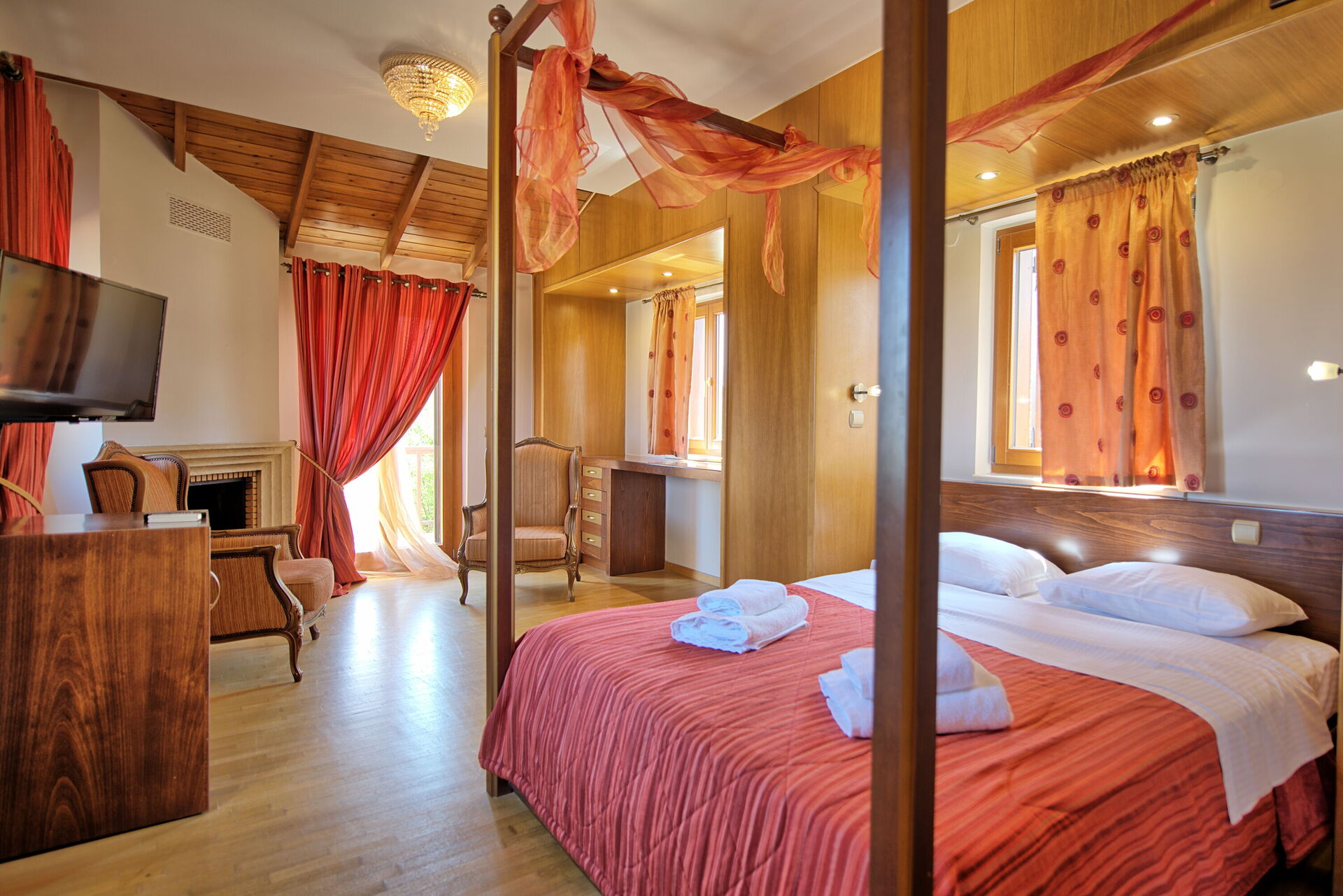 First Floor double bedroom (King size, four-poster bed ), bathroom with whirlpool tub.