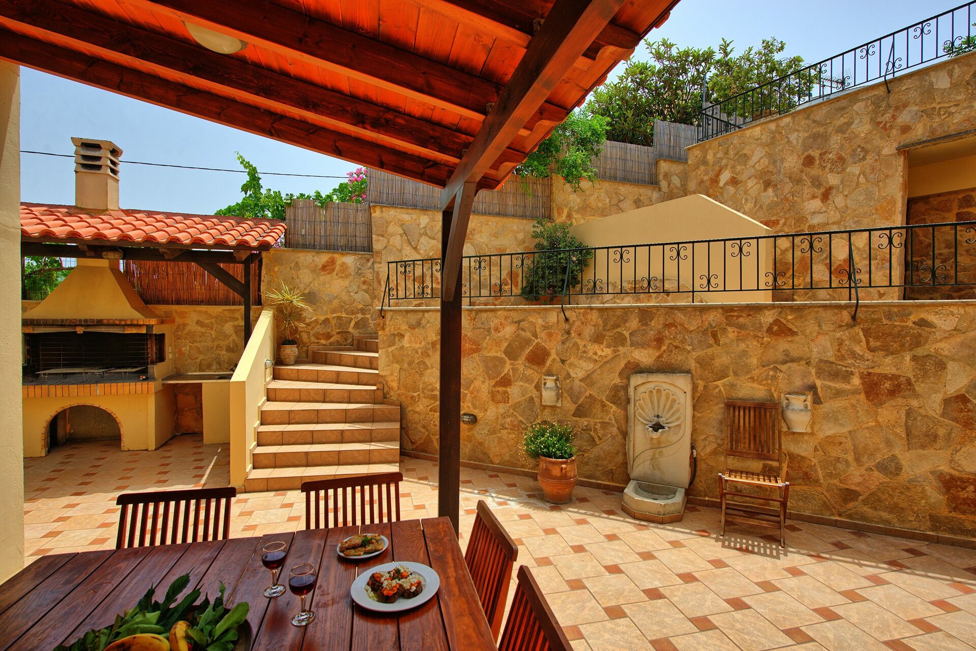 The outdoor areas have been designed to enjoy most of the glorious Cretan sunshine. Enjoy a delicious meal charcoal-grilled on the brick-built barbecue, or enjoy a refreshing dip in the large private pool, or just relax with a book under the shade pampered by the gentle breeze. Villa Sevi Grande will amaze you!