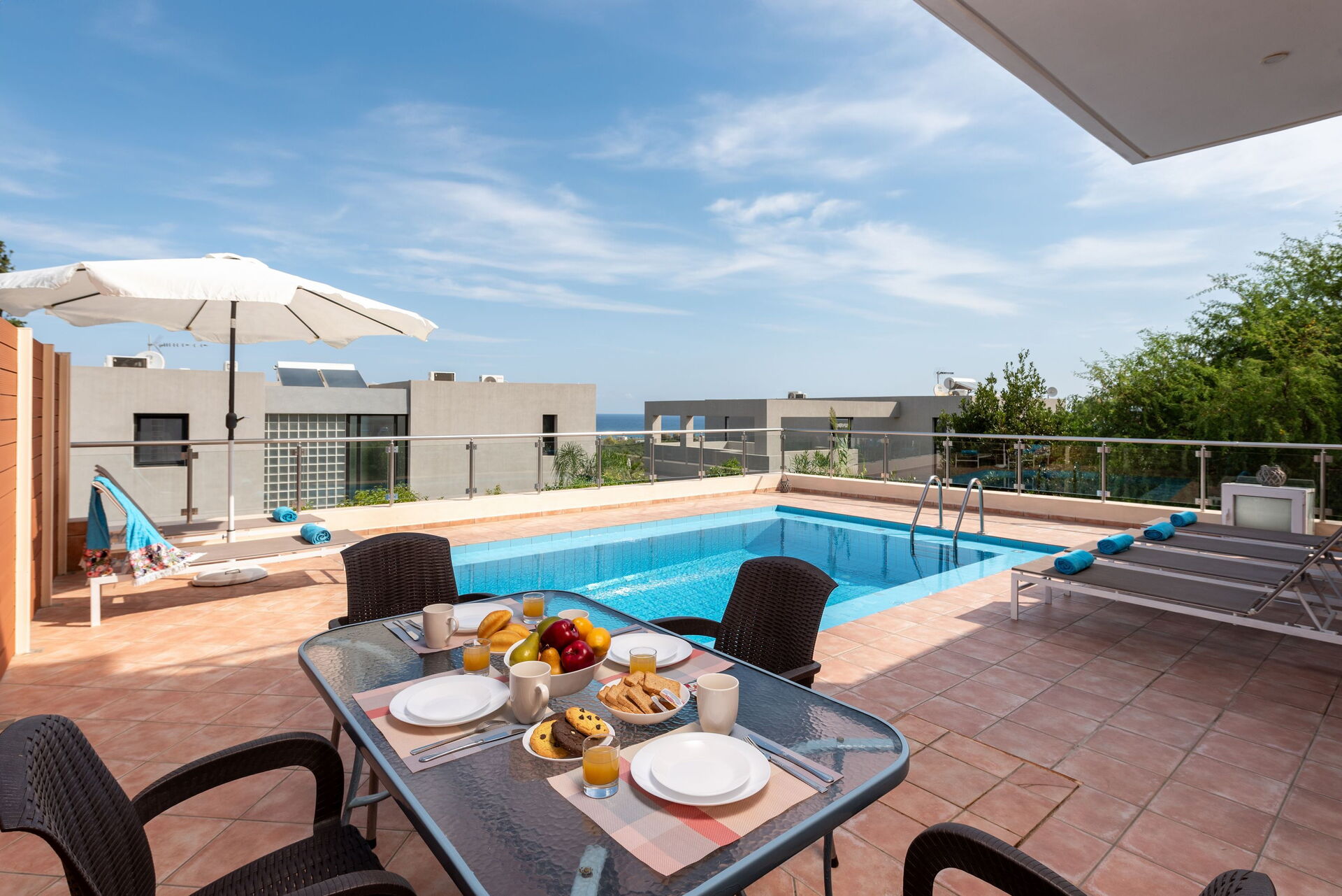 Villa Flora is a lovely villa rental with a private pool in Metochi, a small hamlet on the island of Crete.