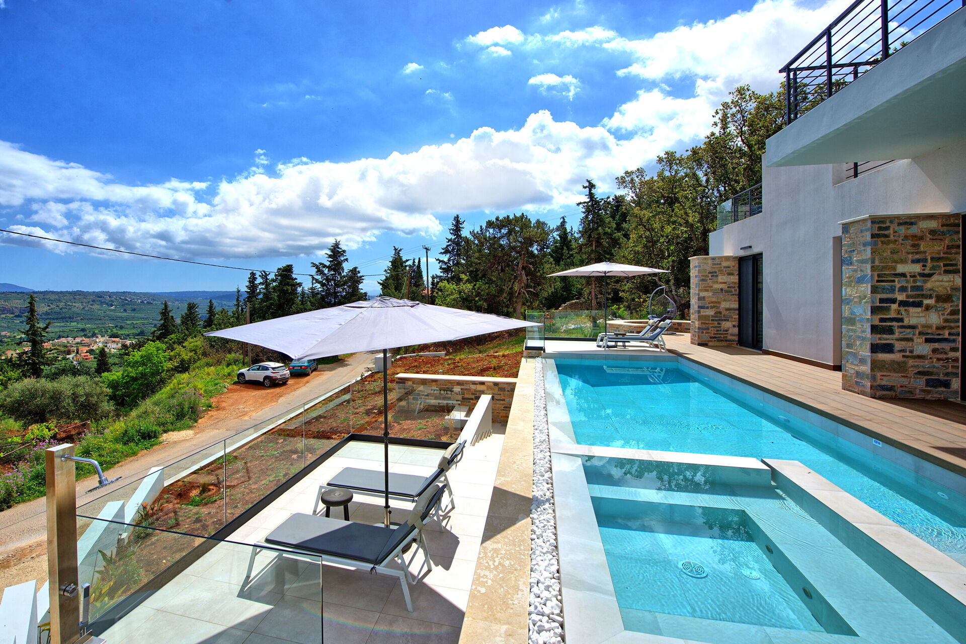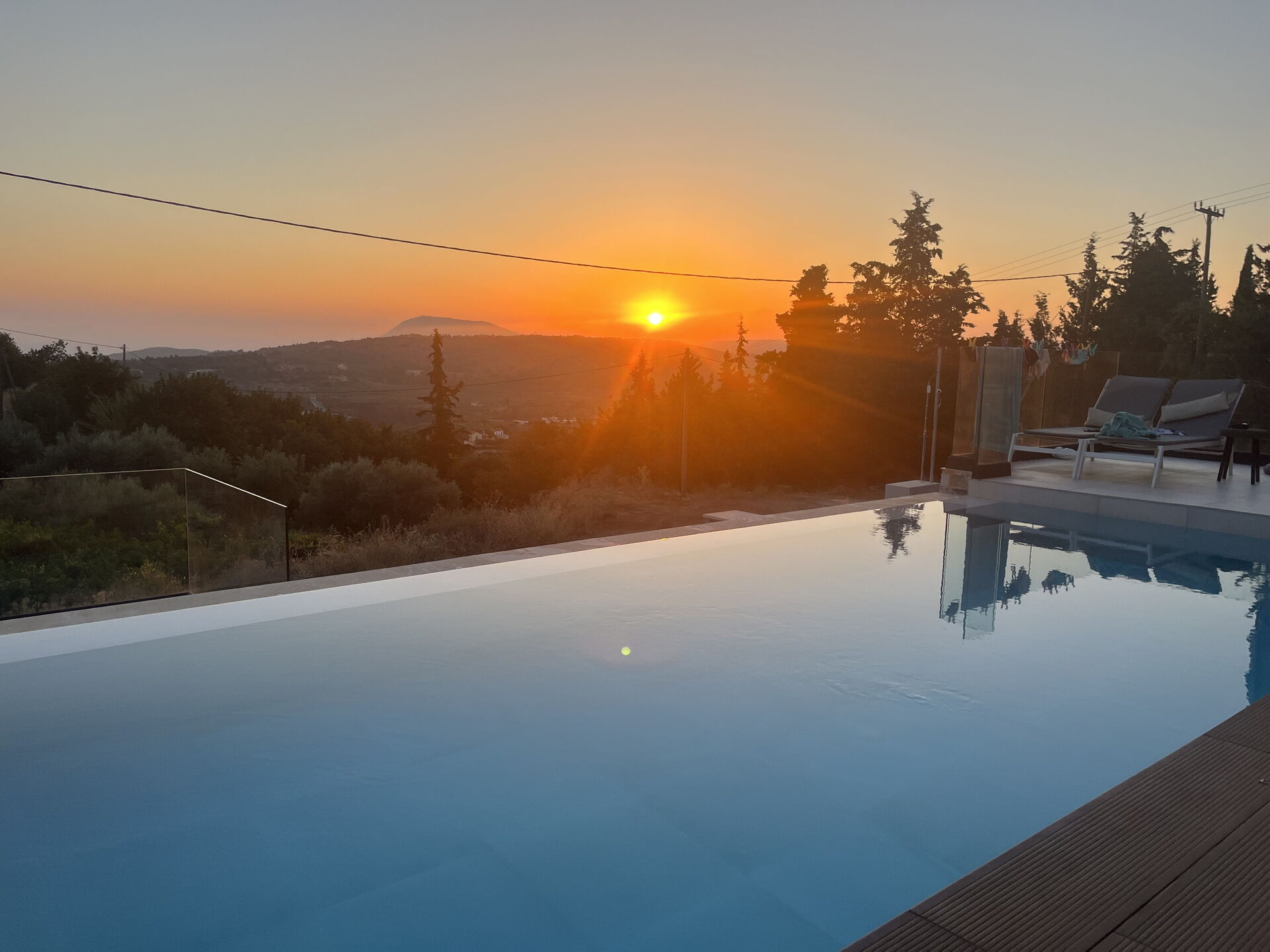The villa was beautiful and modern. Excellent cleanliness plus the midweek clean exceeded exceptions.The bedrooms were a decent size, but both beds were creaky. Could have done with more hangers in the bedrooms. Pool was a good size with a lovely view. More remote than expected and we had to drive everywhere. The information before arrival was great and the owner was very friendly and welcoming when we arrived. It would be good to have more information in the welcome book e.g. the nearest supermarkets, tavernas, attractions and a reminder about not flushing paper down the toilet.
