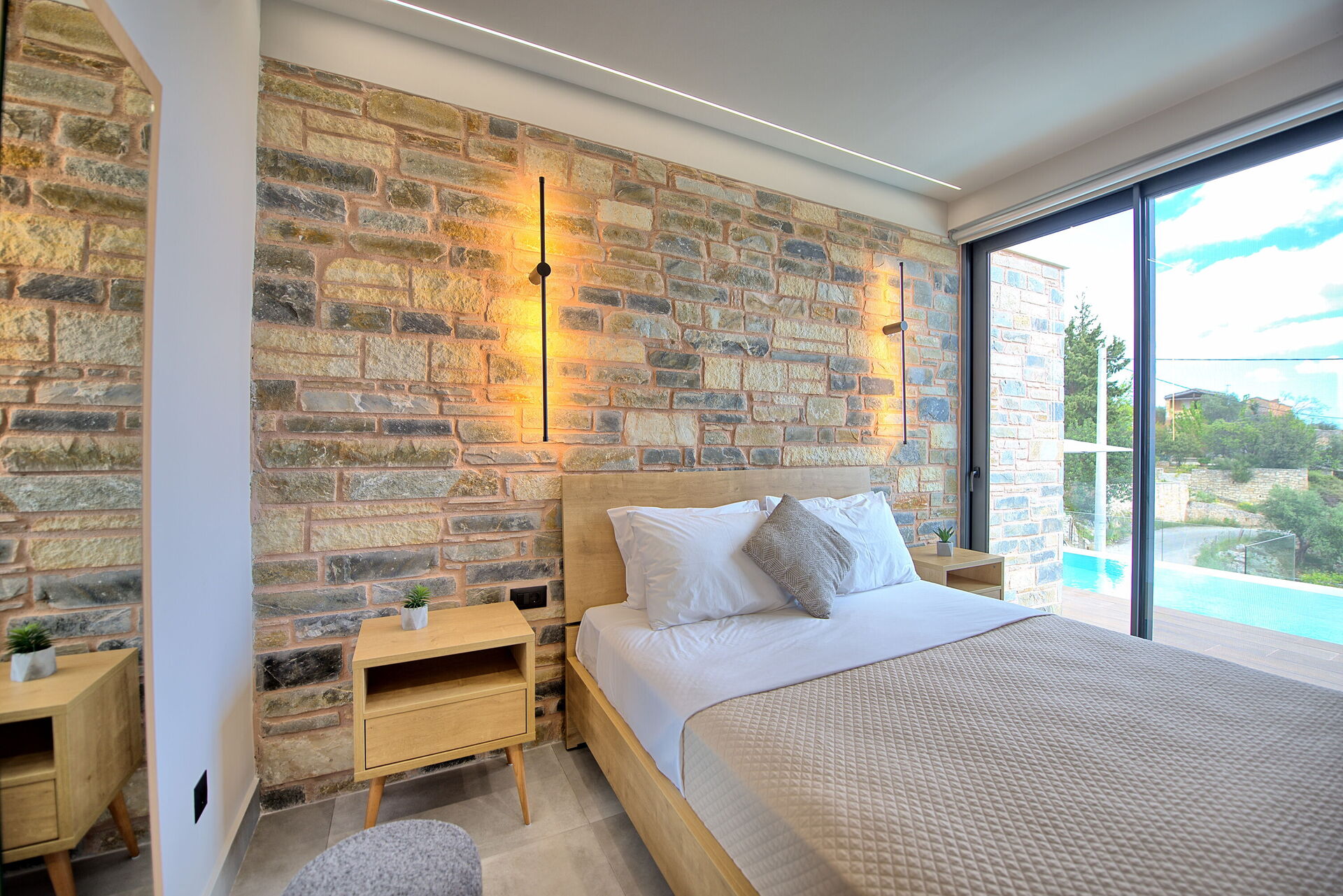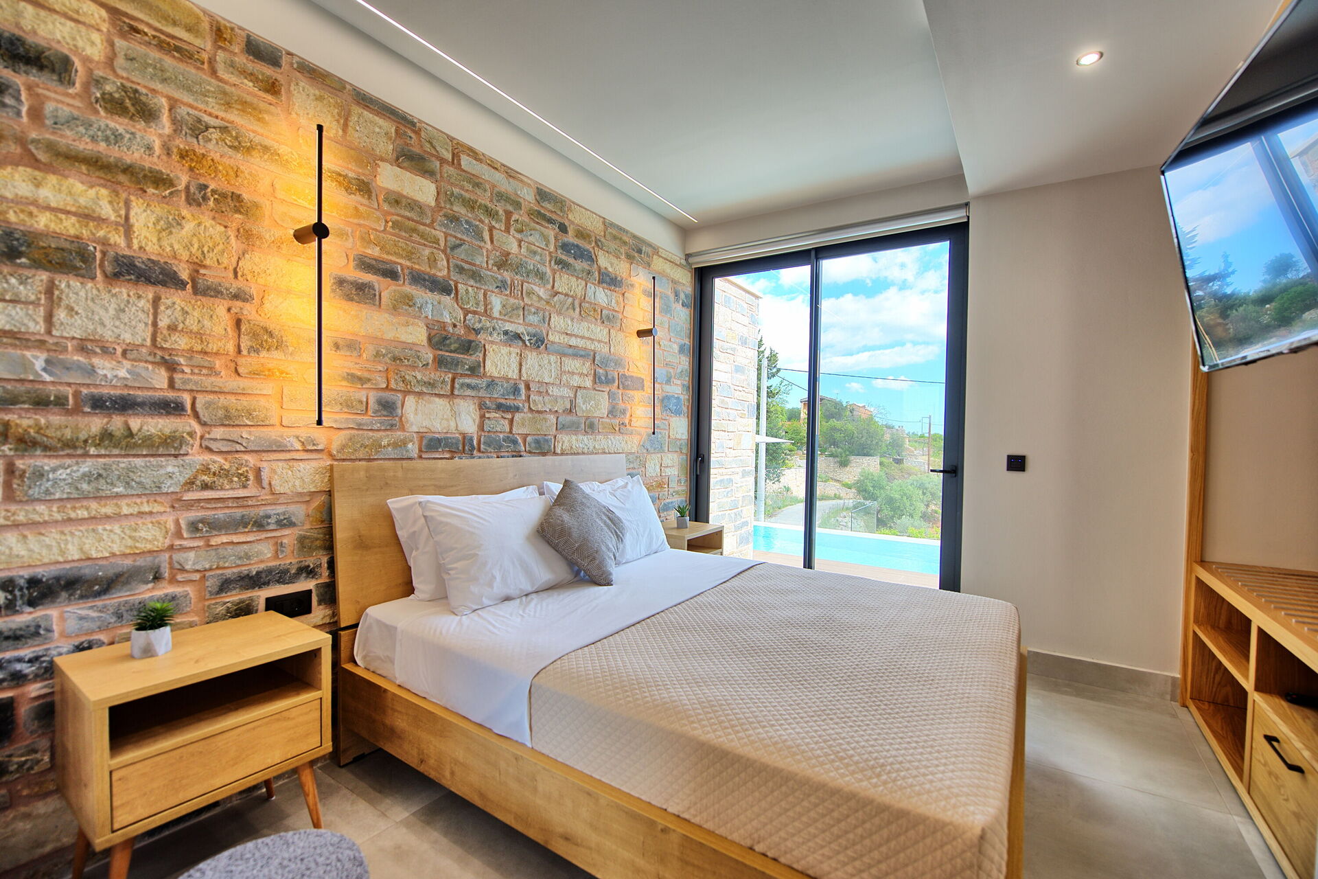 Villa Kallos is brand new: construction was completed in January 2023. The villa is very modern, and perfect if you are looking for an exclusive vacation in a well appointed, comfortable and scenic setting. Inside there are 2 bedrooms, 1 bathroom and a bright living area with outdoor access. Outside there is a private pool equipped for enjoying Crete’s sunny days in the fresh air.