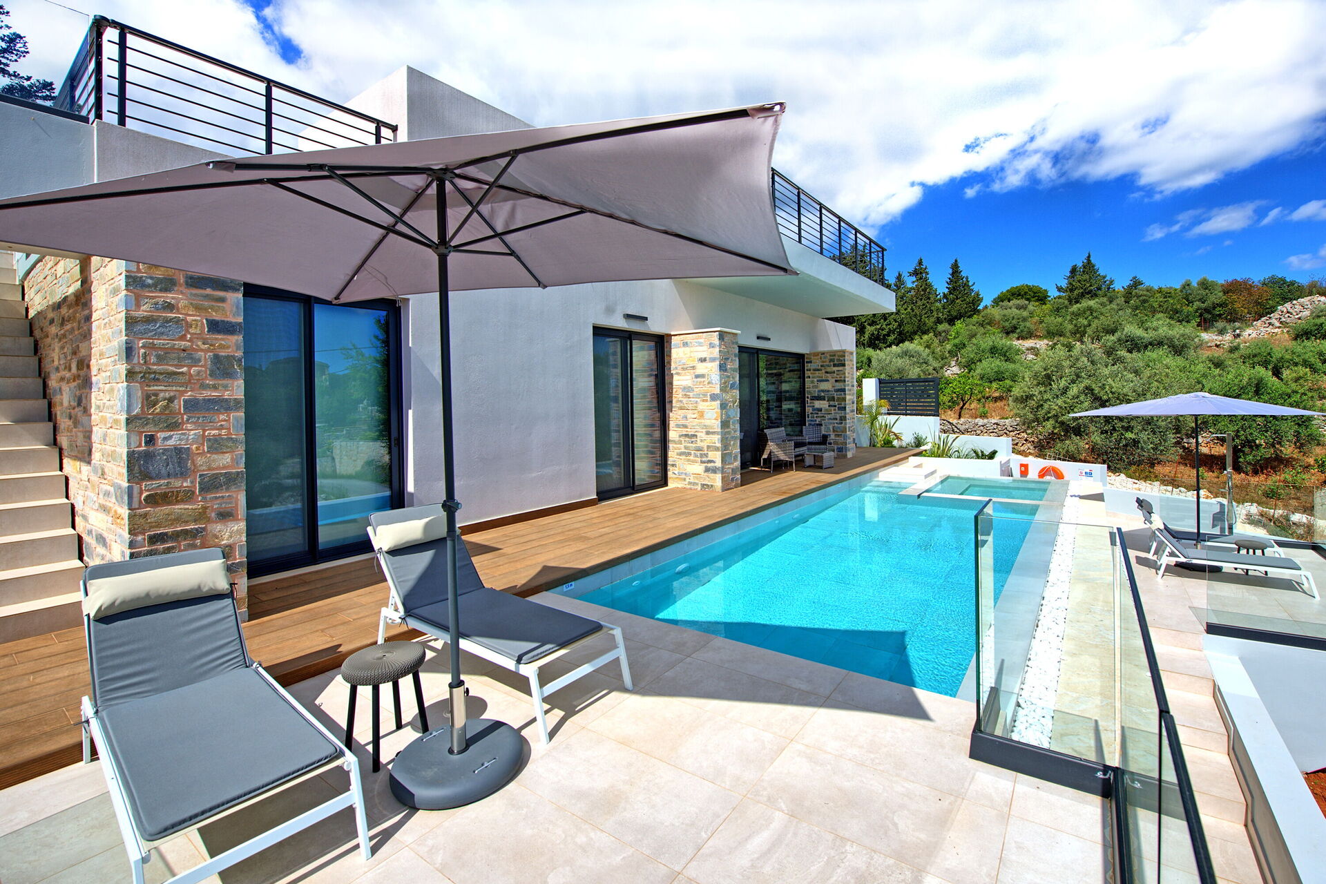 Modern vacation villa rental with a private pool just 8 km from Kalyves beach, Crete.