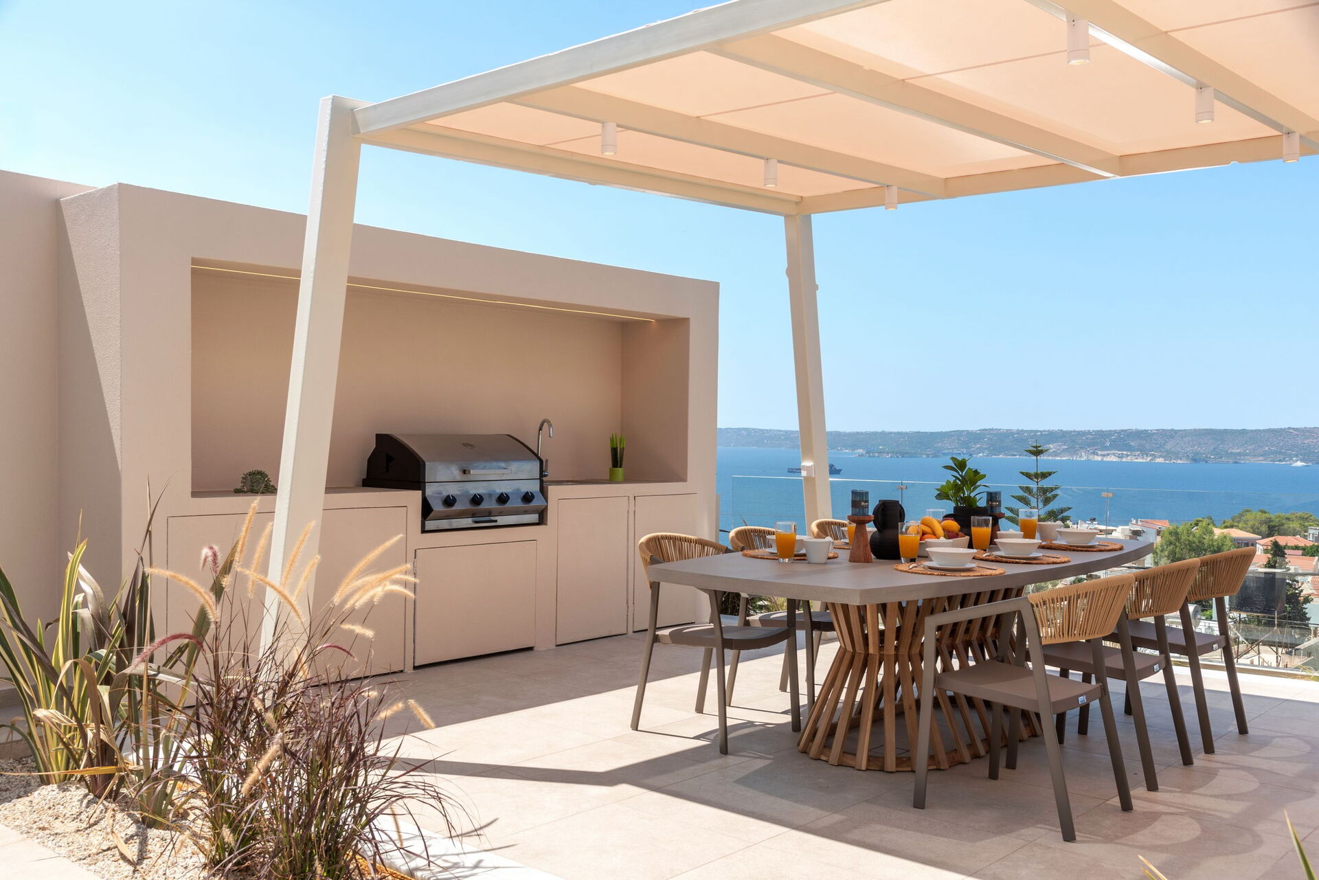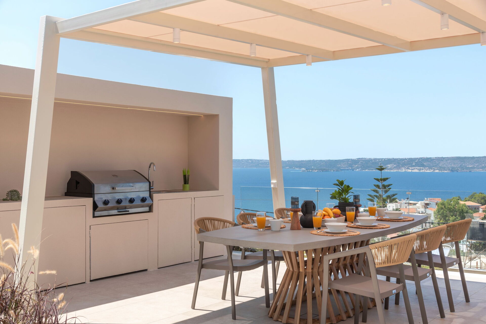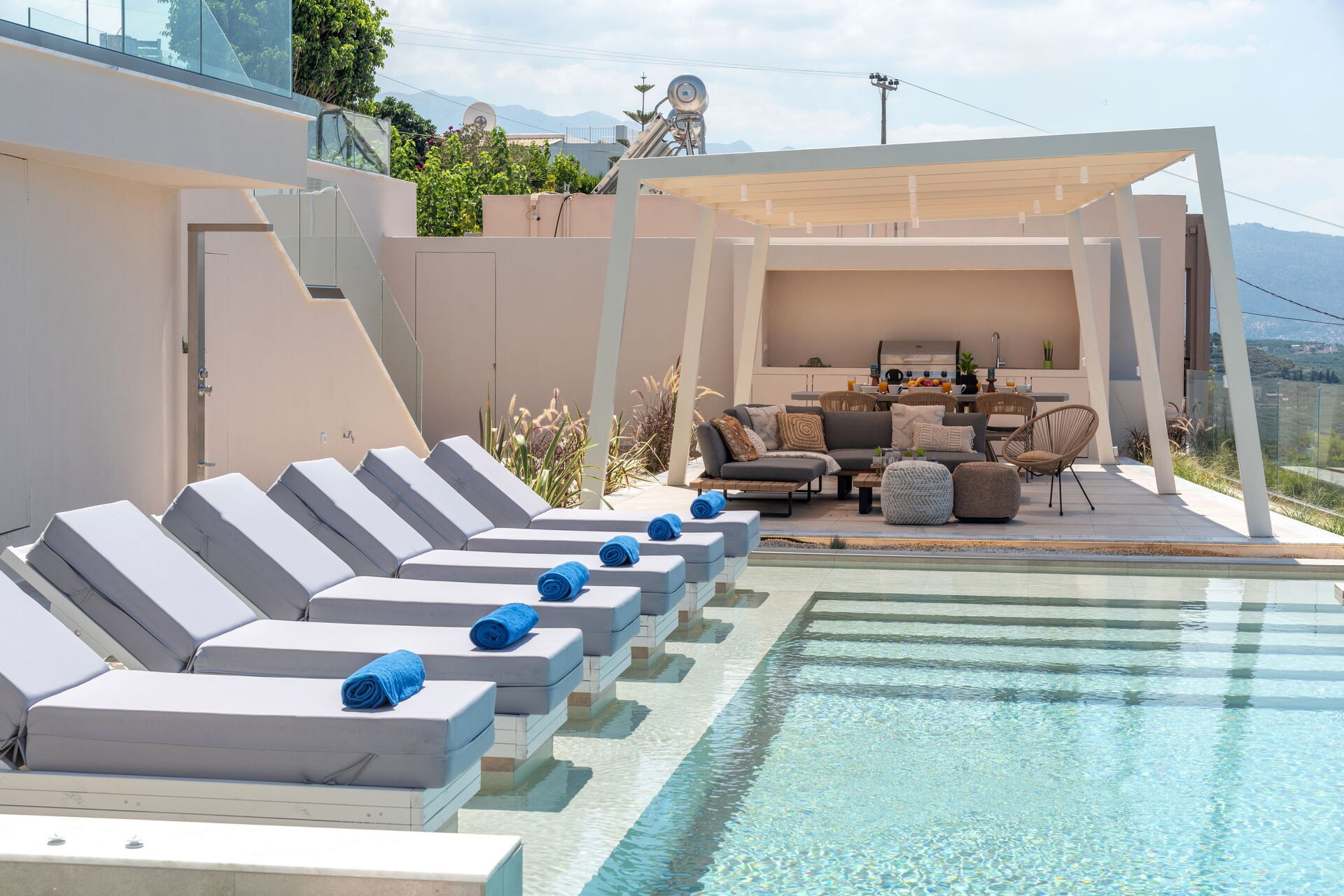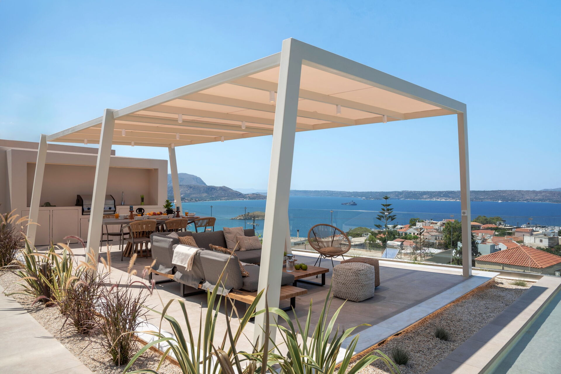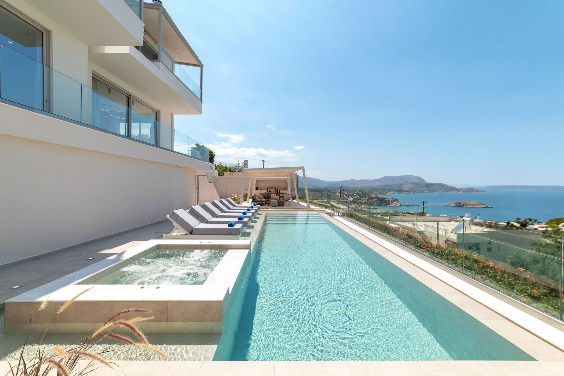 Outside, Seaview Lux offers a private dining area equipped with a barbecue and table. There is also a brand new pool with a hydromassage area, for relaxing on summer days and enjoying the beautiful views of Souda Bay and Crete’s crystal clear waters.