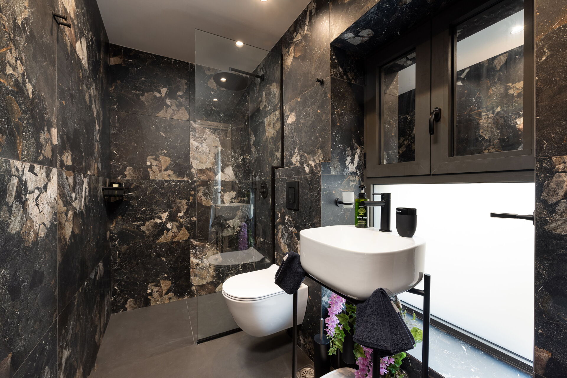 First floor: 2 double bedrooms (air conditioning), each with a private bathroom with shower.