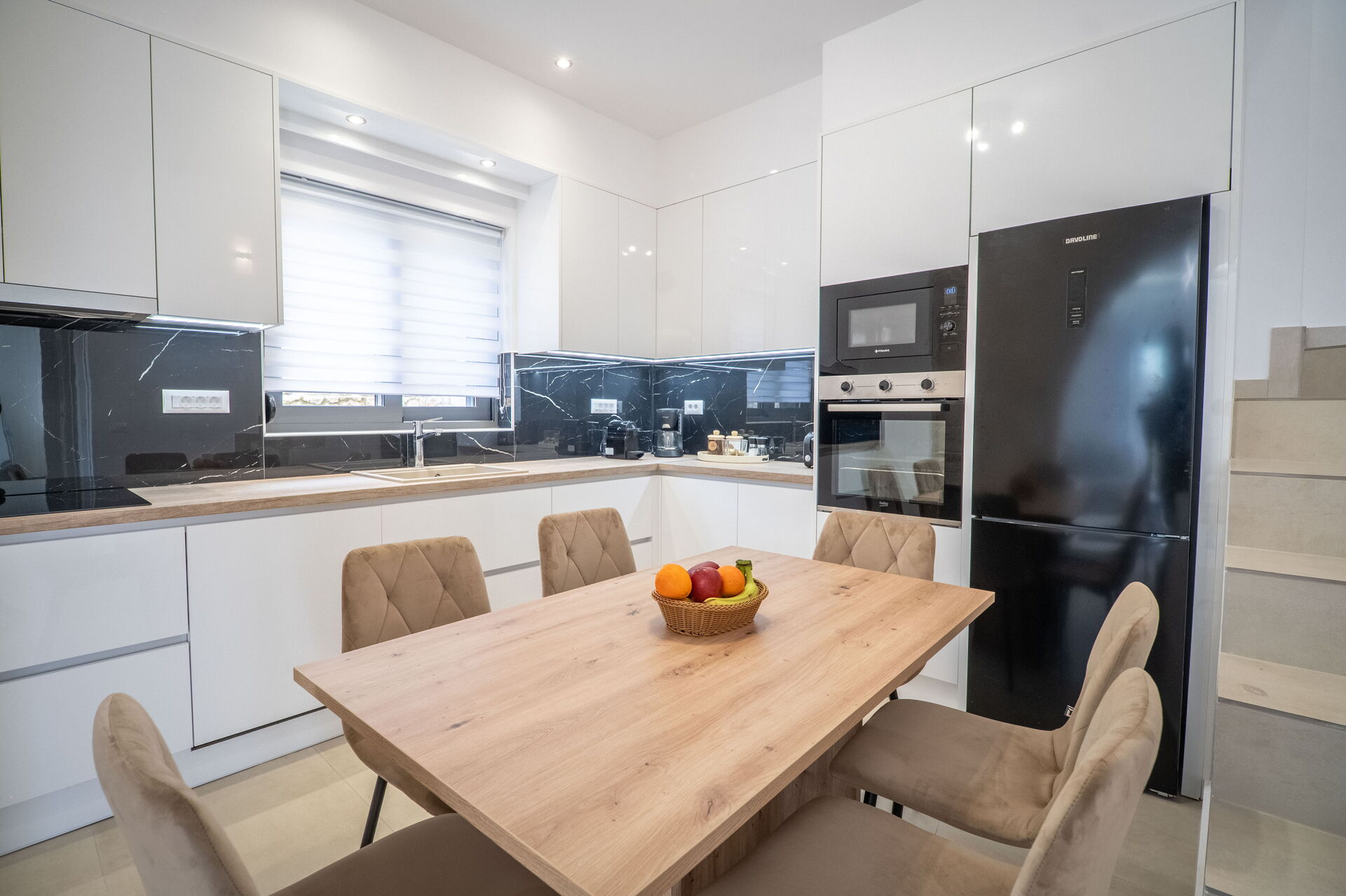 Construction on this property finished in February 2025. It is very welcoming, with modern, functional furnishings, and bright, very comfortable interiors.