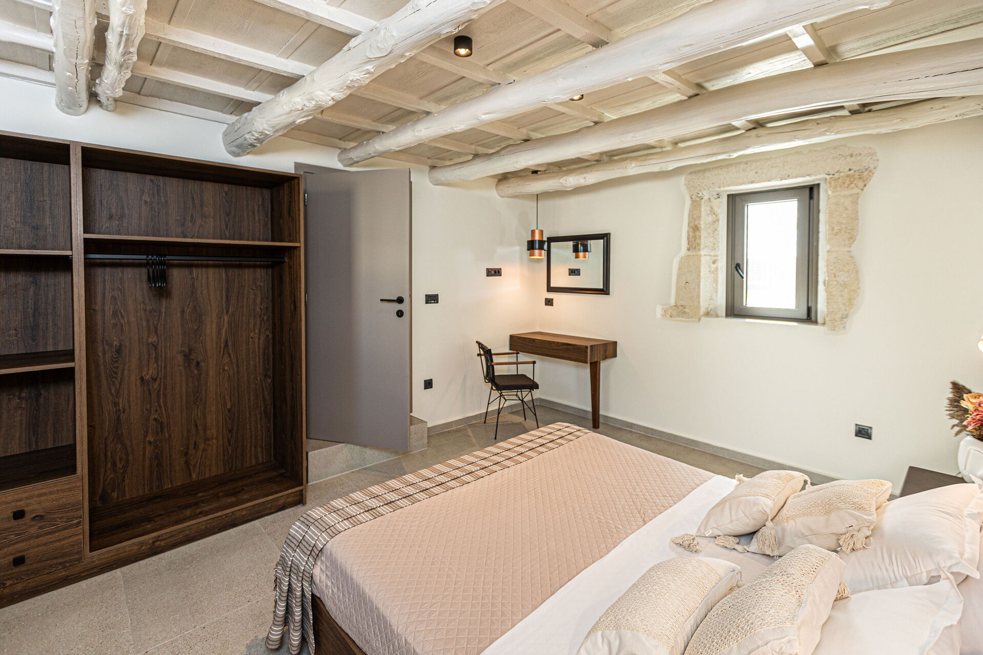 Raised ground floor (accessible via an elegant wooden staircase): double bedroom (air conditioning) with access to a scenic terrace with panoramic sea views.