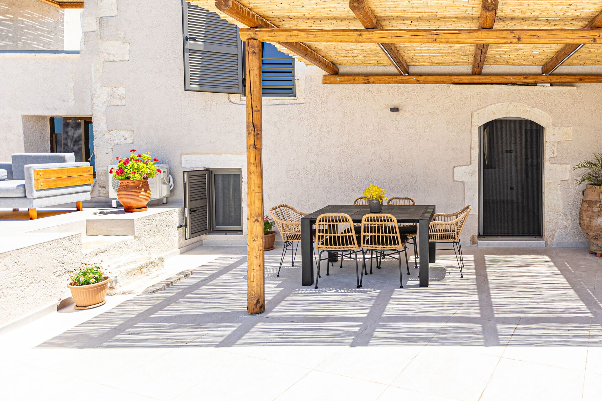 This property has recently been renovated and is tastefully furnished; Villa Platon is comfortable, equipped with modern amenities, and has maintained original architectural features like local stones, wooden beams, and traditional Cretan elements.