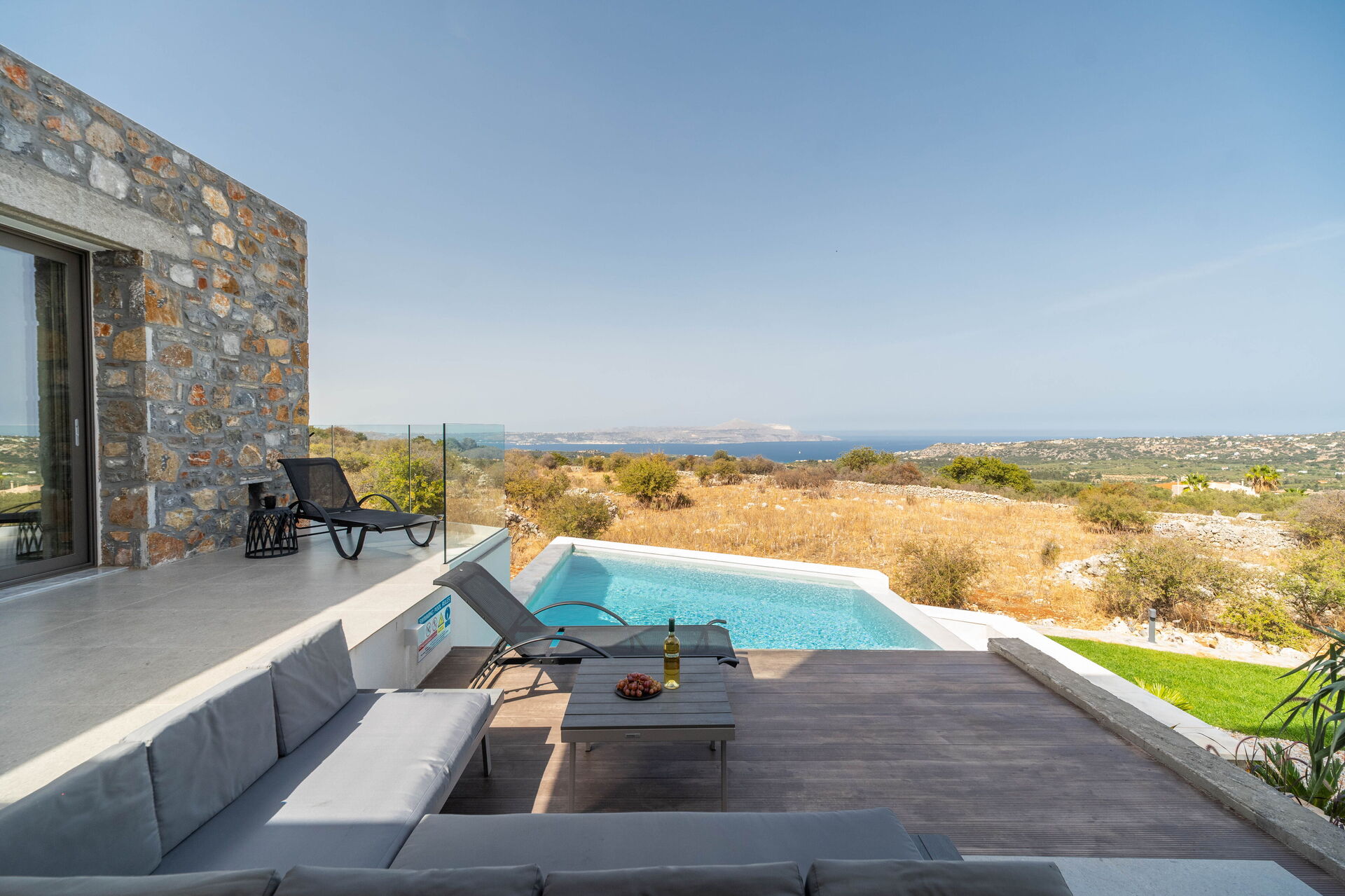 Beautiful villa with a private pool and outdoor hot tub, ideal for a vacation in Crete, Greece.