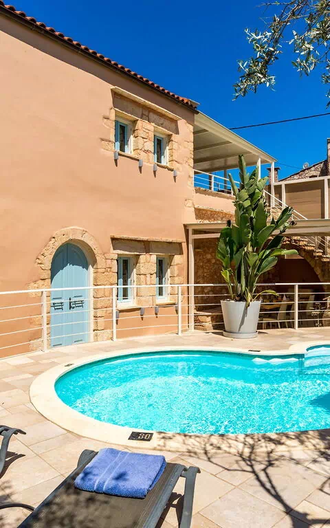 Villa Cava is a beautiful vacation rental property with a private pool in Crete, in the small old village of Xirosterni, a few kilometers away from the sea and the renowned village of Almyrida.